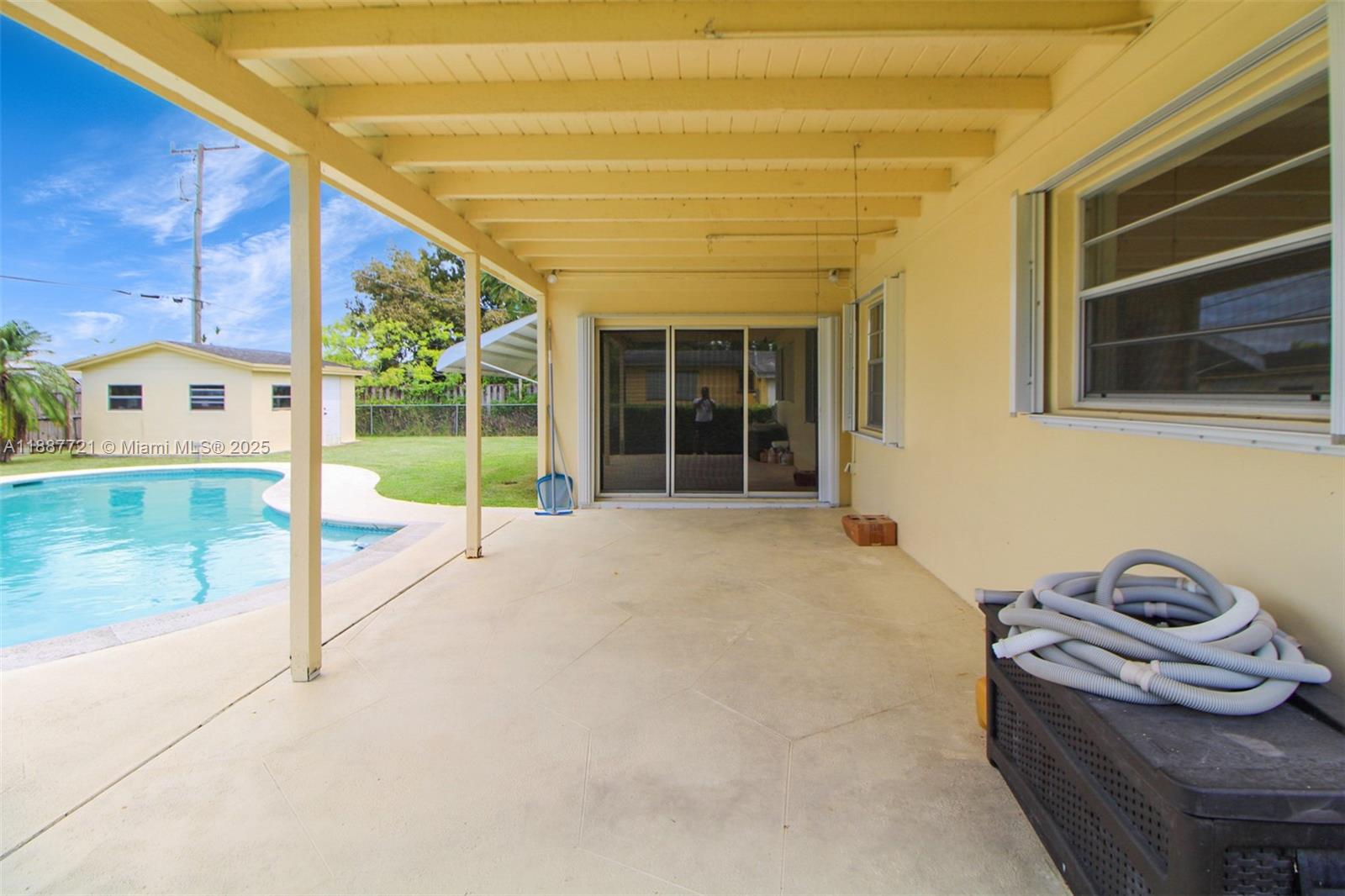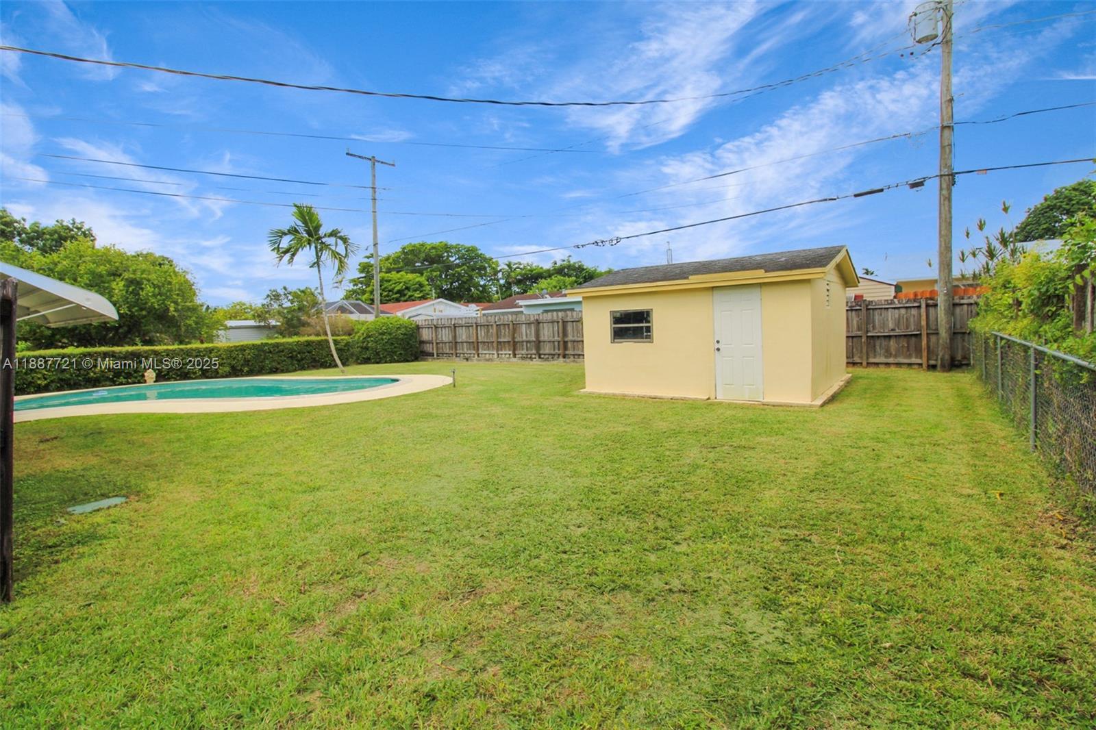 Florida living at its best in Cutler Bay! This 4 bedroom 2 bath open air pool home has been loved and it shows with its huge breakfast room off from the spacious white kitchen where cabinetry abounds with double ovens. Close by is the private den for some relaxing. A large family room passes out to the covered porch and patio surrounding an inviting free form pool in this private and lush 9000 sq ft lot. Nearby is a 14 x 14 permanent shed to store your lawn and pool equipment. This home features spacious laundry room, accordion shutters, circular driveway. You have no association payments and are located close to US1 with close access to the Florida Turnpike, restaurants abound with Southland Mall within minutes.