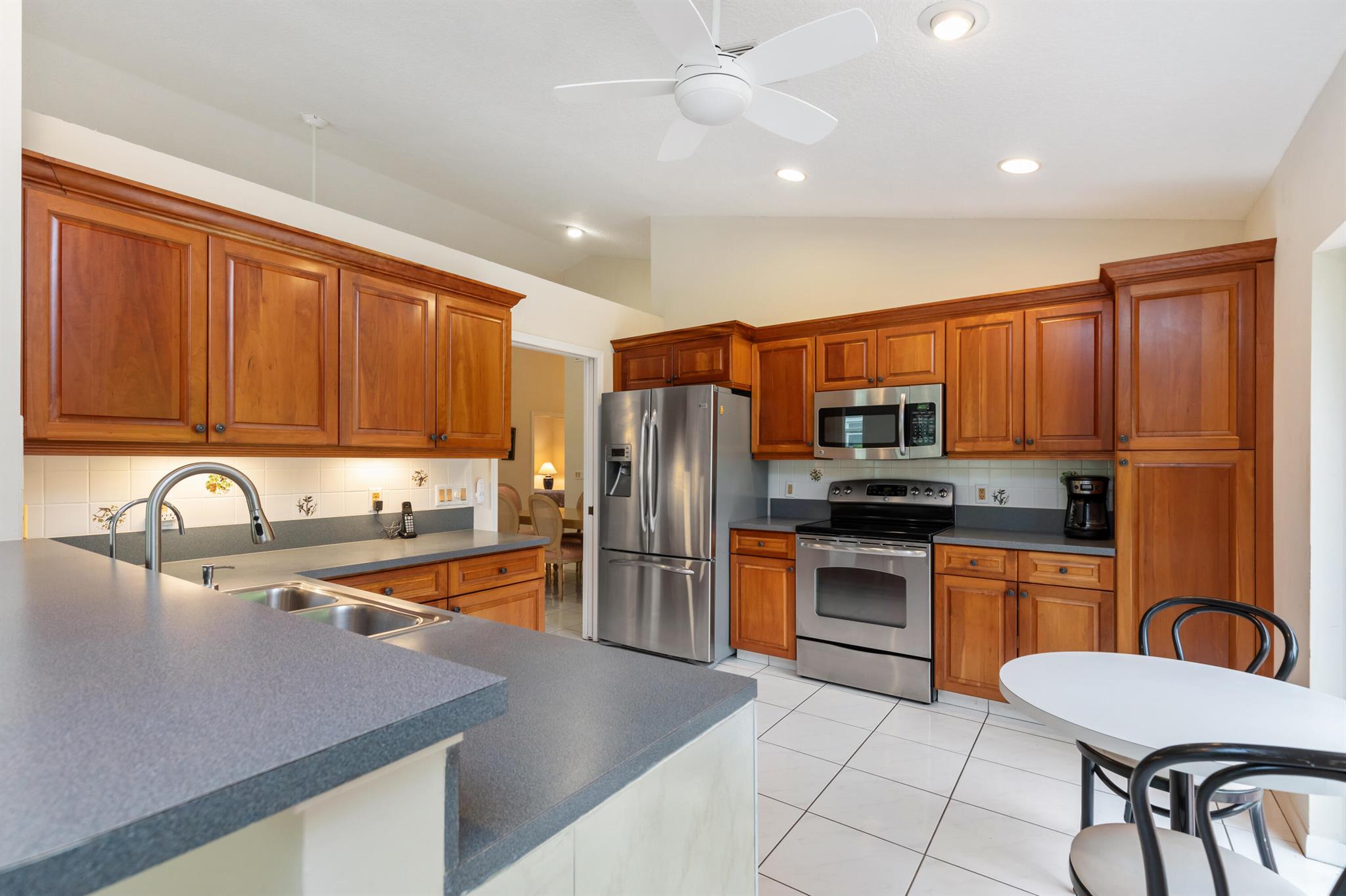 WELCOME HOME TO THIS LOVELY THREE BEDROOM TWO BATHE HOME, AS YOU WALK INTO THIS HOME YOU WILL SEE A LARGE OPEN FLOORPLAN THAT LEADS TO A BRGHT ENCLOSED FLORIDA ROOM PERFECT FOR ENTERTAINING YOUR GUESTS. LARGE KITCHEN WITH NICE WOOD CABINETRY AND STAINLESS STEEL APPLIANCES. TILE FLOORS THRIUGHOUT EXCEPT ONE BEDROOM HAS CARPET. FORMAL DINNG ROOM. THREE SPACIOUS BEDROMS AND TWO FULL BATHS. MASTER BATH HAS A JACUZZI TUB FOR RELAXING AFTER A LONG DAY. HUGE WALK IN CLOSET IN MASTER BEDROOM. TWO CAR GARAGE. HOUSE IS ACROSS THE SREET FRO THE LAKE AND COMMUNITY POOL PLUS TENNIS COURTS. THIS IS A NICE FAMILY NEIGHBORHOOD ON A QUIET STREET. COMMUNITY IS GATED AND CLOSE TO SHOPPING, RESTAURANTS, AND I-95.