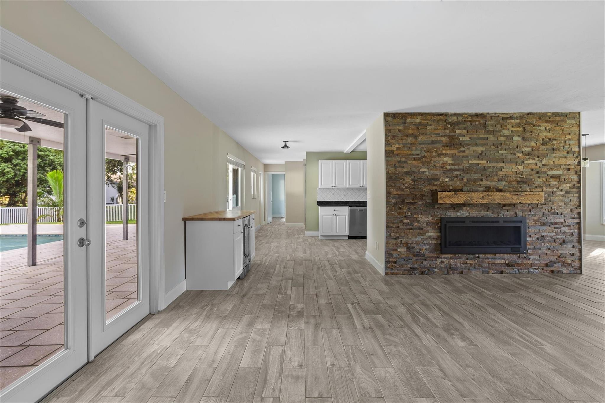 Tucked at the end of a double cul-de-sac in Davie’s Prestigious Hiatus Isles, this one-story retreat blends privacy and lifestyle. Wake up to shimmering lake views and birdsong, spend afternoons by the oversized pool or casting into a fish-filled pond, and gather in the evenings by a cozy fireplace. Sunlight fills bay-windowed living and dining rooms, while the eat-in kitchen perfectly frames the water. Sliding doors open to a covered patio for alfresco dining and sunset views, with room to add your own dock. In a serene, non-HOA enclave near top schools, every arrival feels like coming home. This is an opportunity to step into this lifestyle with ease.