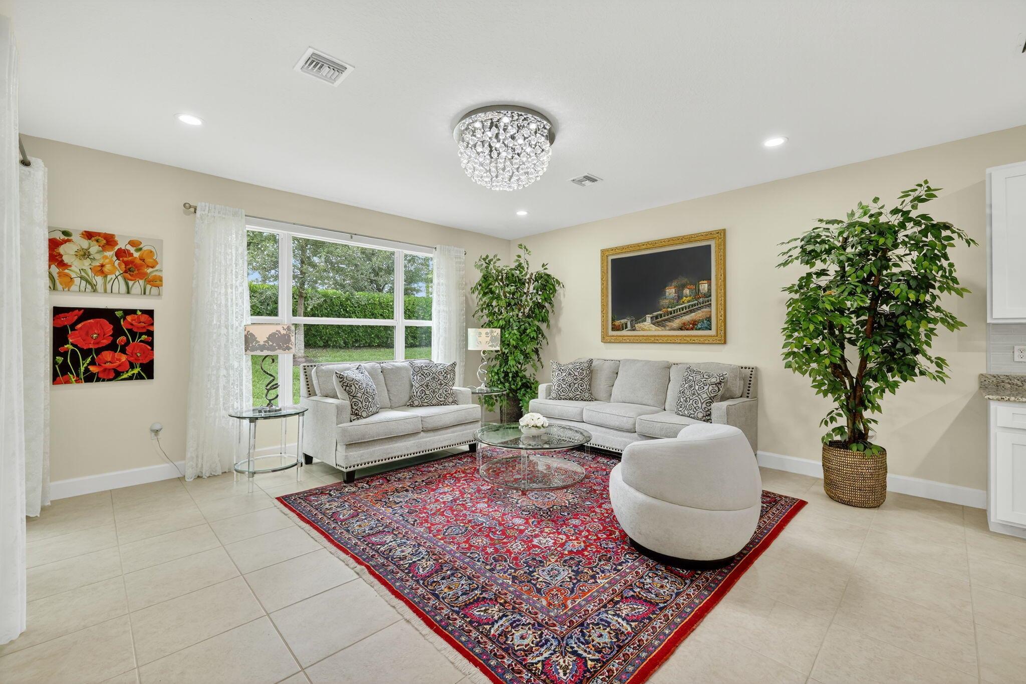 Discover this stunning 2-bedroom, 2-baths, (plus den/office) home, located in the desirable gated community of Valencia Cay at Riverland. This contemporary home features an open concept with a massive kitchen & living area, spacious master bedroom & elegant master bath, impact windows, recent interior & exterior paint. Enjoy the screened in porch with a private backyard. Property is conveniently located at a very short distance from Tradition Mall, Cleveland Clinic, I-95 & the popular Heart of Tradition, to enjoy dining & shopping in a very relaxed atmosphere. As part of the Riverland community, you get to enjoy resort style amenities such as the community restaurant, fitness center, community pool, social clubs, etc. Selling agent & Buyer are responsible to confirm Hoa info & Fees.