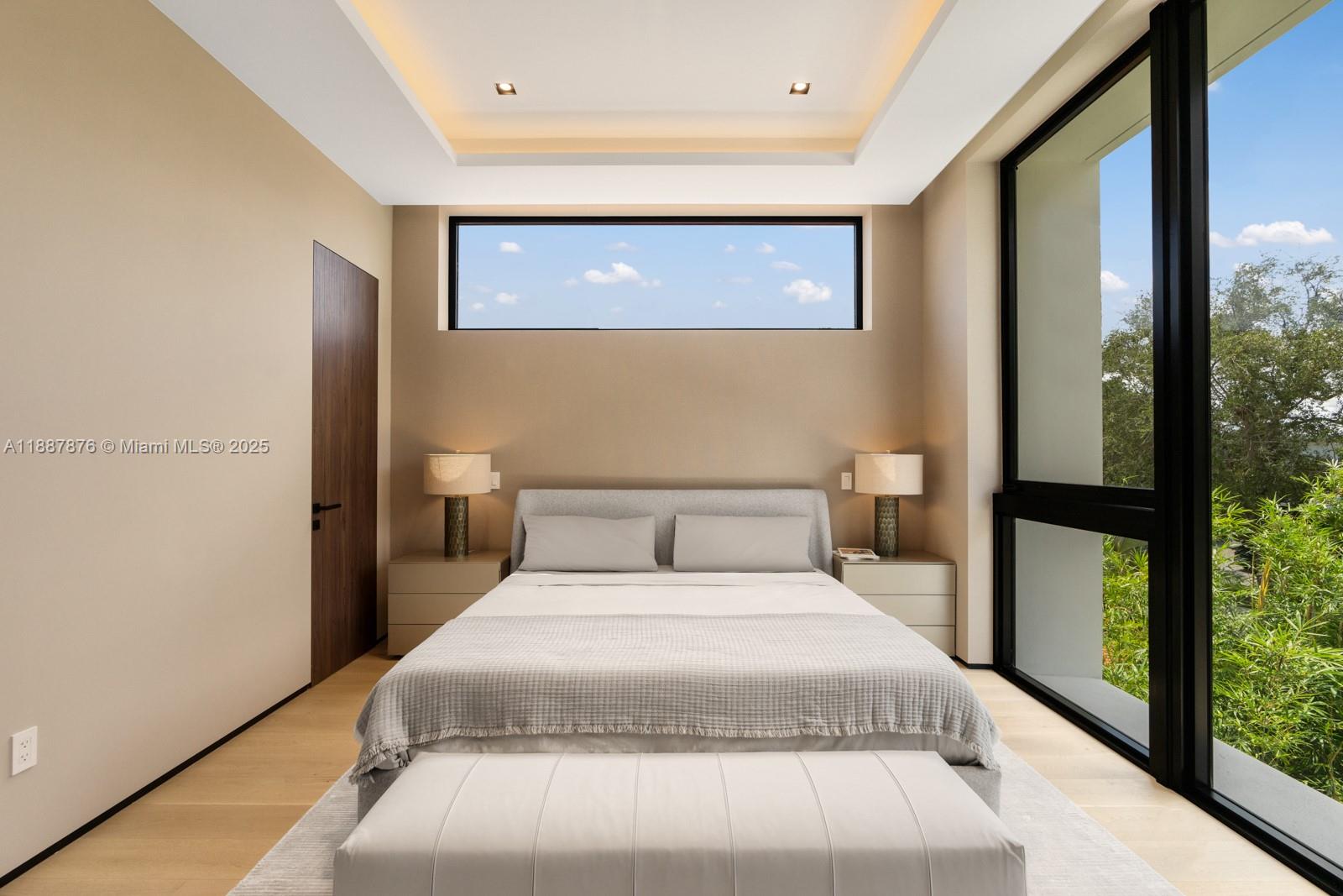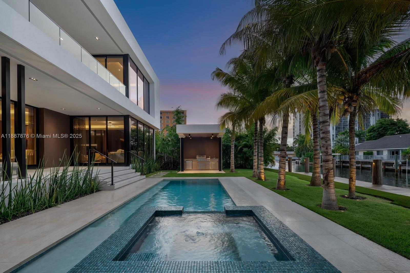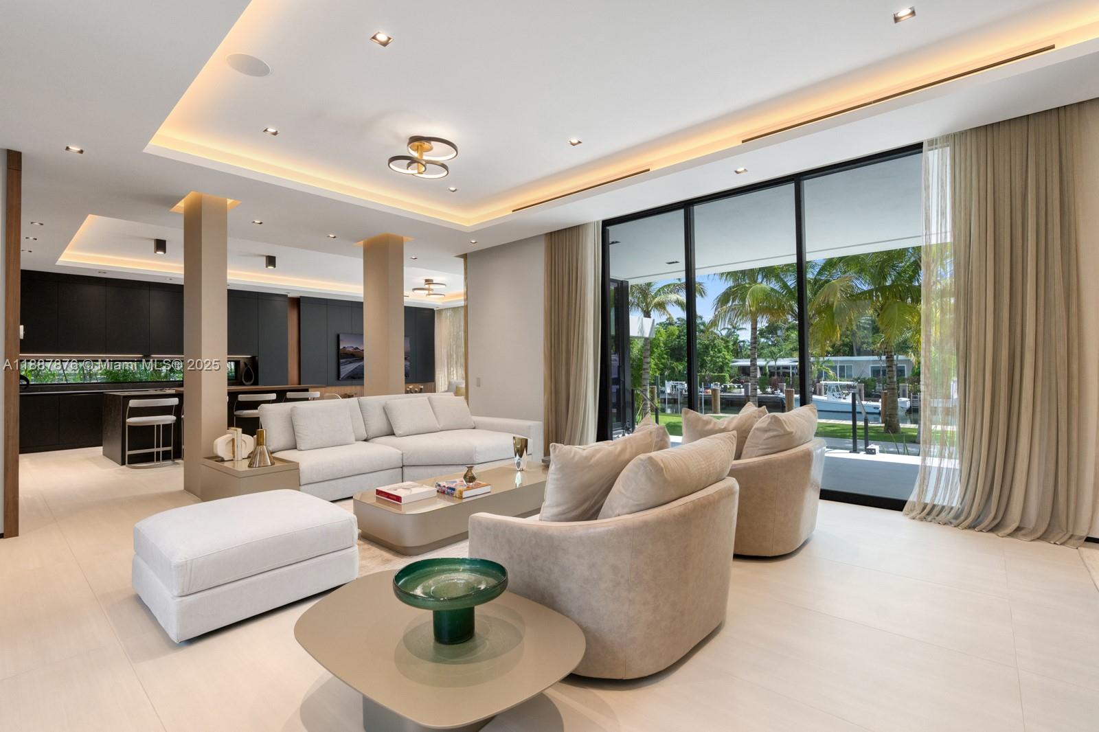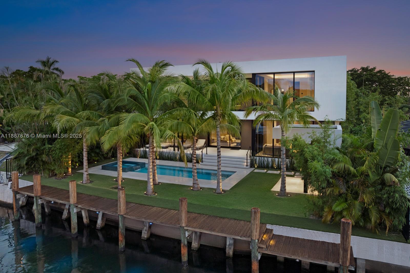 This waterfront estate in gated Keystone Point blends architectural excellence with modern flair. Designed by PRAXIS Architecture + Design and built by Gamma Construction, the never-lived-in residence offers nearly 6,000 sq ft with 6 bedrooms and 5.5 baths. Floor-to-ceiling impact windows bathe the two stories in natural light, highlighting interiors by CB Design with custom closets and spa-like baths. The Italian Mia Cucina kitchen pairs Wolf and Sub-Zero appliances, while a Crestron smart system ensures effortless living. Outdoors, 75 ft of water frontage provides deep-water dockage and direct bay access, alongside a heated saltwater pool, spa, and lush landscaping for privacy. All minutes from Bal Harbour Shops and Miami Country Day School.