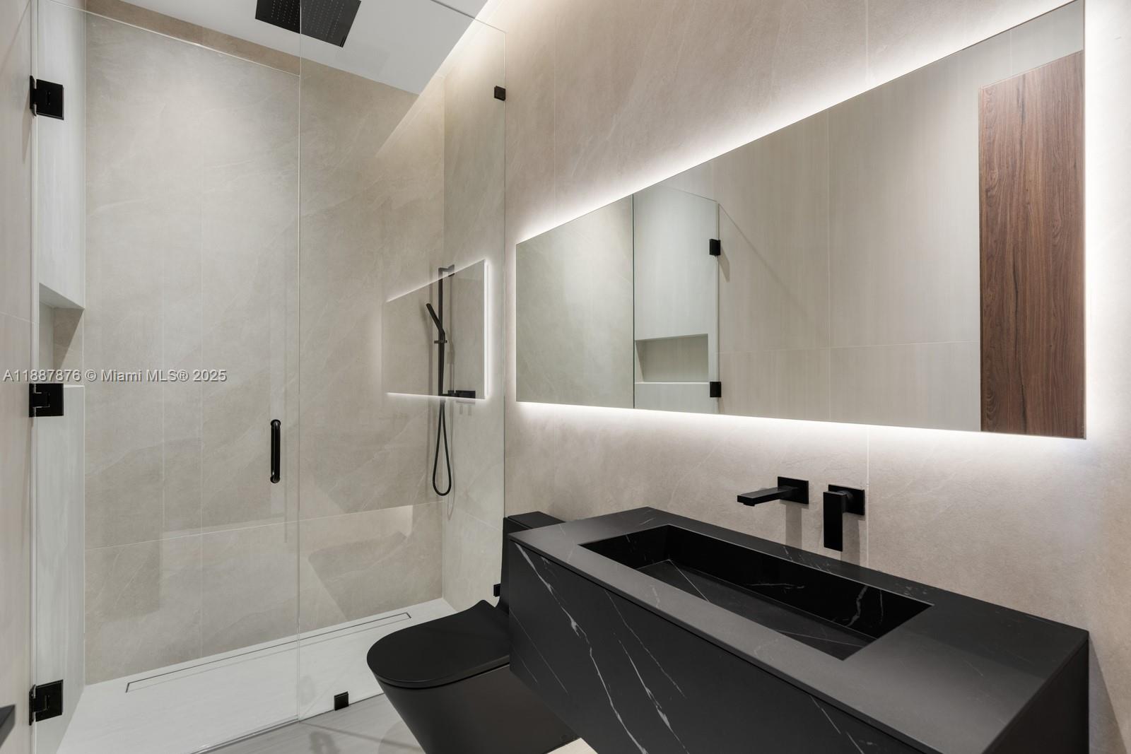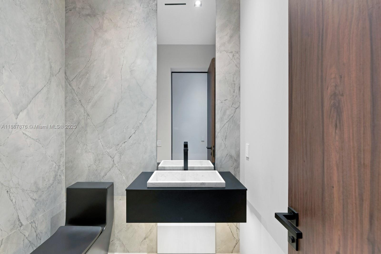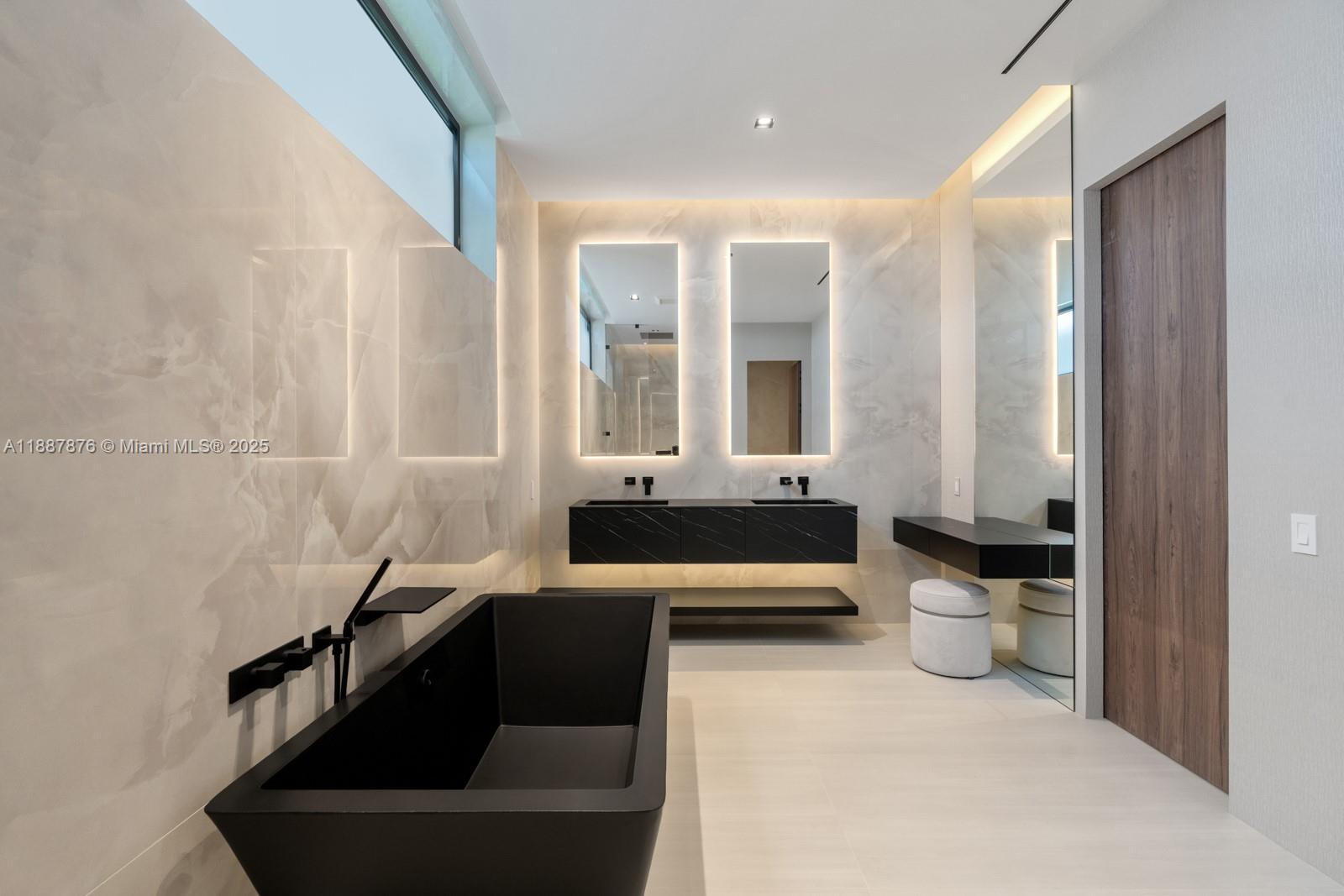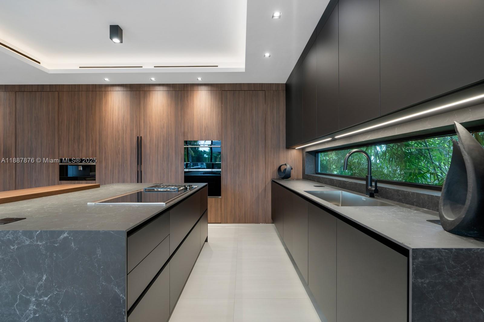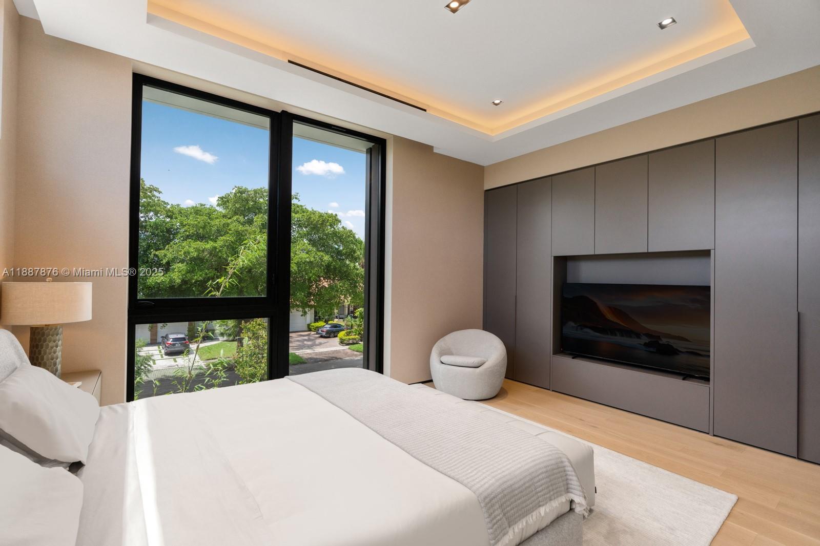 This waterfront estate in gated Keystone Point blends architectural excellence with modern flair. Designed by PRAXIS Architecture + Design and built by Gamma Construction, the never-lived-in residence offers nearly 6,000 sq ft with 6 bedrooms and 5.5 baths. Floor-to-ceiling impact windows bathe the two stories in natural light, highlighting interiors by CB Design with custom closets and spa-like baths. The Italian Mia Cucina kitchen pairs Wolf and Sub-Zero appliances, while a Crestron smart system ensures effortless living. Outdoors, 75 ft of water frontage provides deep-water dockage and direct bay access, alongside a heated saltwater pool, spa, and lush landscaping for privacy. All minutes from Bal Harbour Shops and Miami Country Day School.
