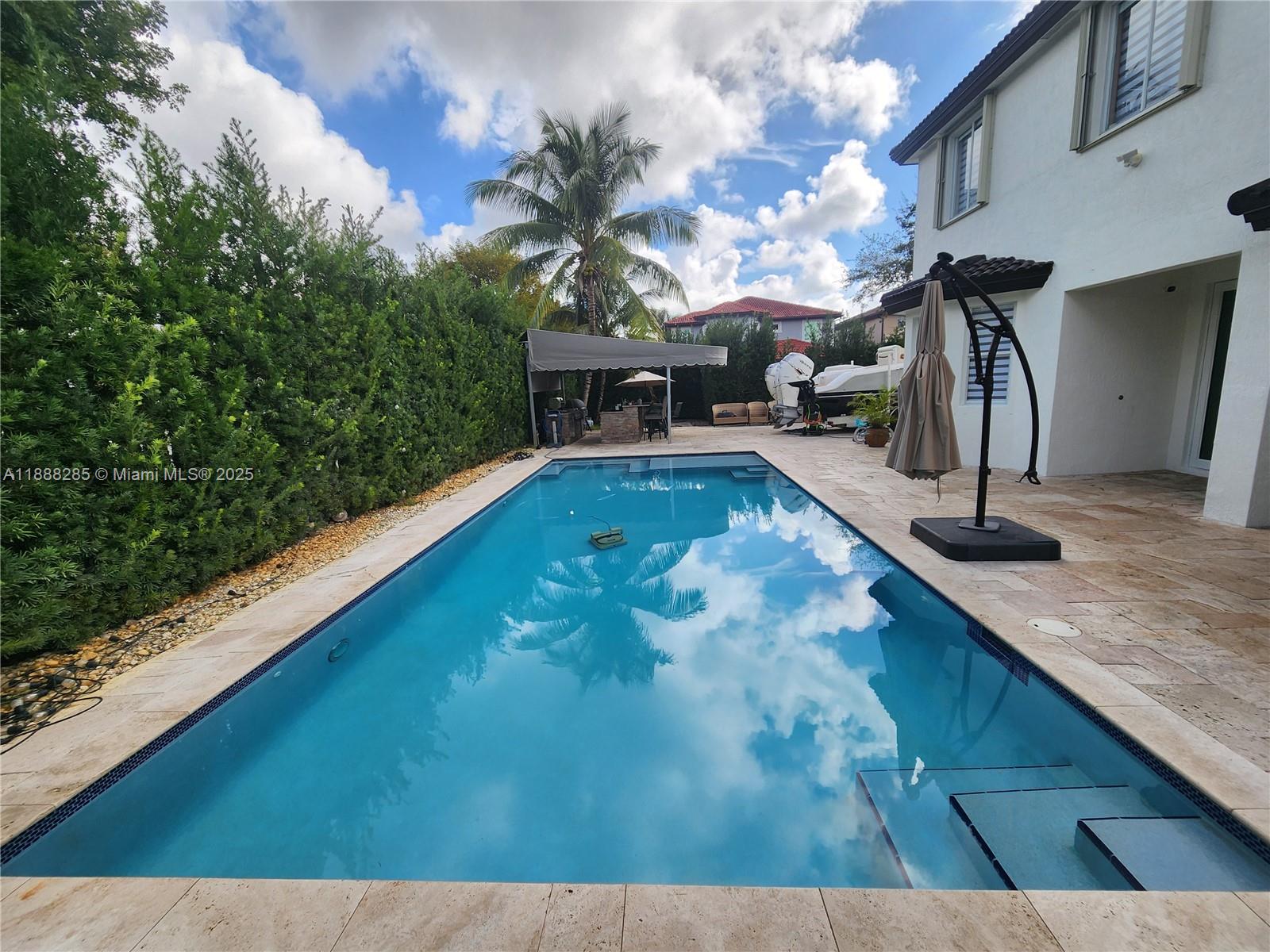 Fully remodeled corner home, 5/3 with spacious bedrooms, travertine marble floor, a beautiful staircase, high ceilings that let in natural light and give a modern touch to the house. The kitchen is spectacular, with Italian cabinetry, a quartz island, high-end appliances. One bedroom and a full bathroom downstairs for your convenience. Saltwater pool and space for your big boat, kitchen, BBQ in the backyard for your social gatherings, super cozy backyard, spacious two-car garage, and plenty of parking space around the house. Great schools and good neighborhood, this property is a great investment!