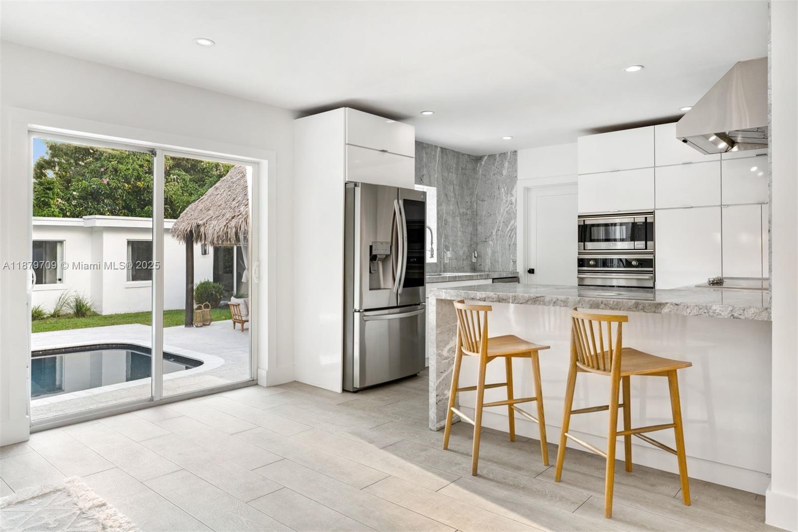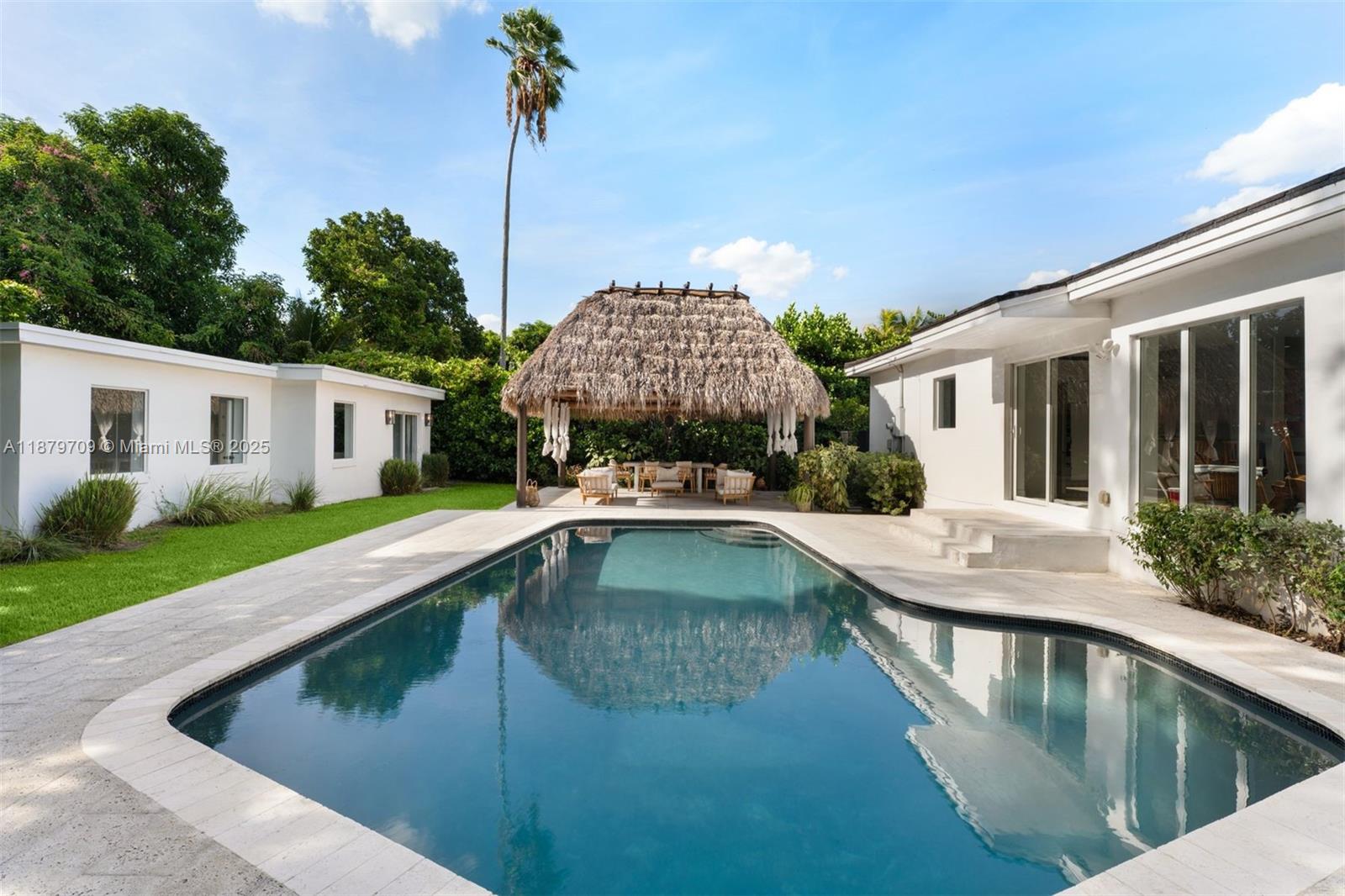 Turn-key gated Mimo estate on an expansive 14,878 SF lot offering exceptional privacy. This 5-bedroom, 4.5-bathroom residence features a thoughtful layout with a dedicated home office and seamless indoor-outdoor flow. The oversized backyard is a sanctuary with mature trees, lush landscaping, and a sparkling pool—perfect for entertaining or unwinding. Enjoy multiple outdoor living areas including a covered patio and private outdoor shower. A detached guest house provides ideal space for visitors or flexible use. Additional features include a covered carport with EV charger, secure gated entry, and abundant afternoon light throughout the home. Designed for modern living and move-in-ready comfort, this residence delivers privacy, functionality, and timeless appeal.