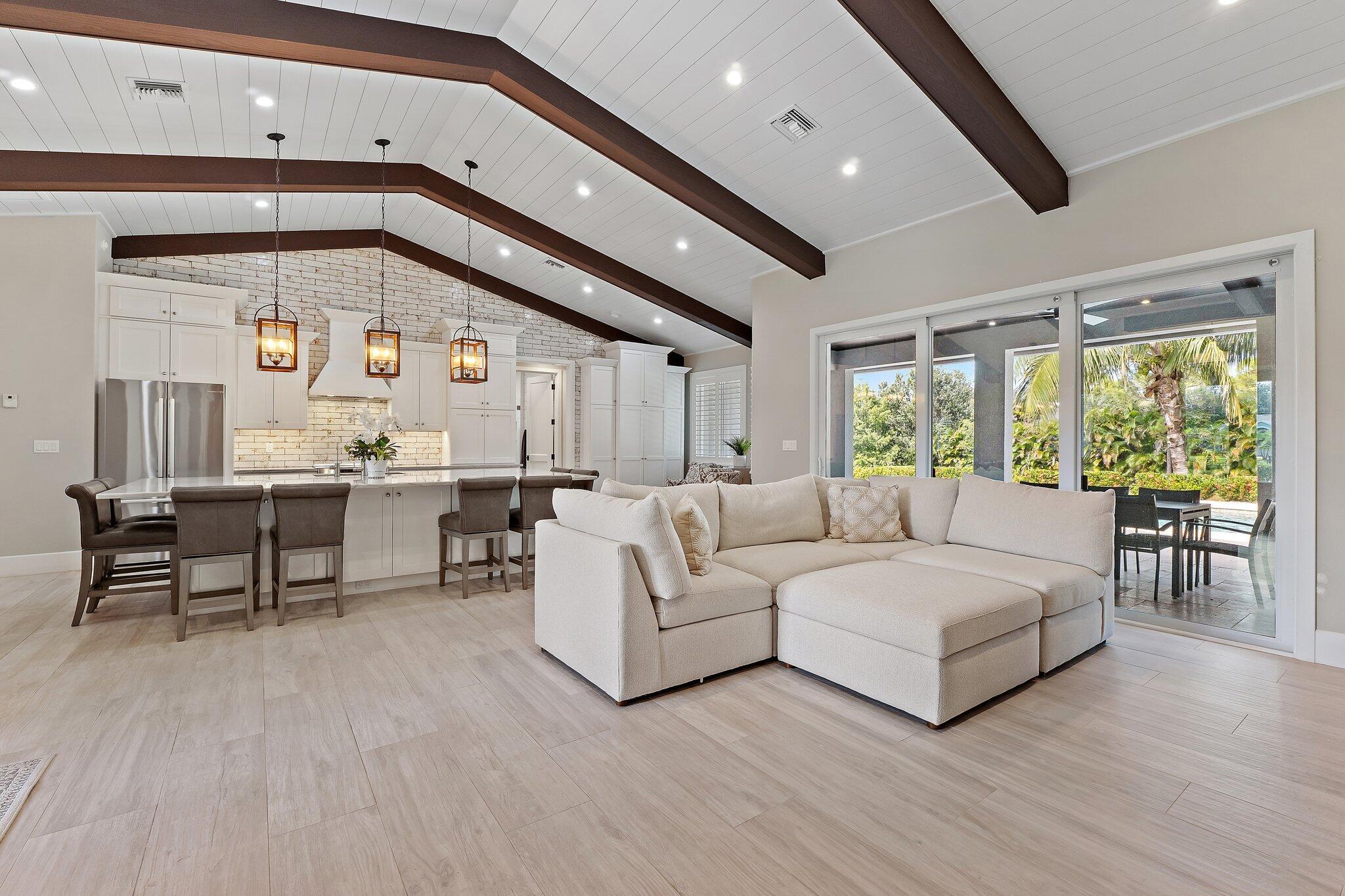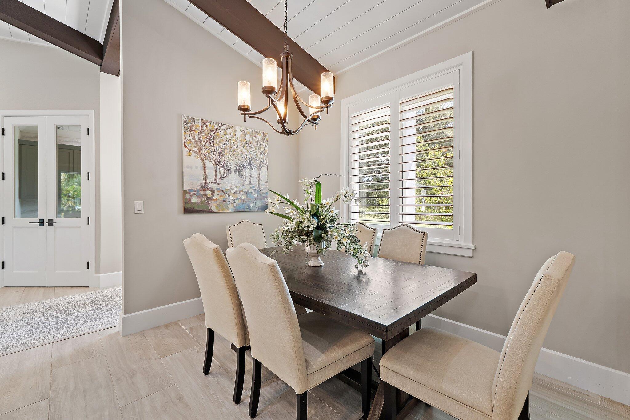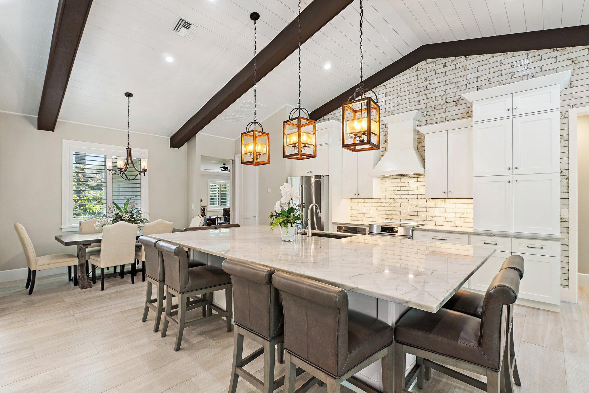 A rare opportunity to own 2.4 acres of pure sophistication, privacy, and purpose anchored by an extraordinary 1,750 square foot CBS garage that is fully air conditioned with 16 foot ceilings, ideal for car collectors, RV enthusiasts, guest quarters, or a business retreat. The space alone redefines versatility and luxury.Every inch of this remodeled estate home reflects thoughtful design and refined craftsmanship. With 3 bedrooms, 2 baths, and a spacious den, the interior features elegant 7 inch crown moldings, solid 8 foot core doors, vaulted beam ceilings, custom cabinetry, plantation shutters, and designer lighting throughout. The beautifully curated home office creates an inspiring environment to work or create from home.The gourmet kitchen is a showpiece of style and function,