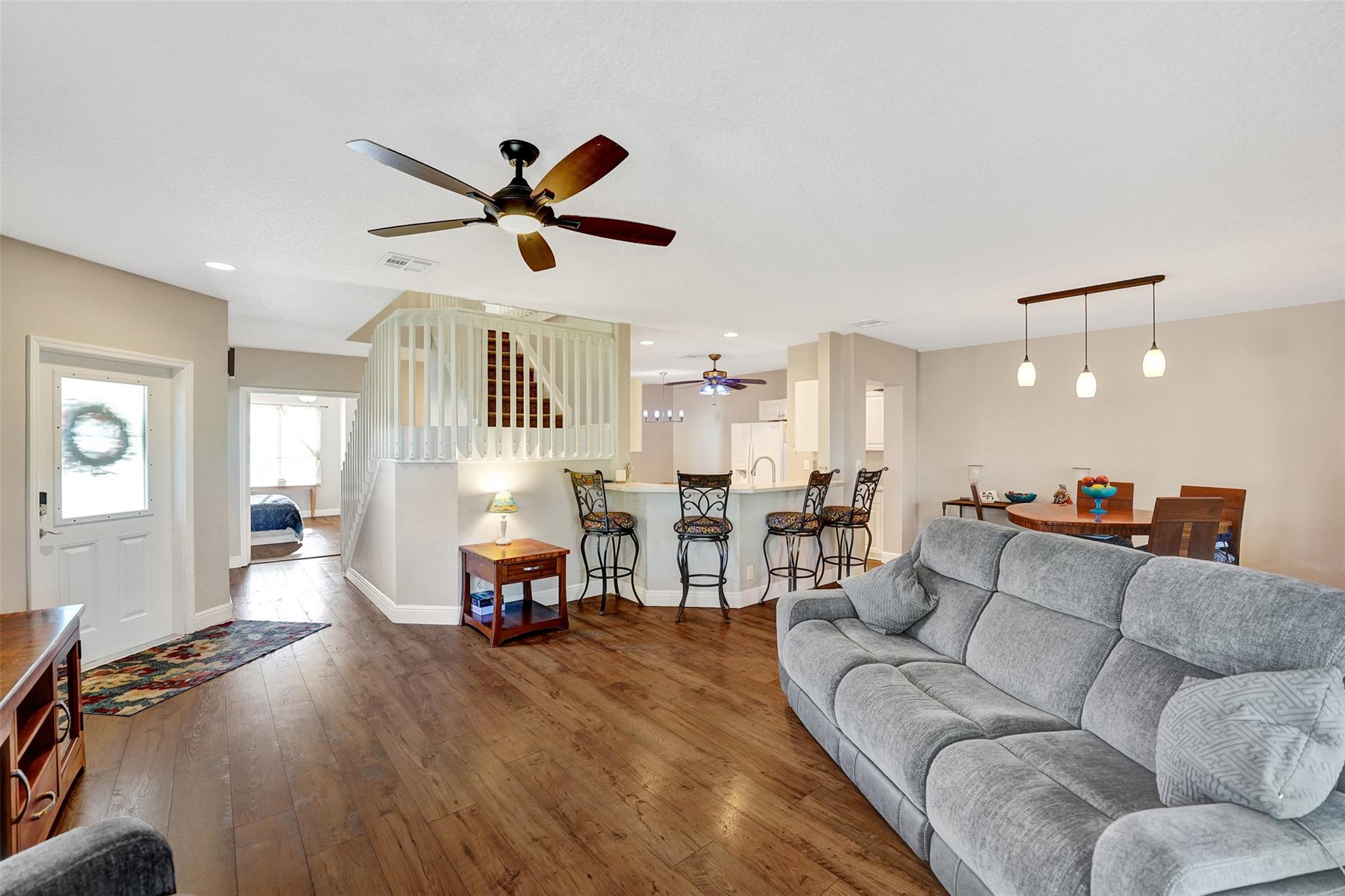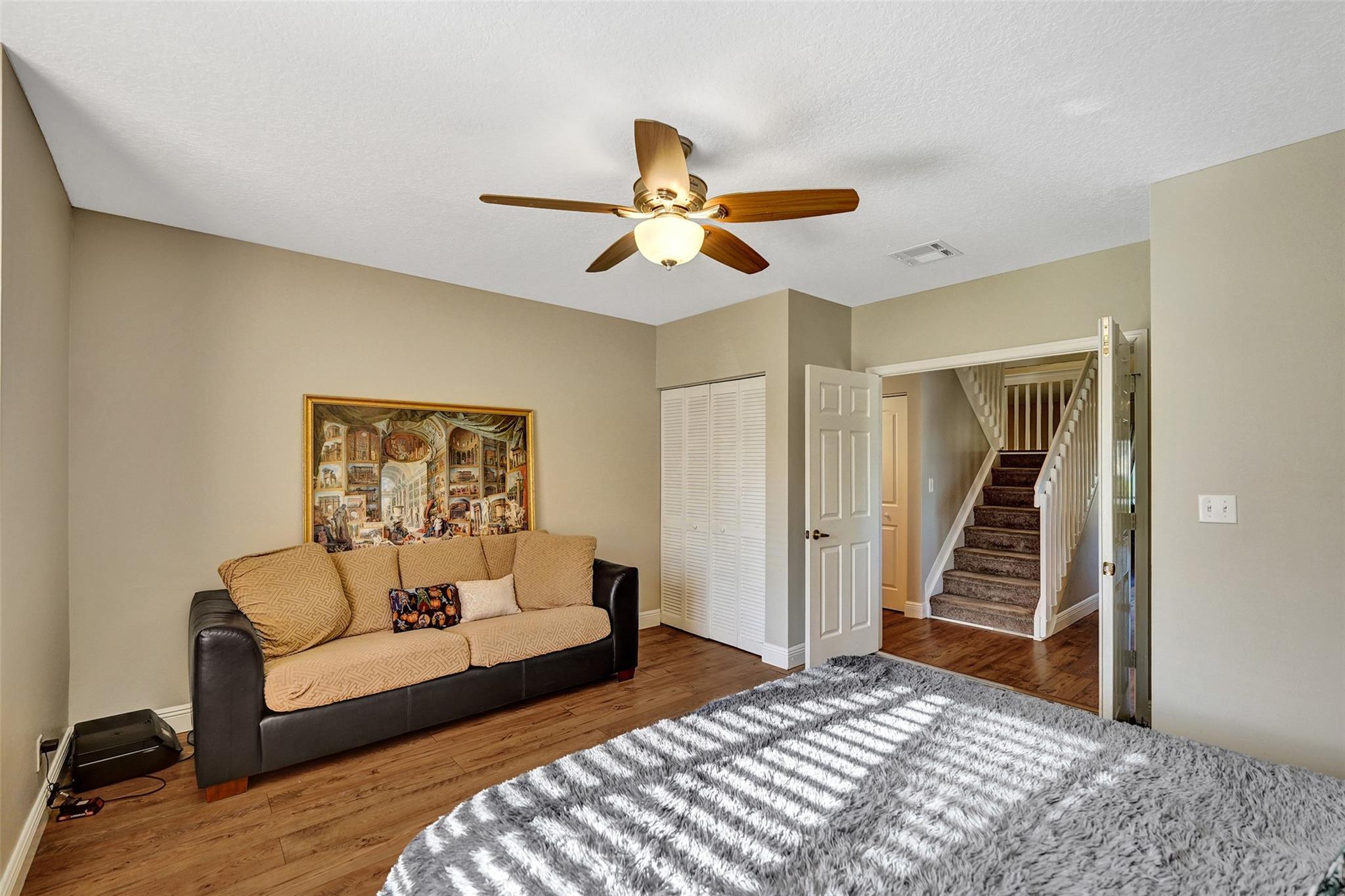 Beautiful 4BR/2.5BA home with 1-car garage in the highly desirable Scarborough community! Primary suite offers dual large walk-in closets & extra windows for added natural light. Laundry upstairs near bedrooms. Features partial impact windows/doors, screened tile patio, oversized backyard & serene lake views. Roof, A/C & water heater replaced in 2016. One of the largest townhome lots in the community at 6,605 sq ft! Provides the comfort of a single-family home feel with the convenience of townhome ownership. Enjoy the convenience of an added parking space by the driveway. Low HOA includes lawn care & exterior painting (scheduled for early 2026). Community amenities: pool, clubhouse, playground, basketball & tennis courts. Home can be rented with no waiting period after purchasing.