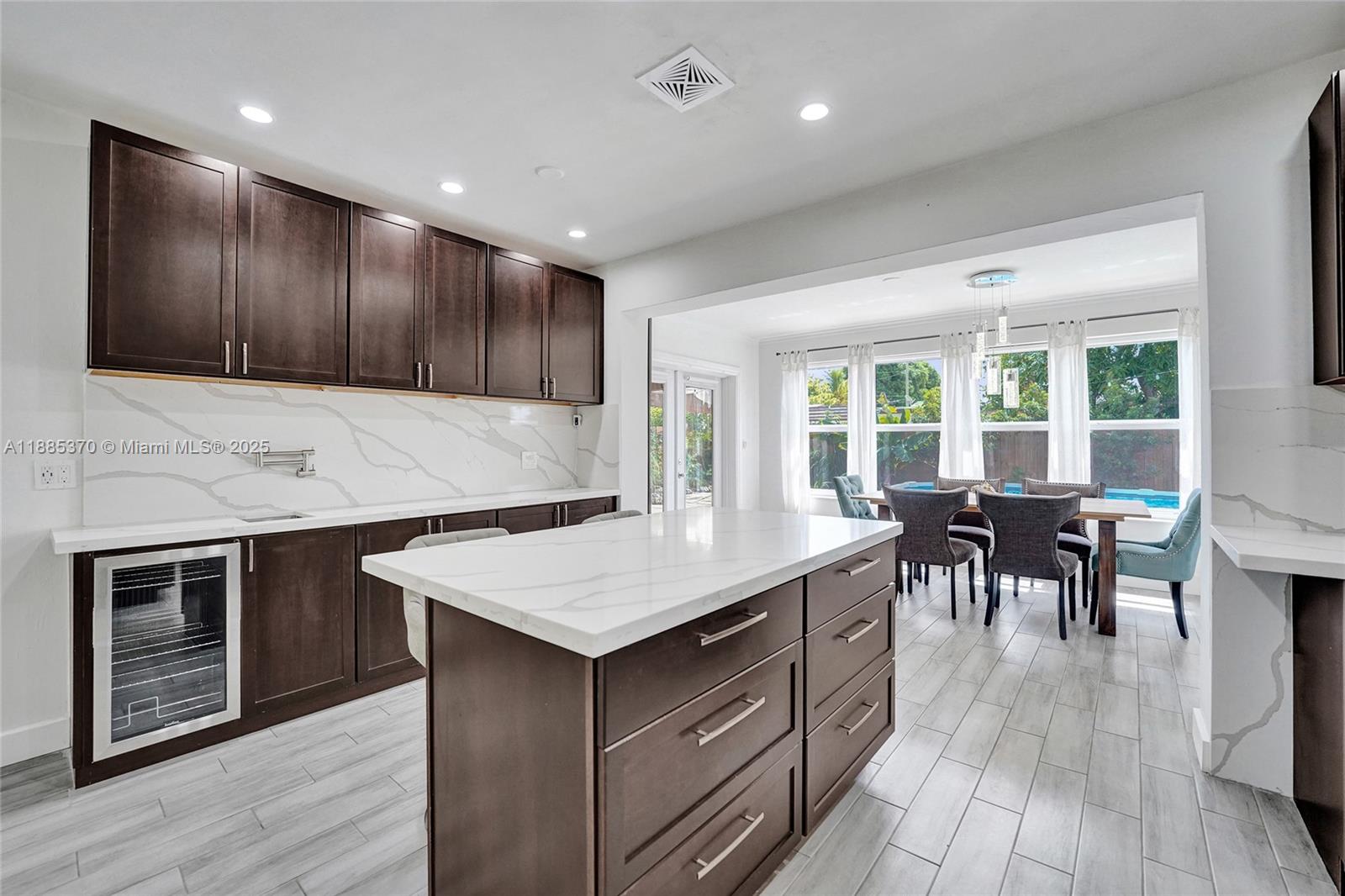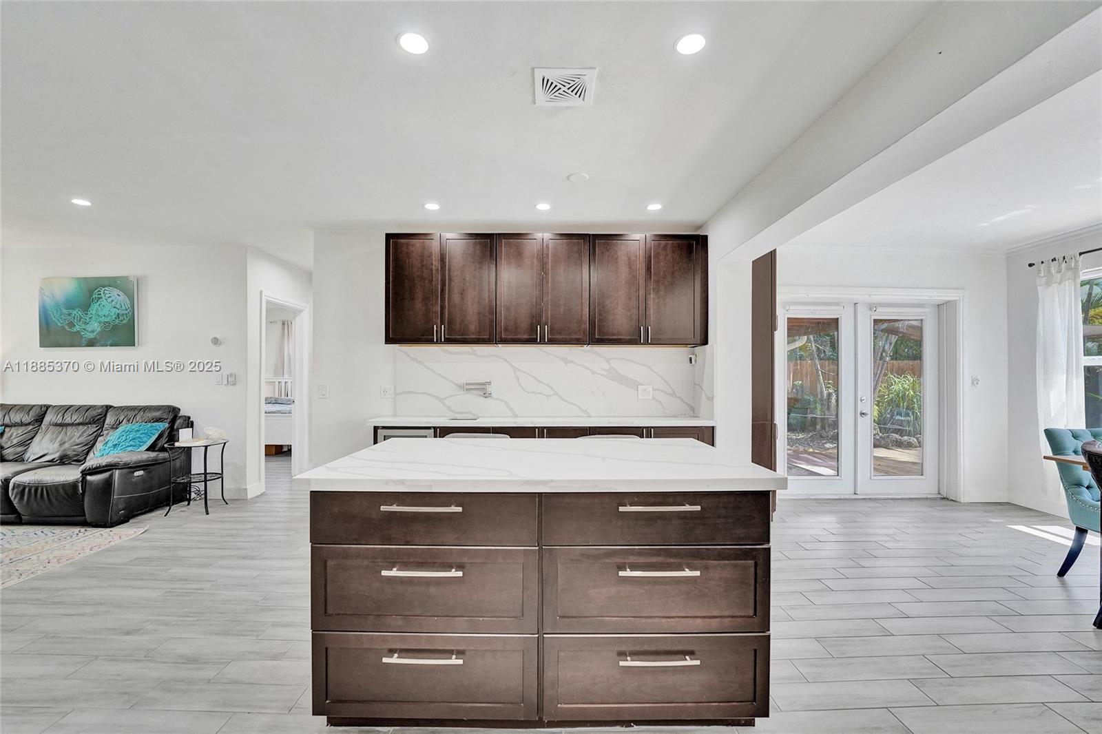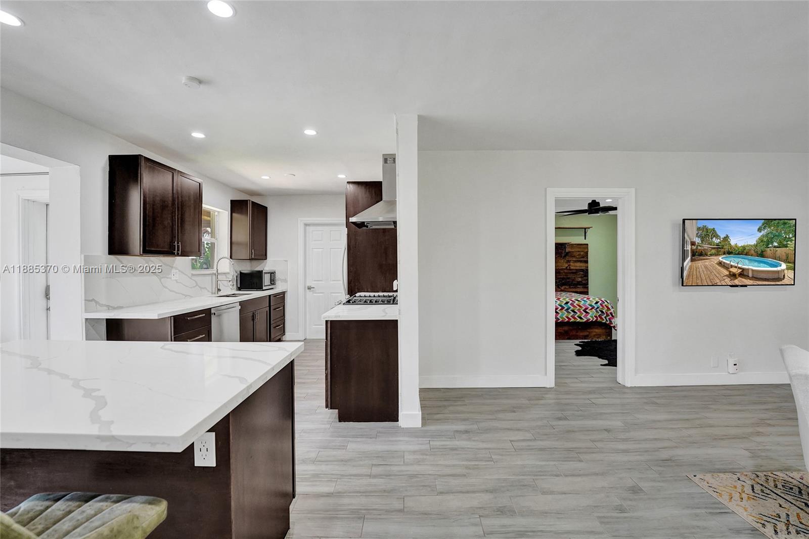 This beautifully remodeled 3BR/2BA pool home in Riverland Village is just minutes from Downtown Fort Lauderdale, beaches, dining, shopping, and highways—Miami or West Palm Beach in under an hour. Enjoy a tropical oasis with a fenced backyard, pond, grass, and 2 covered patios. Swim day or night in the above-ground pool with sundeck and landscape lighting. Inside, enjoy plank tile floors and a stunning Chef’s Kitchen with dark wood cabinetry, quartz counters and full backsplash, gas stove, stainless steel hood and appliances. The impressive island has bar seating and a huge coffee bar with a sink and pot filler. Split bedrooms offer a private primary suite, and all baths were remodeled with glass-enclosed showers. 1-car garage, Aluminum Roof, sidewalks, parks, good schools nearby—no HOA!