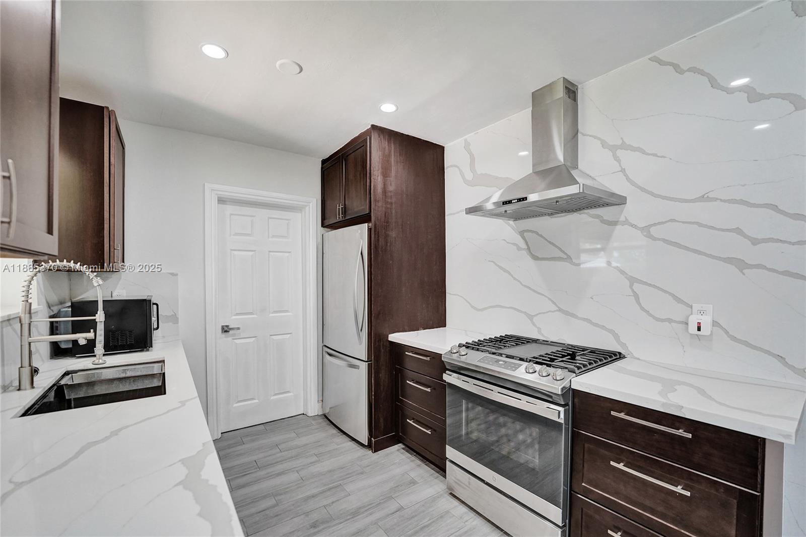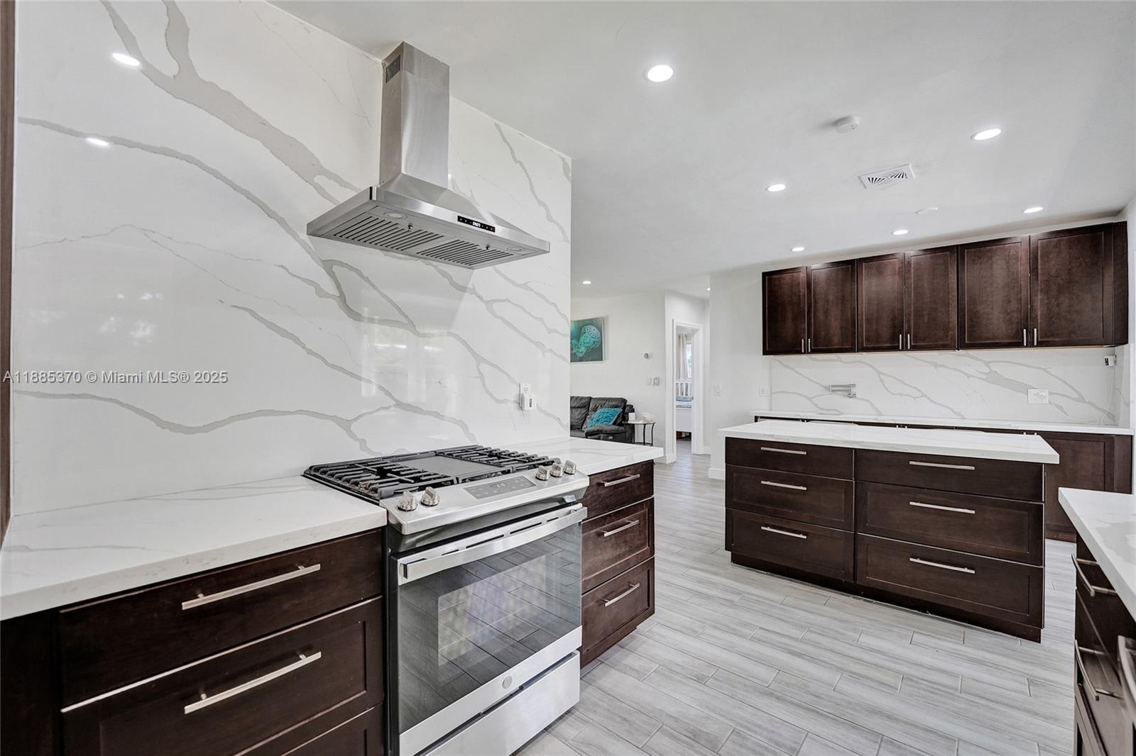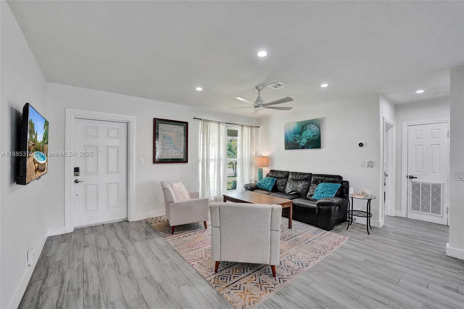 This beautifully remodeled 3BR/2BA pool home in Riverland Village is just minutes from Downtown Fort Lauderdale, beaches, dining, shopping, and highways—Miami or West Palm Beach in under an hour. Enjoy a tropical oasis with a fenced backyard, pond, grass, and 2 covered patios. Swim day or night in the above-ground pool with sundeck and landscape lighting. Inside, enjoy plank tile floors and a stunning Chef’s Kitchen with dark wood cabinetry, quartz counters and full backsplash, gas stove, stainless steel hood and appliances. The impressive island has bar seating and a huge coffee bar with a sink and pot filler. Split bedrooms offer a private primary suite, and all baths were remodeled with glass-enclosed showers. 1-car garage, Aluminum Roof, sidewalks, parks, good schools nearby—no HOA!