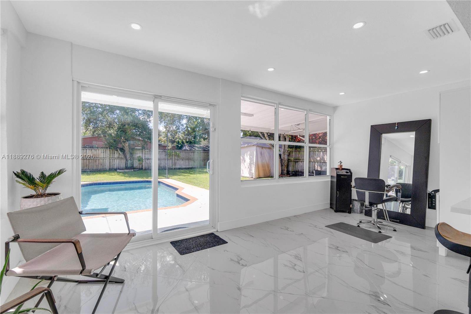 pool house, beautiful remodeled house located in an excellent area of ????Hollywood, FL. The house has 3 bedrooms, 2 bathrooms, the master has an independent exit which can be used as income by renting it conventionally or through Airbnb. It has a large fenced rear patio with water sprinklers, a pool and fruit trees, impact windows, ceramic floors, a modern kitchen with a quartz countertop, modern remodeled bathrooms, a Florida room, a double driveway for greater comfort. The property has also been freshly painted and is very well maintained. You can raise your children in this beautiful house or live in part of the property and rent the other part to earn extra income.