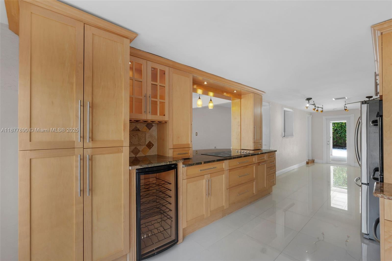All about LOCATION! This large 3-bedroom (OVER 2000 SQFT), 3-bathroom home features spacious split bedrooms and a large dream kitchen with butler's pantry. Redwood flooring throughout and an open-concept design create spectacular living space. The large backyard is your private resort featuring a fully tiled, heated saltwater pool and large grassy area with cabana. Recent major updates include new metal roof (2021), new A/C (2020), and $30,000 whole-house gas-piped GENERAC generator. Additional premium features include impact hurricane-rated windows and doors, tankless water heater, 2-zone AC, and fully insulated attic. This move-in ready home combines luxury amenities with energy efficiency and storm protection. Motivated seller has already relocated north. Furniture photoshopped!