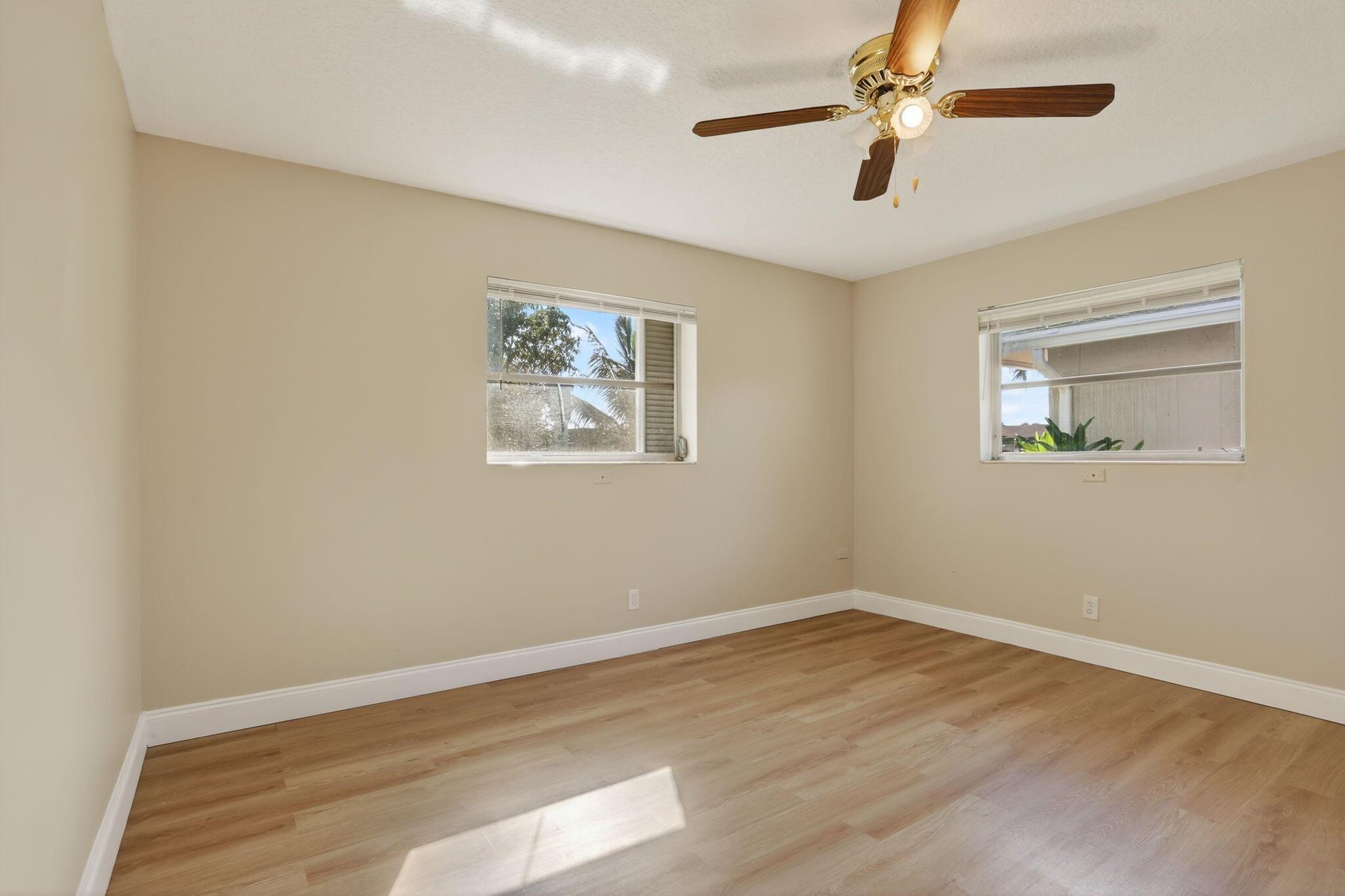 Discover the charm of this delightful 2-bedroom, 2-bathroom home, perfectly situated on a spacious corner lot with a privacy fence. Inside, you'll find a versatile bonus room ideal for a den or home office, along with a generous Florida room where you can unwind while enjoying views of the lush backyard and tranquil waterway. Freshly painted inside and out, this home features updated travertine kitchen countertops, four new ceiling fans, and new vinyl flooring in both bedrooms, offering comfort and style throughout. Ready to move-in. Located in this vibrant 55+ community, you'll enjoy access to a clubhouse, pool, fitness room, and more all just minutes from shopping and dining.