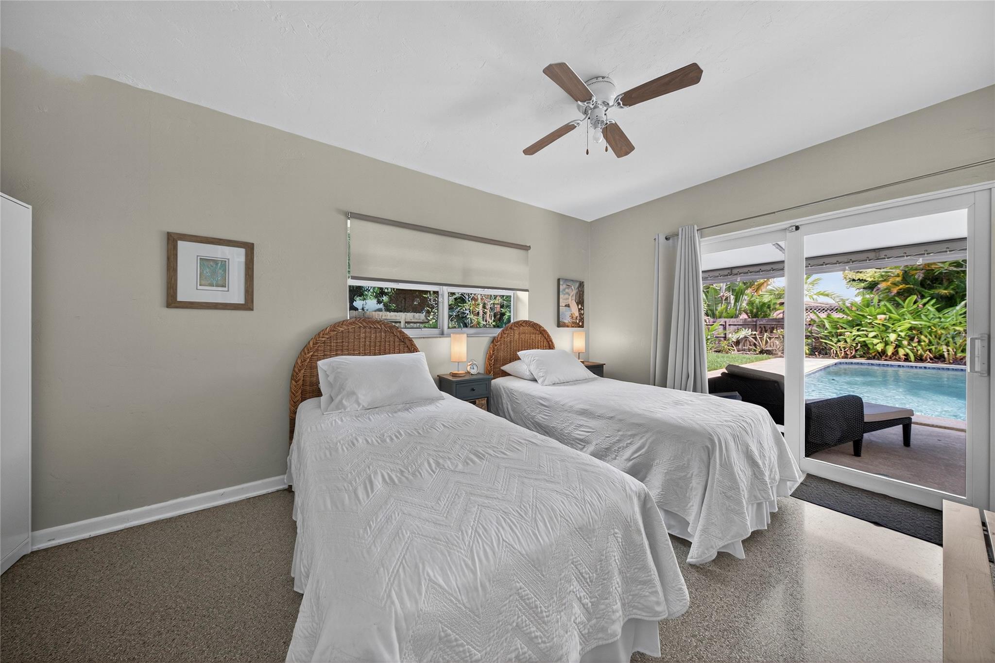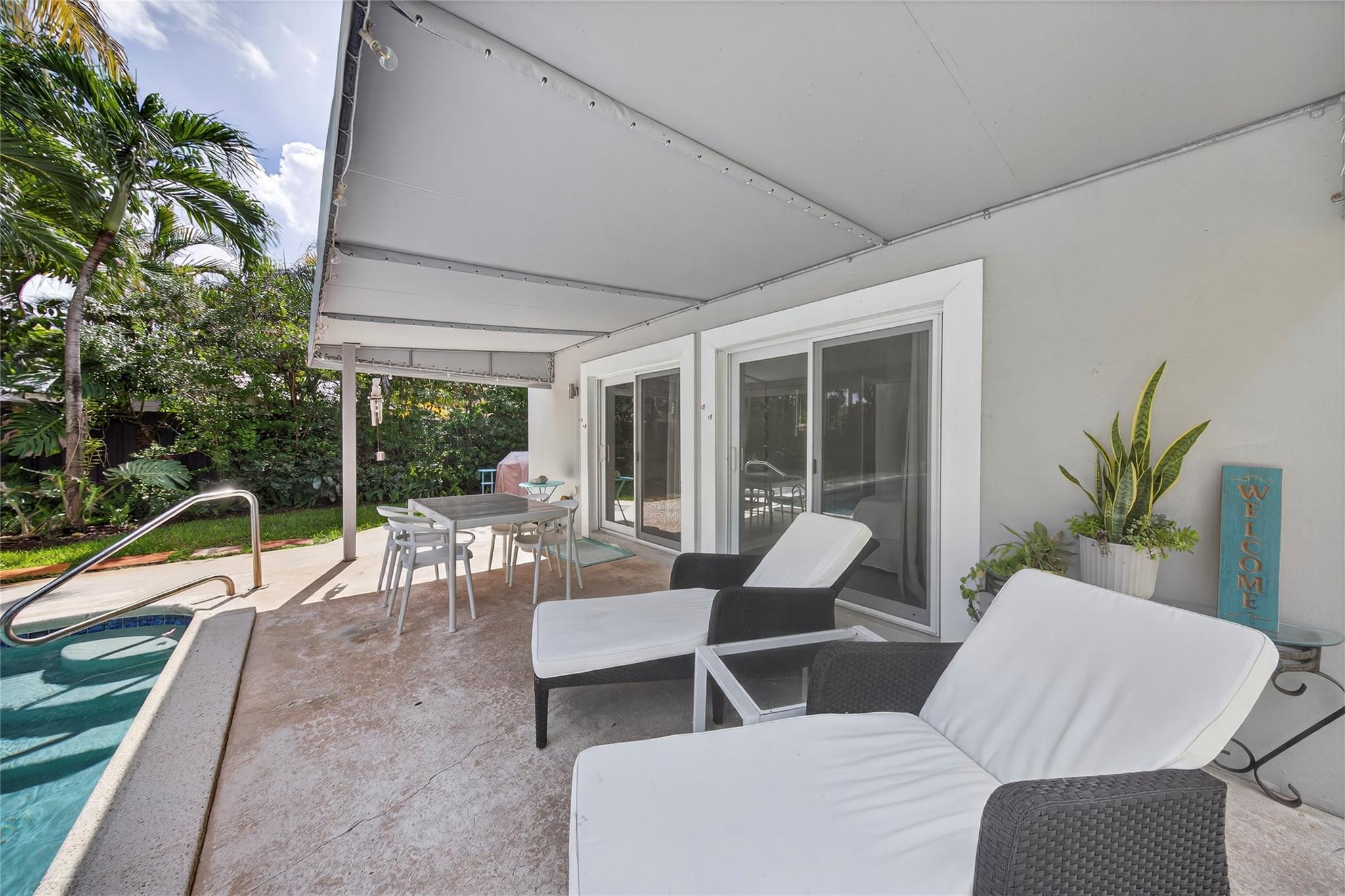 Tranquil pool home with lush, tropical private back yard and large (15’ x 30’) heated pool. Set on 8,876sf of professionally landscaped, spacious property, enjoy life poolside on the covered patio. Front Florida room leads into the recently renovated open kitchen with quartz countertops and plenty of storage space. The bathroom was also recently renovated with a convenient walk-in shower. Both bedrooms have direct access to the back patio via impact glass sliding doors. Restored terrazzo floors throughout the home. Sewer lines replaced all the way to the street with PVC in 2019 and new electrical panel with buried electrical service. Wonderful location -- easy to get to Wilton Manors or to NE 13 Street corridor, and only 1.5 miles from Fort Lauderdale beach. Come feel the relaxation!