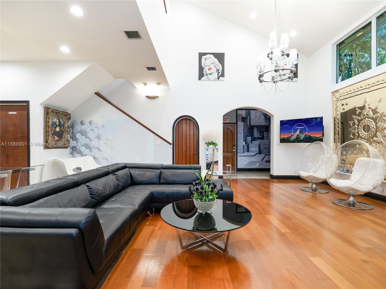 Licensed Airbnb retreat minutes from Downtown Hollywood. Built in 2010, the main home offers 5 bedrooms, 3.5 baths, vaulted double height ceilings, open floor plan, and a second floor primary wing with office and patio. A separate above, 2 car garage guest house includes a 2 bed, 1 bath apartment ideal for guests or rental income. Outdoor areas feature lush landscaping, lounging decks, and a spa beneath mature trees. Indoor/outdoor flow is seamless, creating versatile spaces for entertaining or relaxation. Prime location near beaches, shopping, and dining. Strong income potential and turnkey investment with existing Airbnb license.