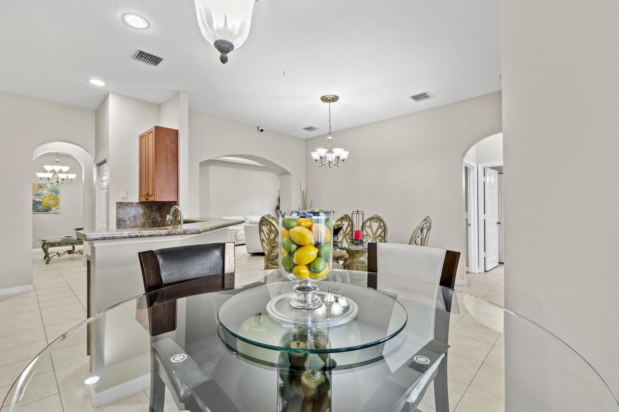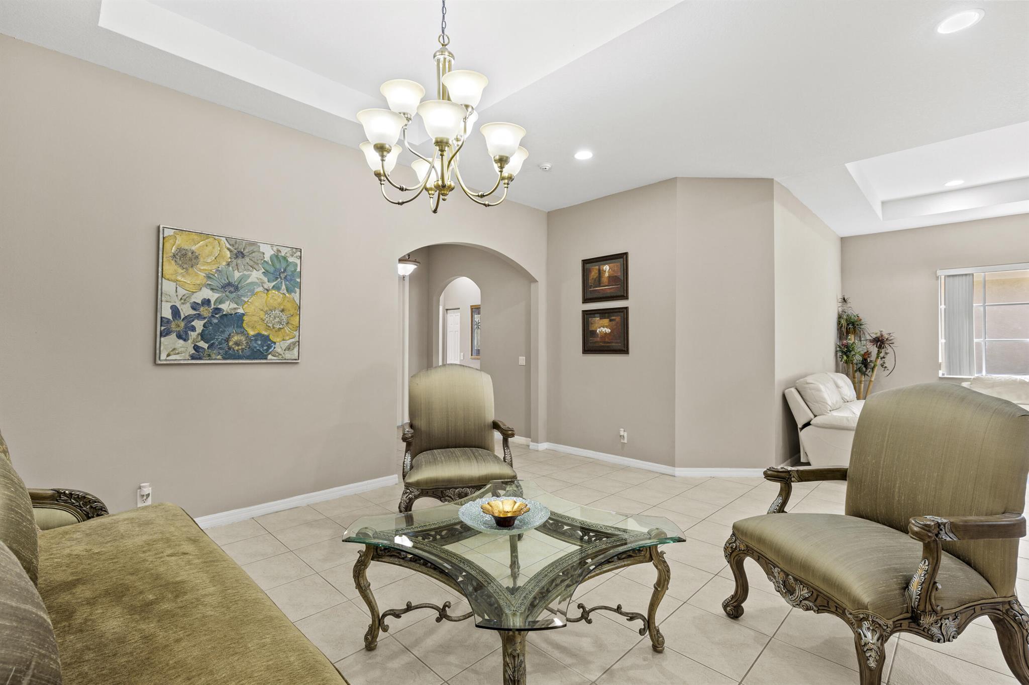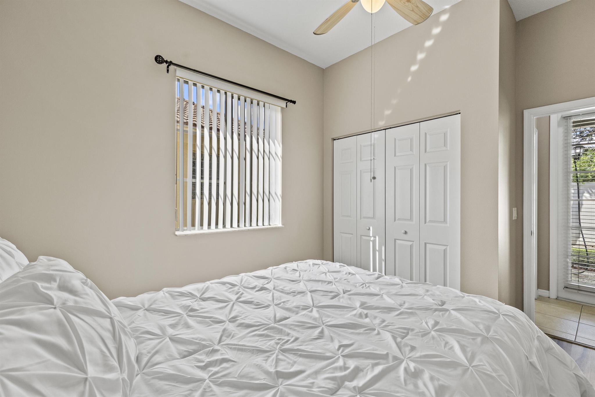 Immaculate move in condition 4 bedroom 3 bath one story home. Large open and flexible living areas plus an open eat in kitchen with a breakfast bar. 3 way split bedroom plan. High ceilings throughout. Primary bedroom has 2 walk in closets, a tray ceiling, plus access to the covered patio. Primary bathroom has a large soaking tub, separate shower, double sinks and a linen closet. Inside utility room with full size washer and dryer. Double door front entry into a spacious foyer. Paver driveway and a 2 car garage with high ceilings for lots of storage. Sidewalks throughout this guard gated neighborhood.Lots of activities at the community clubhouse for all ages. Tennis, pickleball, pool, fitness, playground, ping pong, billiards, cards, banquet hall with a kitchen and management on site.