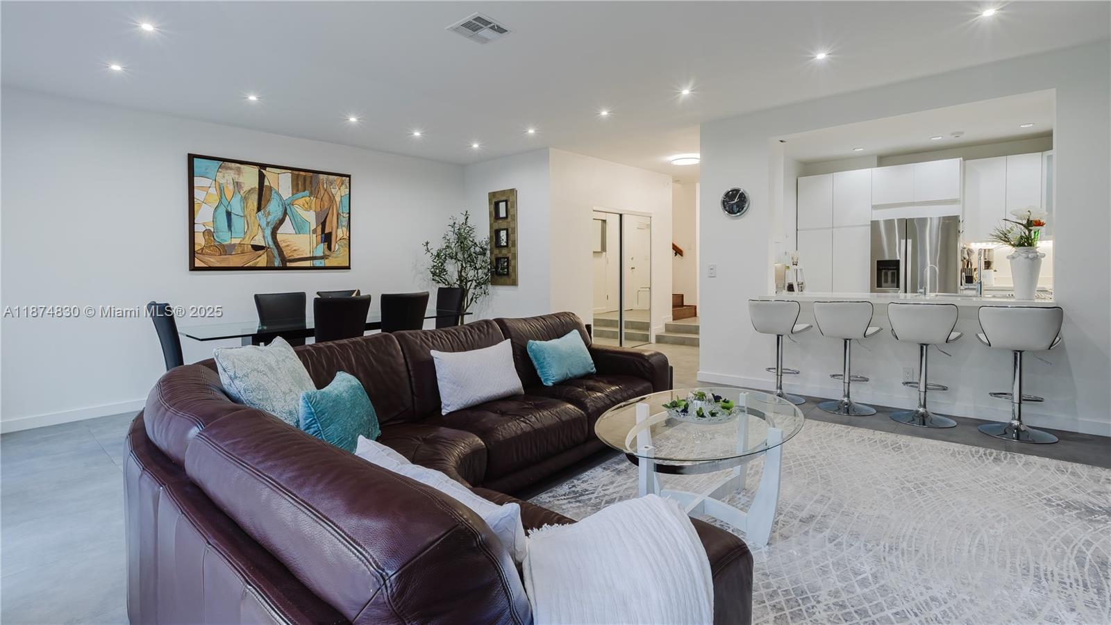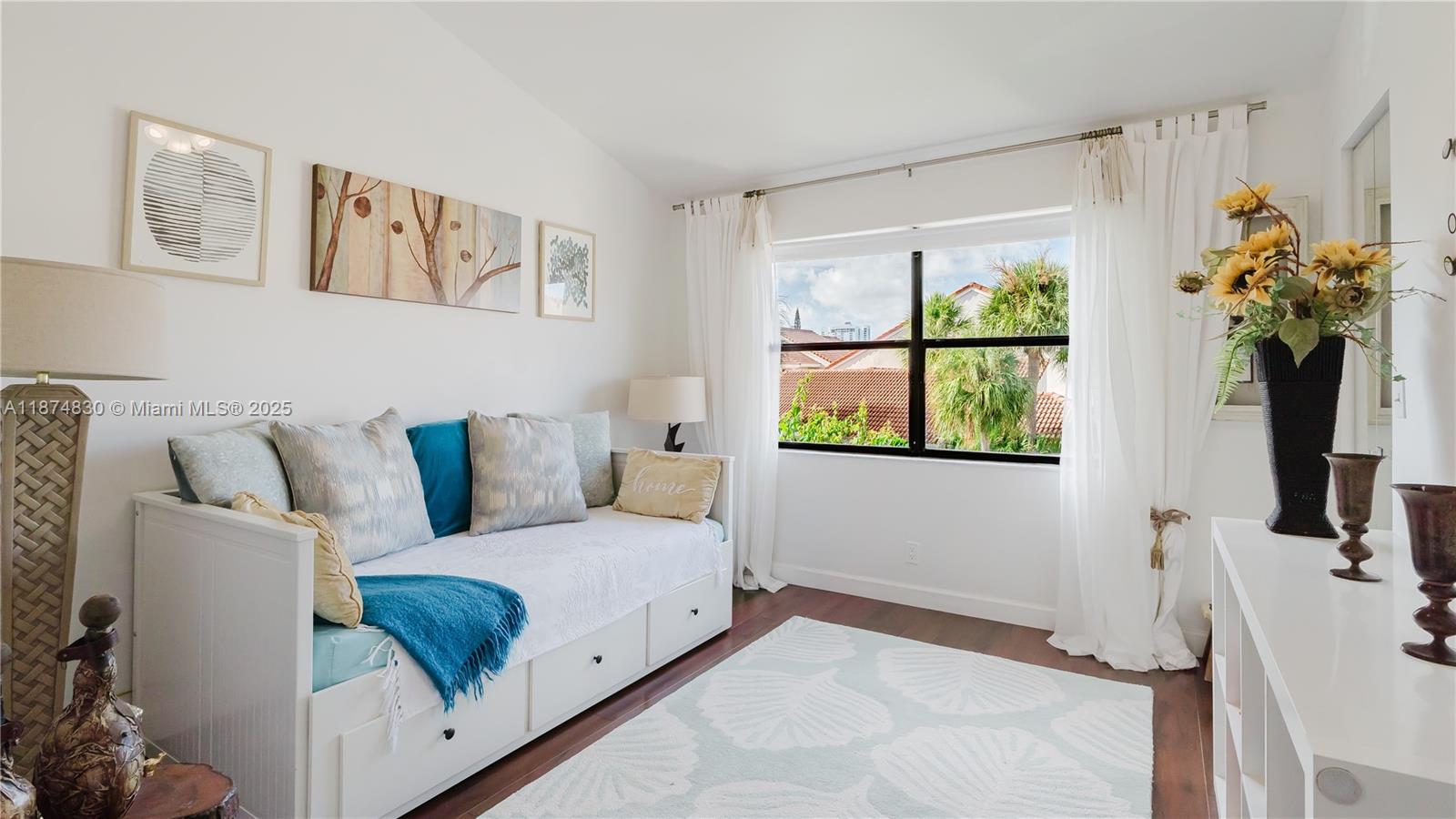 Modern, FURNISHED townhouse with a garage offers 3 bed, 2.5 bath. Situated in the prime location of Aventura with private access to waterways marina and walkway. 24/7 manned security gate and patrol. Parking permissible for 3 vehicles plus guest parking. Walking distance to school, places of worship, kosher supermarket, Whole Foods, Target, gym, post office, shops. 3-mile walking/biking exercise trail, restaurants and Aventura mall are also within walking distance. Heated infinity community pool. Beautiful floral courtyard along with screened in backyard patio as well a second floor balcony in the master bedroom with beautiful garden views. Unit may be sold unfurnished if desired. Community has full reserves.