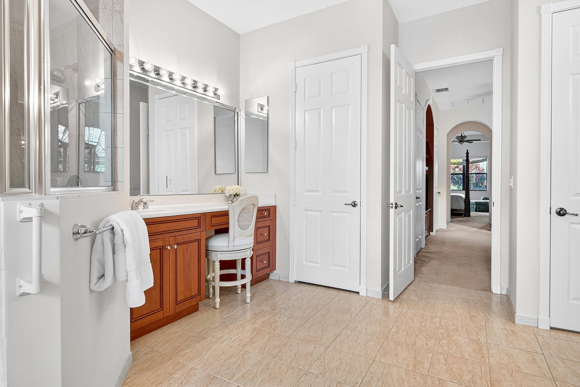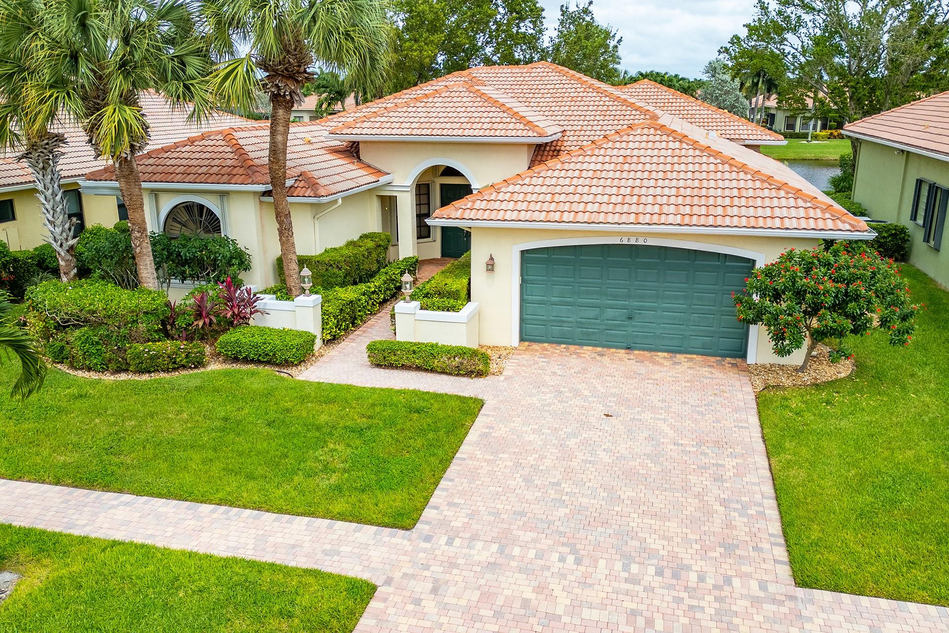 New Price! Tivoli Lakes | Popular Brunello floor plan (Estate Collection) boasting 3 BR + Den and 2.5 BA. Sited on a beautiful lakefront lot, this expansive one-level Mediterranean-style home offers an open floor plan w/multiple entertaining spaces + a north-facing covered veranda surrounded by lush landscaping. Kitchen w/breakfast bar, pantry, granite, and ss appliances. Primary suite w/walk-in closets, den, and ensuite bath. Soaring 11 ft+ ceiling | Crown molding | Recessed lighting. Tivoli Lakes is a premier gated 55+ community with manned security 24/7. Relish the active lifestyle w/stunning clubhouse, social hall, card rooms, gathering room w/bar, fitness center, and aerobics room. Tennis | Pickleball | Bocce Ball | Billiards | Pool. Convenient to PBI Airport, retail, + the beaches!