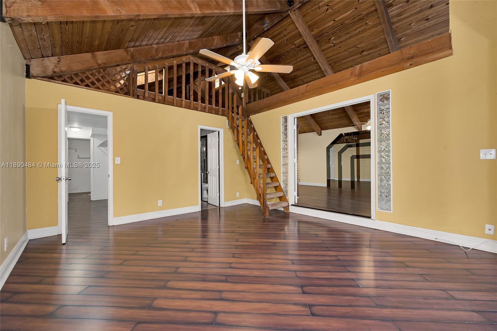 Rarely available 2BR/2BA townhome in the highly sought-after Lofts of Palm Aire - must be seen to be appreciated! This home features vaulted ceilings with wood beams, a loft, open layout, kitchen with granite countertops, 2023 AC, washer & dryer, a private driveway, underground powerlines & fenced backyard. The primary suite is spacious and includes a walk-in closet and updated bathroom. Enjoy a private patio and yard with a large shed for extra storage. Amenities include community pool in tropical setting, with solar heating for year-round use, tennis courts, dog park & more. Located minutes from the FL executive airport, beaches, highways, restaurants, shopping & more. Only $100/monthly maint.
