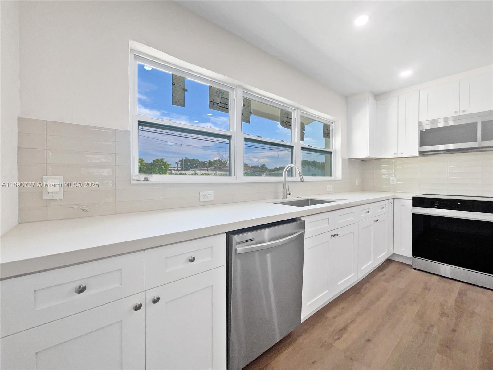Welcome to this beautifully renovated home, boasting all new impact windows! Step into the main living area featuring a neutral color paint scheme that complements the new flooring throughout. The remodeled kitchen is a chef's dream with stone counter tops, a stylish accent backsplash, all stainless steel appliances and a convenient kitchen island. The fresh interior and exterior paint add to the home's modern appeal. The property also features a new mini-split system for year-round comfort. Outside, enjoy the privacy of a fenced-in backyard and patio. With new appliances included, this home is ready for you to make it your own. Don't miss out on this stunning property!