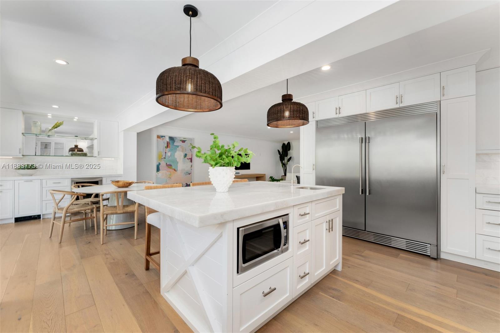 A beautifully appointed waterfront home in the gated community of Gables by the Sea, this 4-bed, 4.5-bath plus den residence spans 4,467 sq ft on a 12,366 sq ft lot with direct ocean access, 50 ft seawall, and private dock. Interiors showcase a chef’s kitchen, custom wet bar, wine cellar, and spacious living areas designed for entertaining. The expansive primary suite offers walk-in his and hers closets and a private terrace. Enjoy alfresco living on the covered patio with saltwater pool. With 3 upstairs bedrooms featuring ensuite baths, 1 downstairs, and a den, this home blends coastal elegance with modern luxury in one of South Florida’s most desirable neighborhoods.