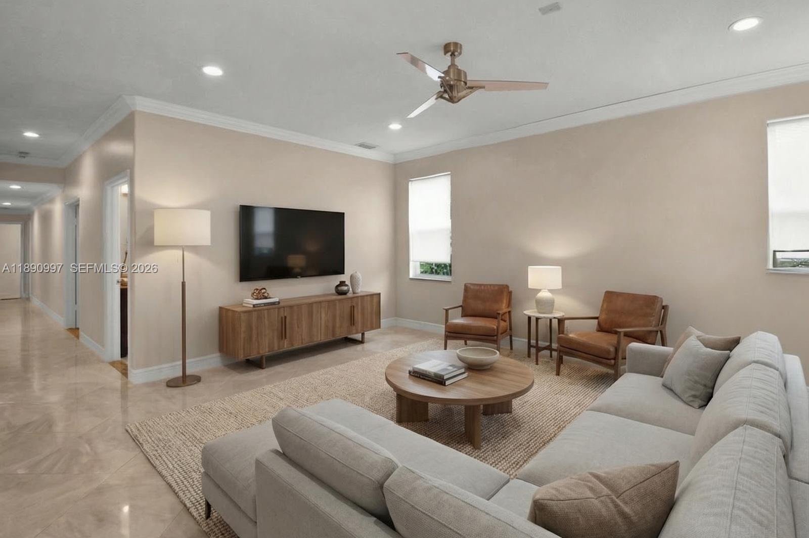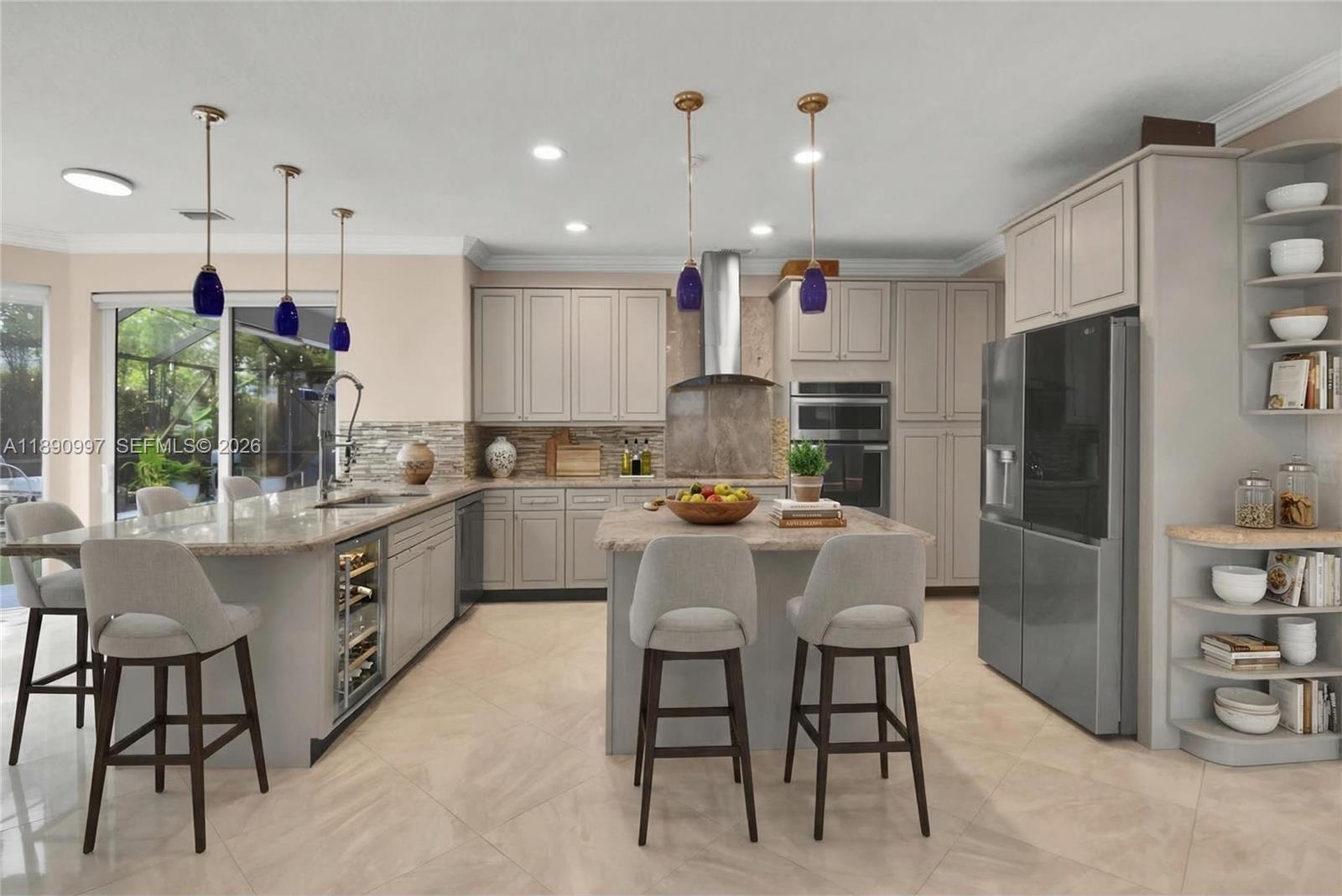 Beautiful one-story residence located in the gated community of The Lakes in Weston, offering approx. 3,000SF of living space on an ample 11,299SF lot with plenty of room to add a pool. This 5-bed, 4-bath property features a great split floor plan designed for comfort and privacy. The property features porcelain flooring in the social areas, tile flooring in all bedrooms, full impact windows and doors, fully updated bathrooms, and an updated kitchen with beautiful views of the patio and plenty of storage. The oversized primary suite features his and hers walk-in closets and a fully updated bathroom with dual vanities, rainfall shower, and a tub. The additional bedrooms are located on the opposite wing and include one large ensuite bedroom, while 2 spacious bedrooms share a bathroom with dual vanities. Another bedroom, currently used as an office, is located next to the cabana bathroom. The outdoor area offers excellent potential to create your own backyard oasis. The existing screened patio can be easily expanded to maximize outdoor space and accommodate a large pool, summer kitchen, lounge area, and entertainment space, making it an ideal setting for outdoor living and entertainment. The property also includes 38 fully paid solar panels. Ideally located near Weston’s top-rated schools, parks, dining, shopping, and major highways, this property offers both comfort and convenience in one of Weston’s most desirable communities. Move-in ready!