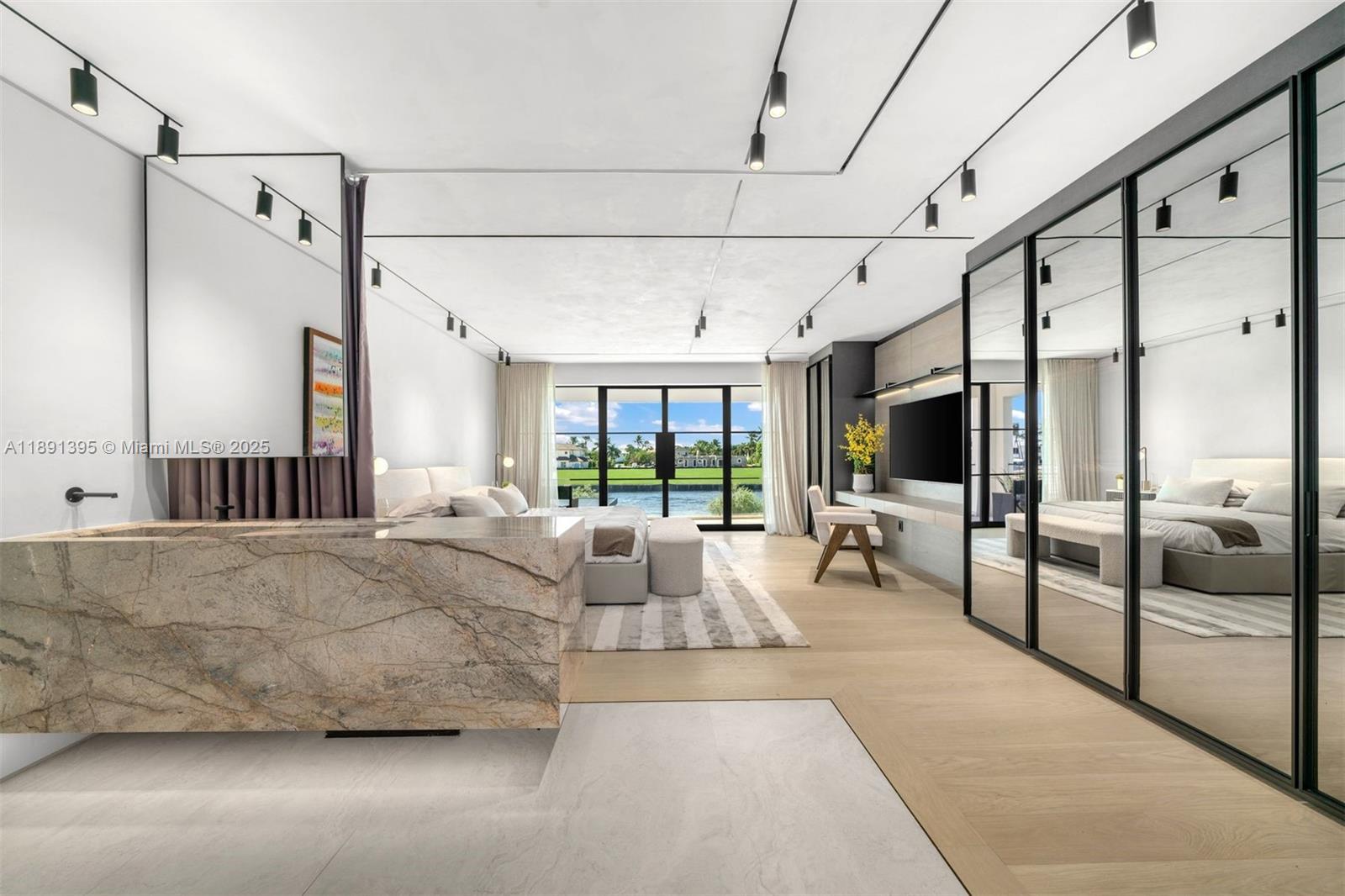 Welcome to Villa Riva, a modern luxury masterpiece in Boca Raton. This 10,000+ SF estate offers 6 beds, 6.5 baths, & 150 feet of prime Intracoastal water frontage, featuring custom designed furniture and the highest quality millwork and stone work. The villa boasts an expansive kitchen and adjoining family room w/ Brazilian Casablanca quartzite counters. A hidden butler's prep kitchen adds convenience for seamless entertaining. The primary suite is a private retreat w/ a stunning Belvedere quartzite bath & a boutique-style walk-in closet. Guest bedrooms boast Silver Root Italian marble & travertine finishes. Marmorino plaster walls create a modern Venetian ambiance, complemented by Tropic Gold quartzite in the foyer. Equipped w/ Josh AI & Crestron tech, enjoy the finest in luxury living.