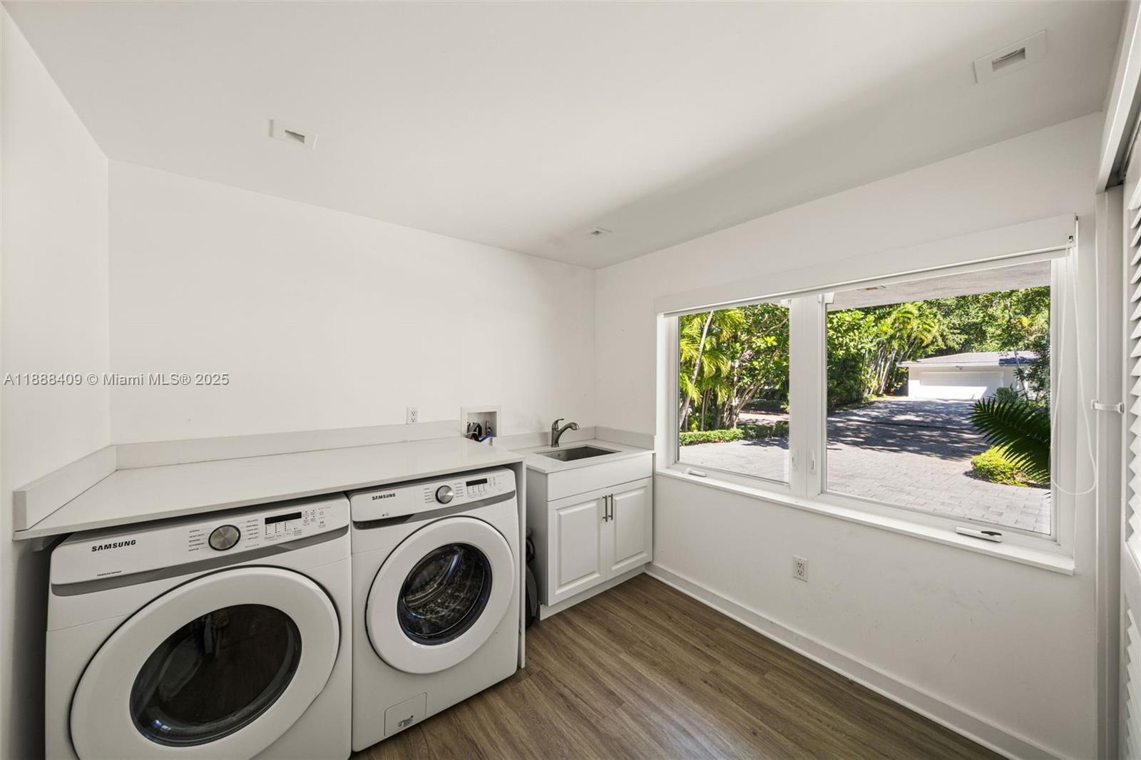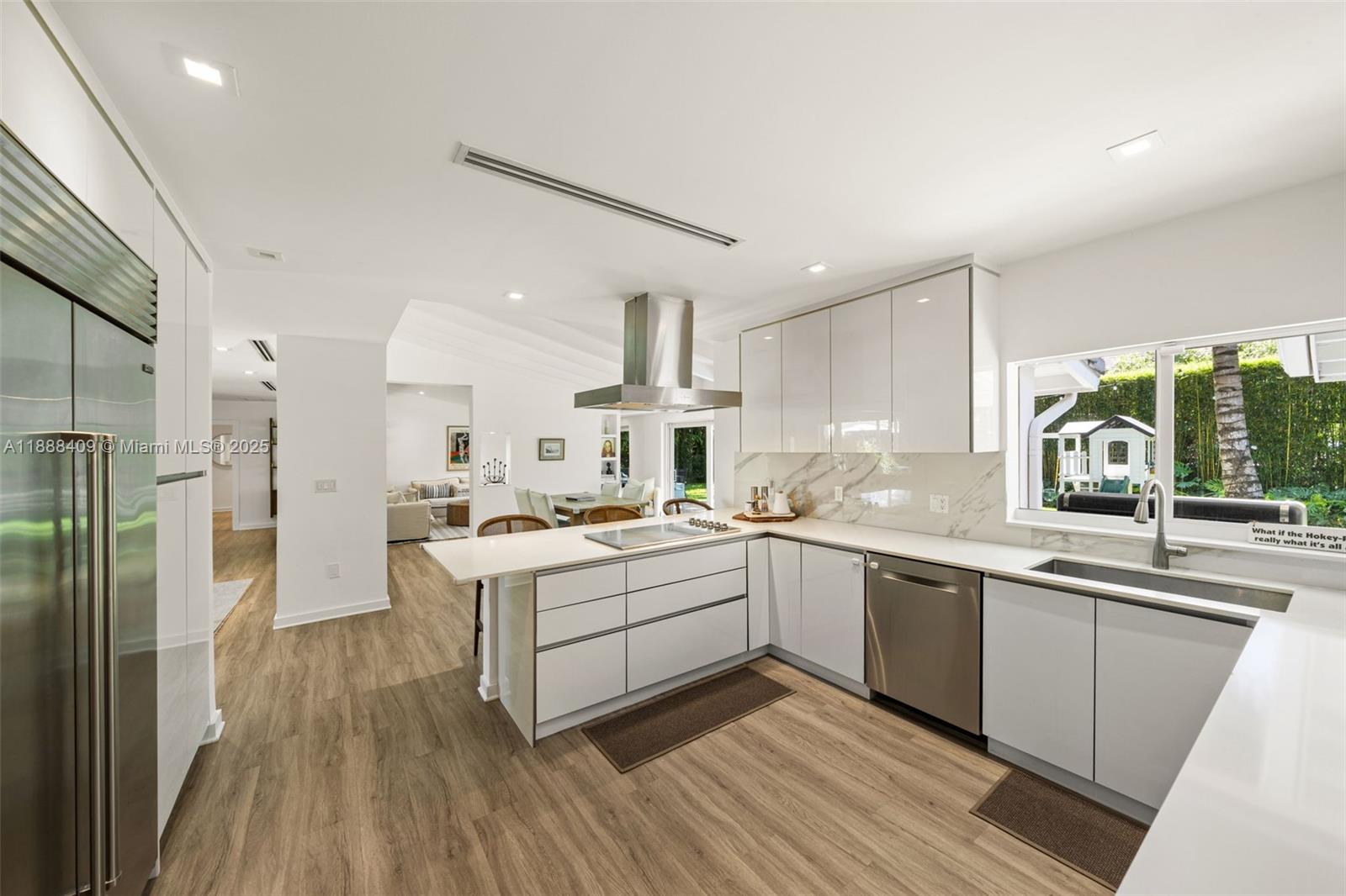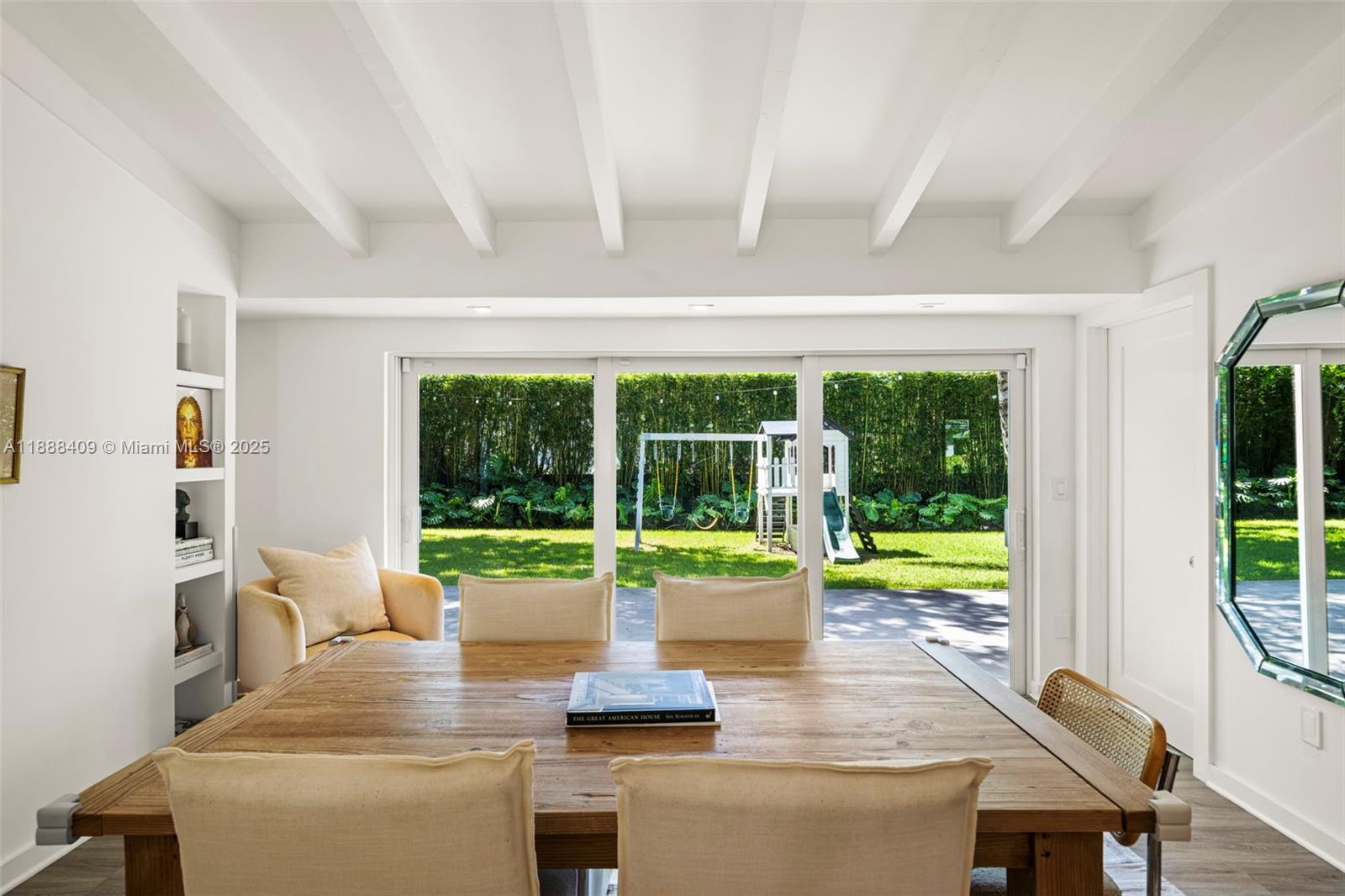 This residence has been beautifully reimagined with modern, artistic touches. Highlights include a newly added fourth bedroom, custom wallpaper, and window treatments designed by an artist, along with blinds throughout for a seamless finish. Built-in storage and seating add both style and functionality, while the expansive primary suite offers a dedicated office space. The home is equipped with a water filtration system, a generator ready, and an electric car charger, ensuring comfort and convenience for today’s lifestyle. Outdoors, approved plans and permits pave the way for a private oasis with lush landscaping, a future pool, and a cabana. A luxury swing set playground is also included in the sale, making this property as functional and family-friendly as it is stylish.