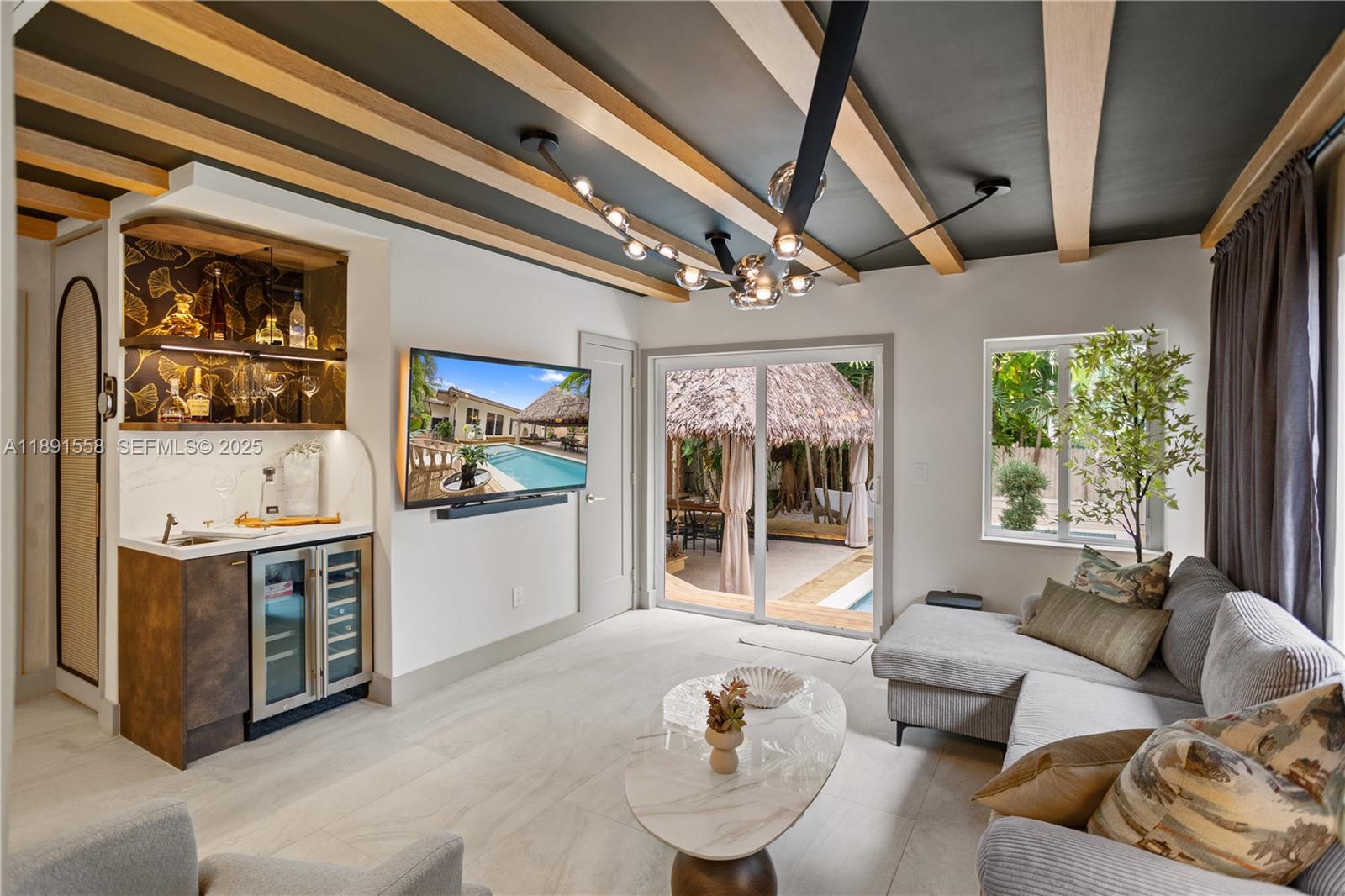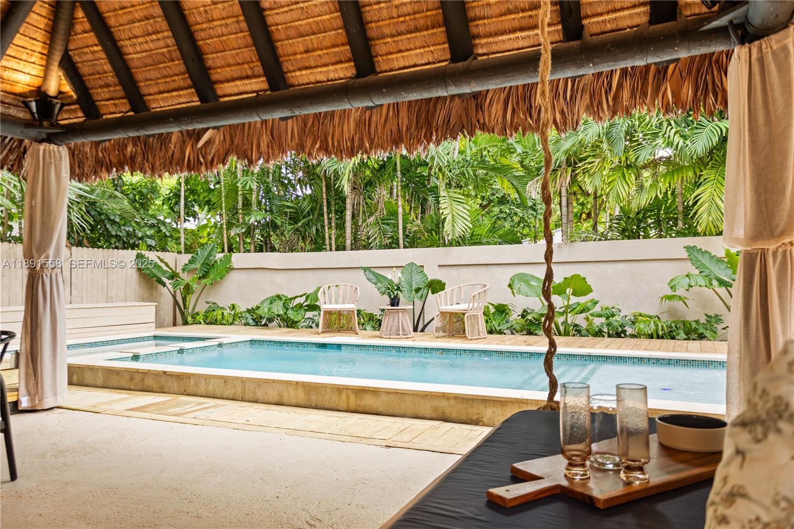 Escape the fast pace of Miami in this Bali-inspired tropical retreat located in Shorecrest, just minutes from Miami Shores and North Bayshore Park. Featuring a new pool with deck, in-ground jacuzzi, outdoor cold plunge & soaking tub under the palms, Tiki lounge area, and zoning for short-term rentals. This fully renovated 3-bed, 3-bath home features one suite with a private entrance and bathroom, plus a spacious den that can easily be converted into another bedroom. The property has all-new plumbing, electrical, ceilings, and walls, as well as impact doors and windows — all with closed permits. Enjoy low Miami-Dade taxes, serene outdoor spaces, and the perfect blend of design, comfort, and investment potential. Furniture and decoration shown in photos available separately.
