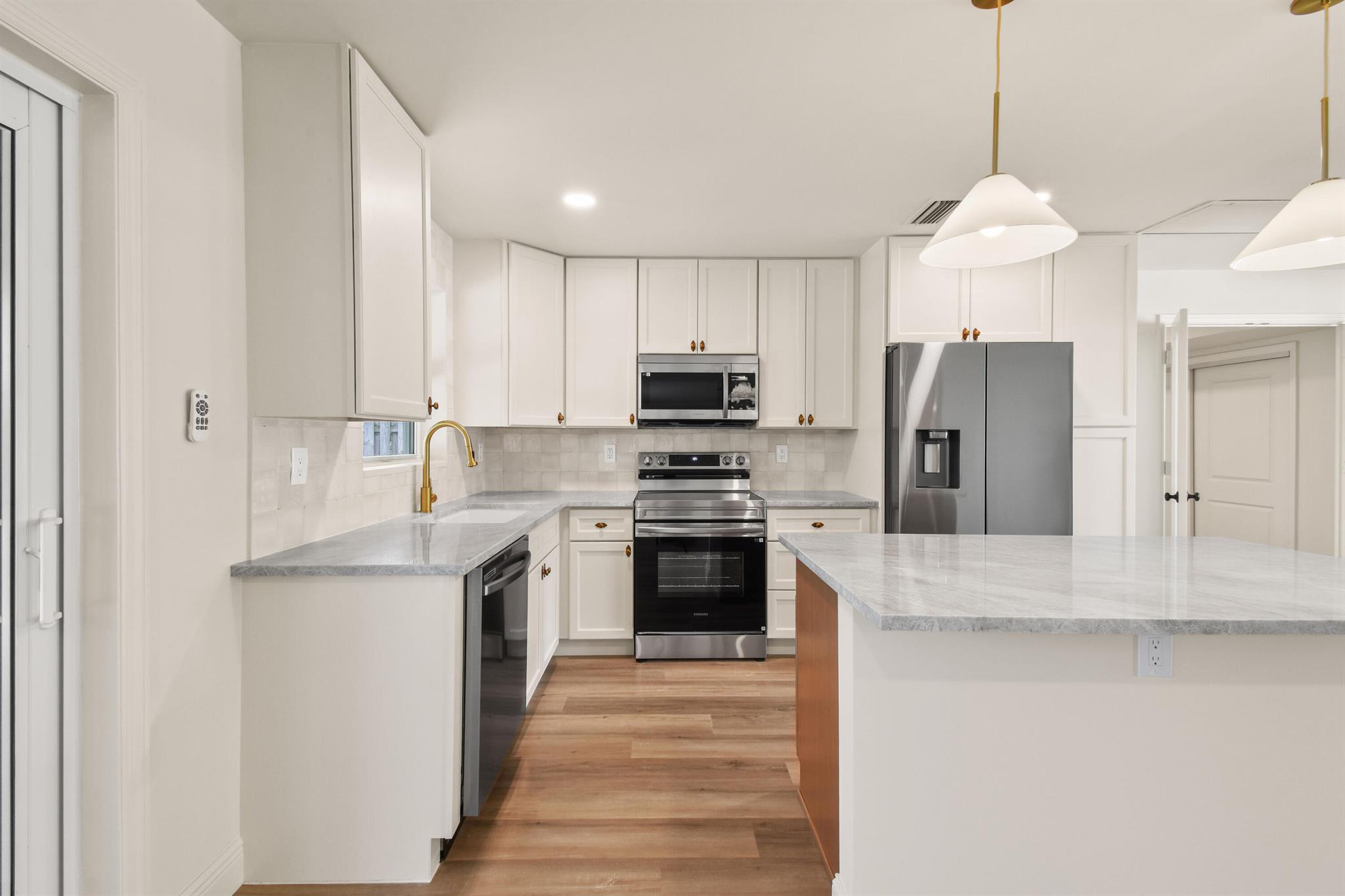 Thoughtfully designed and expertly curated fully remodeled 4-bedroom, 2-bath pool home in one of Palm Beach Gardens' most desirable NO HOA communities. Easy to show and move-in ready! Features a brand-new shingle roof (2025), PGT impact windows and doors (2025), tankless water heater, new sod, irrigation, and landscaping. Inside offers new waterproof LVP flooring, designer finishes, West Elm lighting, custom trim, and a stunning arched dry bar with Taj Mahal counters and white oak cabinetry. The kitchen features Samsung stainless appliances, Taj Mahal tops, a 5-ft island, and all-wood soft-close cabinetry. Includes a LARGE LAUNDRY ROOM with two quartz counter, resurfaced pool, screened patio, and fenced yard. Exceptional location near PGA Blvd, parks, golf, dining, shopping, and beaches.