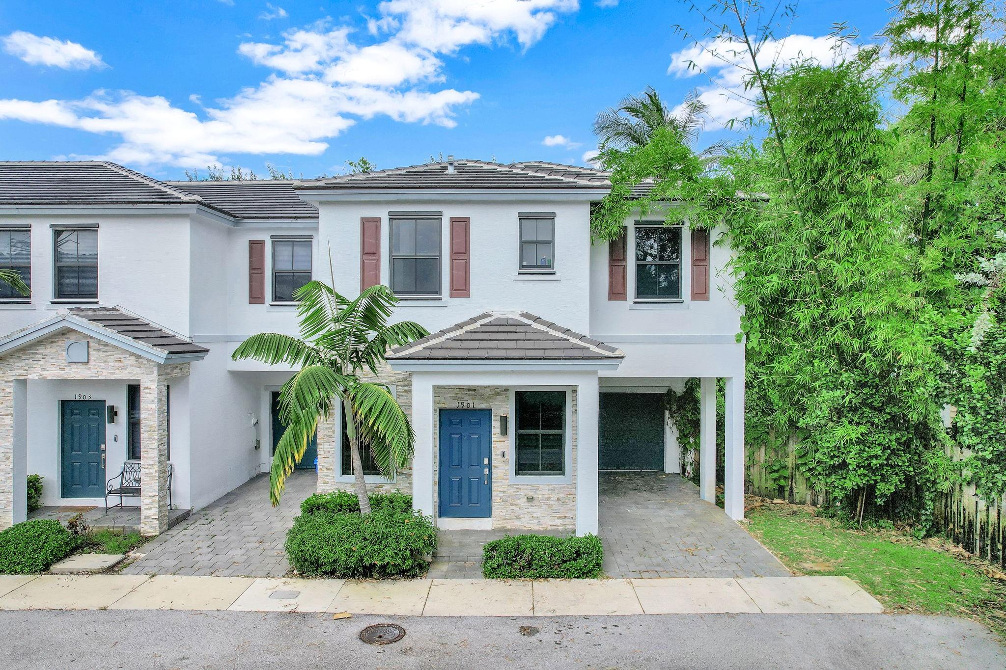 Built in 2022, this end-unit townhome radiates modern style and sophistication. Featuring sleek lines, extra high ceilings, and elegant tile flooring throughout—including the stairs—this home perfectly blends design and comfort. The open kitchen offers luxurious quartz countertops, contemporary cabinetry, and a bright, airy layout ideal for entertaining. The enormous master suite includes abundant closet space and a spa-inspired bathroom with a massive glass-enclosed shower. Enjoy a tranquil, private fenced backyard—perfect for relaxing or entertaining. Super convenient with just a 2-minute drive to I-95, yet peacefully quiet with no road noise, this clean and well-maintained home sits in a gated community on a private cul-de-sac and is priced to sell fast!