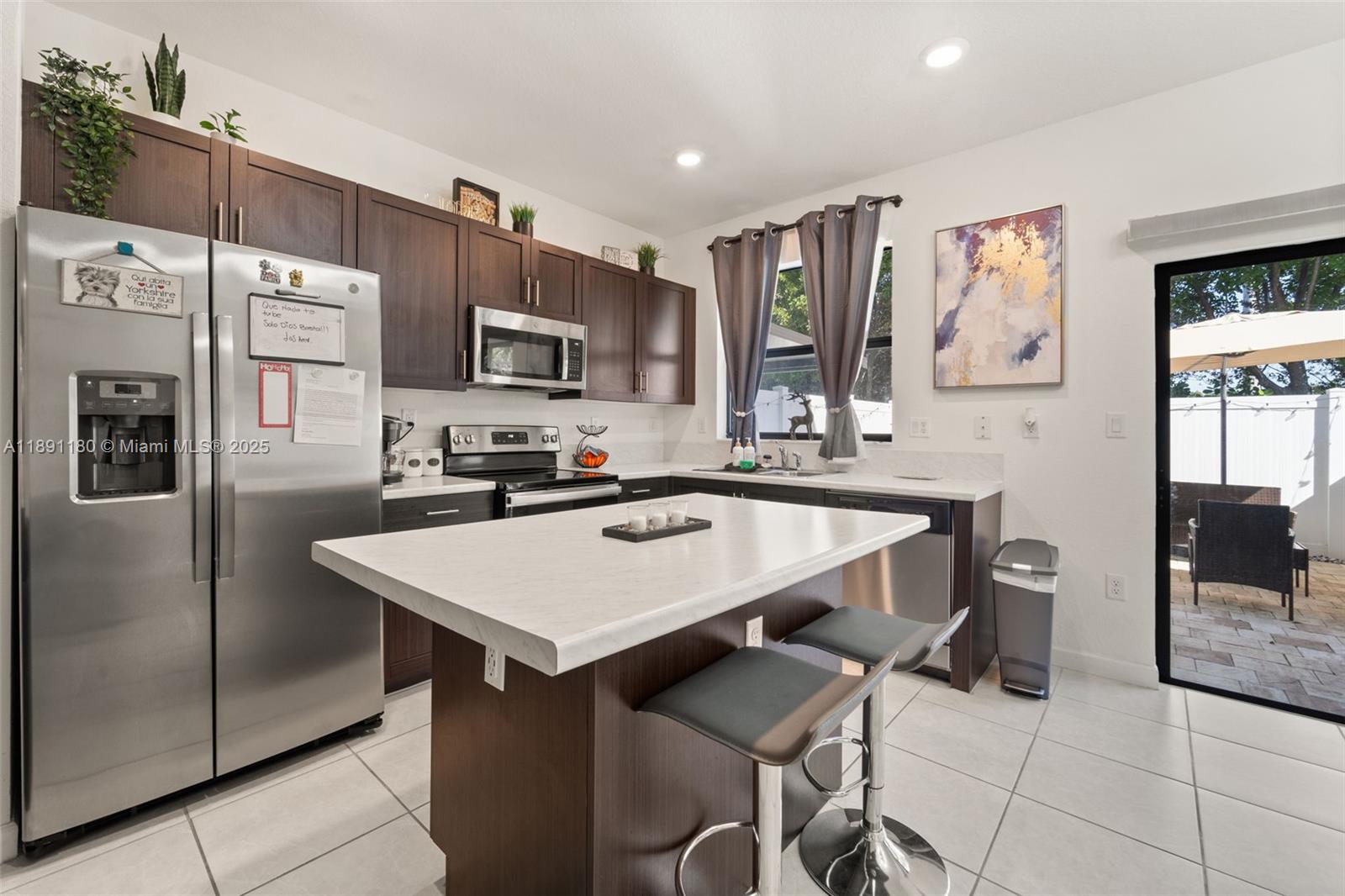 Stunning 3-bed, 3-bath townhouse in the desirable gated community of Aquabella, Hialeah! This home features a bedroom and bath on the first floor, an open-concept layout with a spacious kitchen, upgraded wood cabinets, stainless steel appliances, and pantry. Tile flooring downstairs and elegant laminated floors upstairs. The large primary suite offers a walk-in closet and private en-suite bath. Enjoy a landscaped patio perfect for entertaining. Resort-style amenities include 2 clubhouses, pools, gym, playground, and green spaces. Conveniently located near major highways and top schools. Property is currently rented through March 2026—great investment opportunity! HOA requires at least one applicant with a 680+ credit score. Sellers offer a $2k credit towards closing costs to the buyers!!