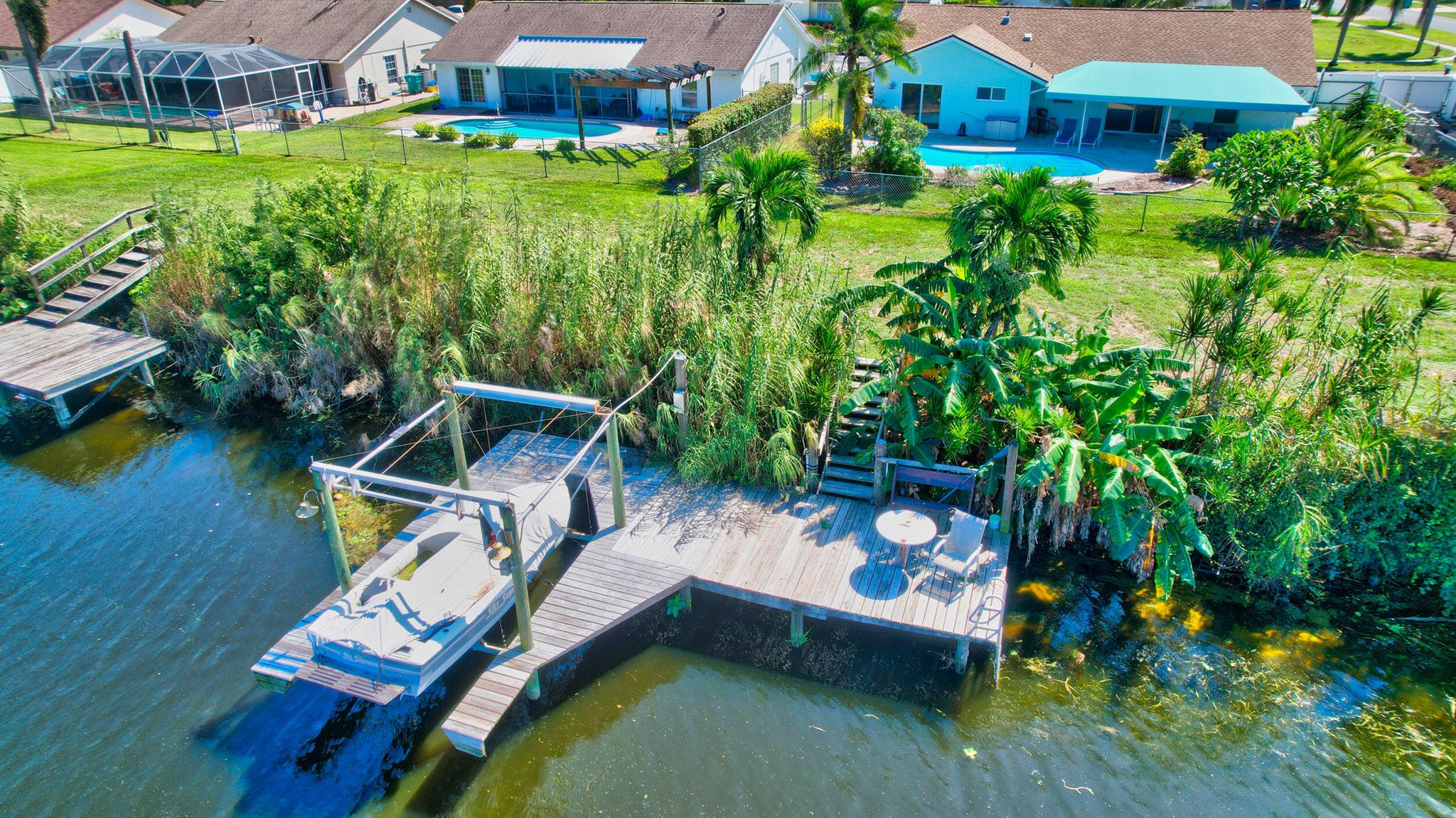 Waterfront Oasis with Dock, Pool & Designer Upgrades! Experience the ultimate Florida lifestyle in this stunning waterfront home featuring a private dock with lift, perfect for boating, jet skiing, and kayaking. Enjoy sunrises and sunsets from your own backyard -- with no rear neighbors across the canal, you'll love the privacy and peaceful views. This beautifully upgraded home boasts a newer roof, impact windows and doors, and a fully refinished saltwater pool. Step inside to a brand-new designer kitchen with stainless steel appliances, double oven, and elegant finishes. Bathrooms have been fully remodeled with modern flair. The spacious, fully fenced yard includes 2 concrete pads, ideal for storing your boat trailer, RV, or extra vehicles. Whole-house water filtration system included!