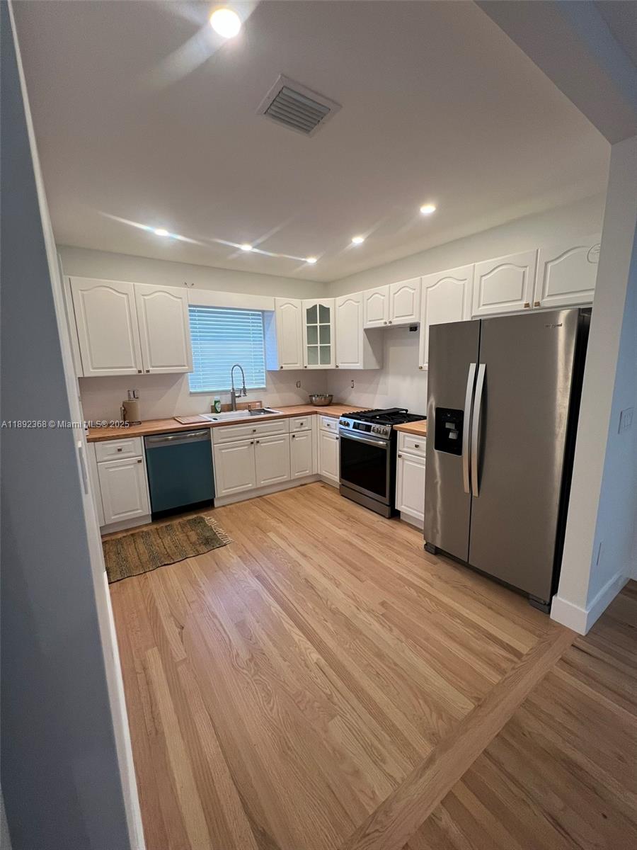 Modern Style 3 bedroom 1 bathroom house with full wood floors thought out the home. Kitchen remodeled with new appliances and butcher top countertop. Bathroom completely remolded with new plumbing. A must see