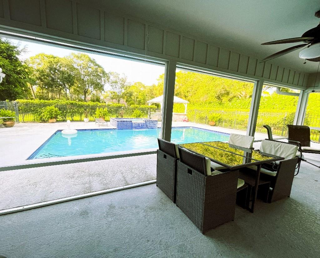 This beautiful family home, sits almost centered on its lush 1+ acre lot, creating a grand estate feel as soon as you pull into the long, circular driveway, impressive backyard with an inviting pool with large jacuzzi and more.