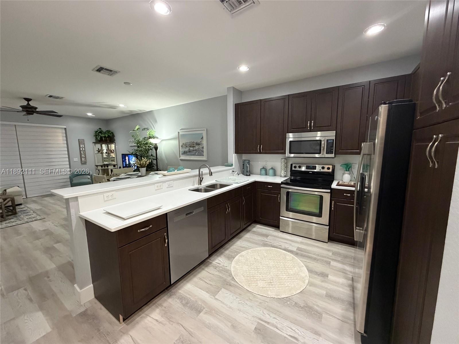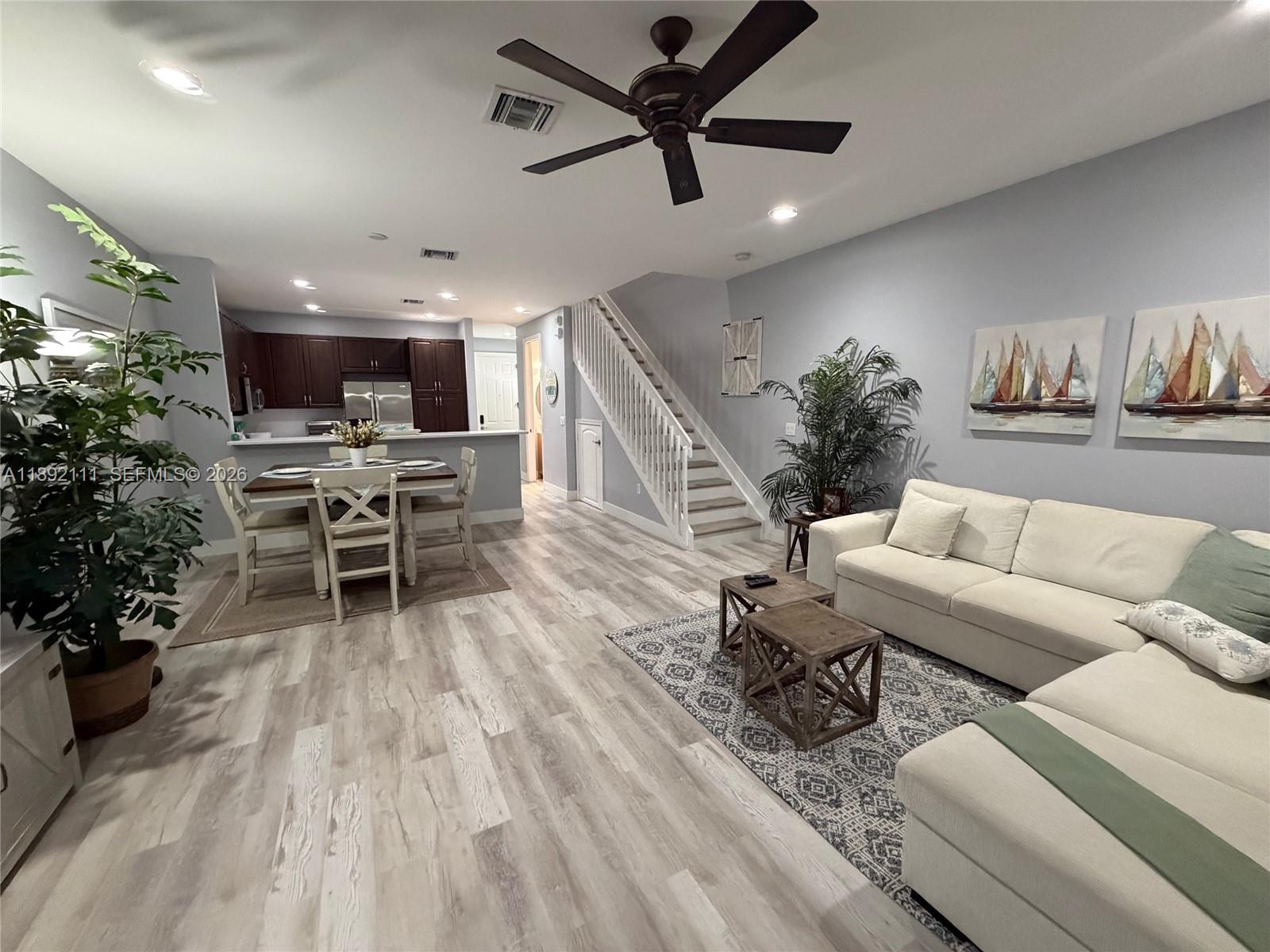 Substantially Remolded and Ready to Move In! A hidden gem in the highly desirable SADDLE BRIDGE neighborhood. Beautiful lakeview with a walking path around the lake. HURRICANE IMPACT WINDOWS/DOORS! This home boasts new LVP flooring, freshly painted throughout including all doors, new baseboards (2023). New recessed lighting throughout. Fans in all bedrooms and living room. New bright white quartz countertops and backsplash. Large kitchen with deep cabinets provide plenty of storage. Completely upgraded 1/2 bath downstairs. Washer/Dryer (2024) on 2nd floor for convenience. Split floor plan upstairs with a spacious master bedroom with a walk-in closet. Master Bathroom has dual sinks and a separate toilet room. Equipped with an alarm system, and a Ring camera door bell. Electrical panel has been pre-wired for an electric vehicle.