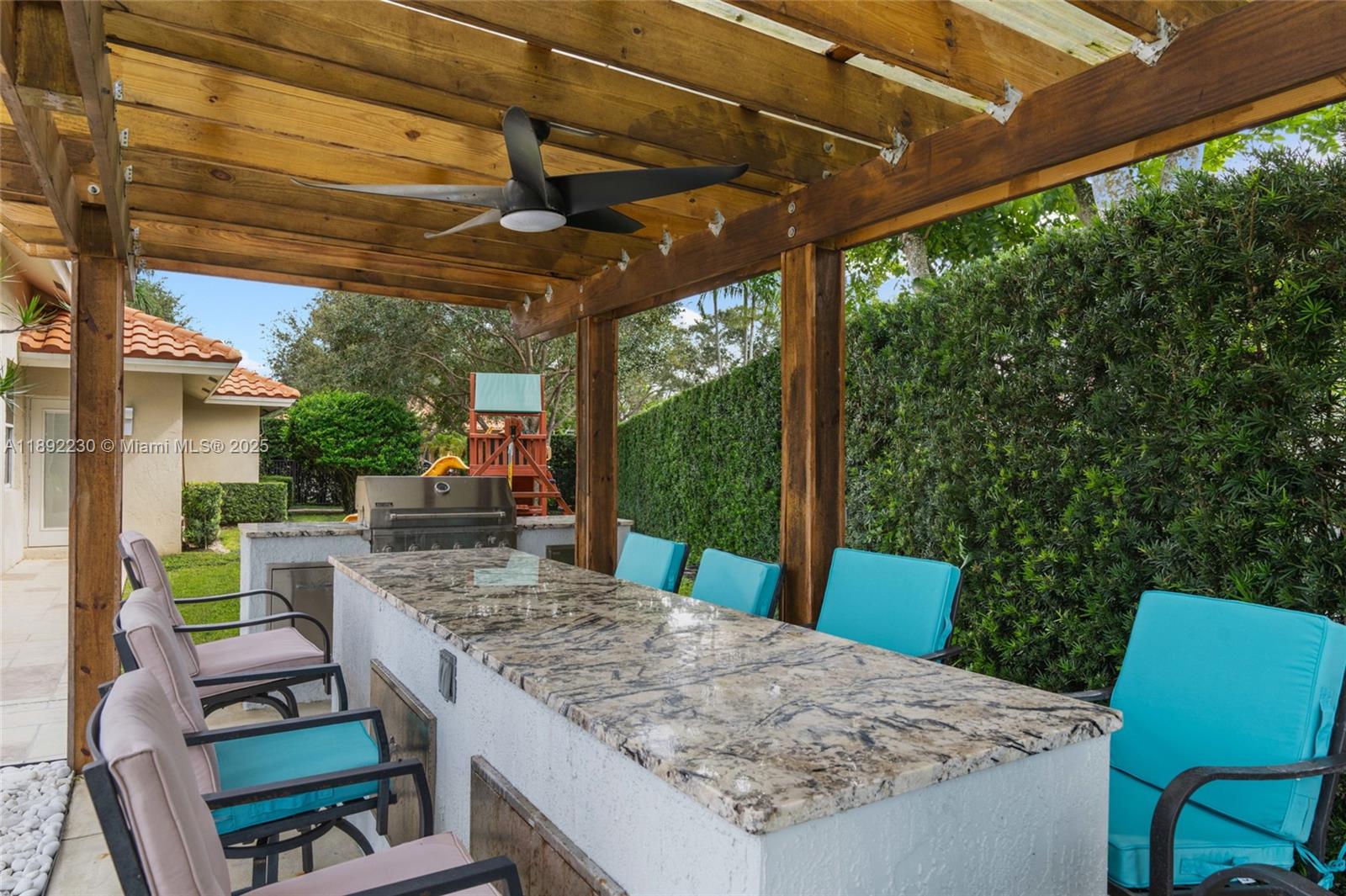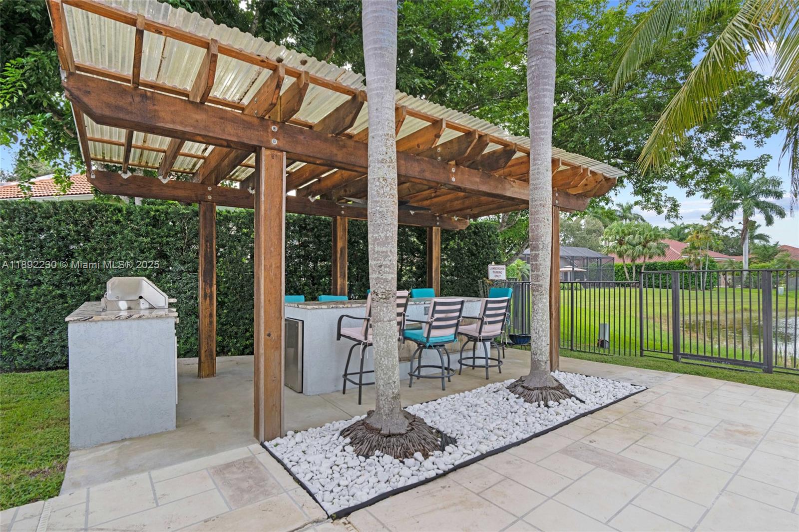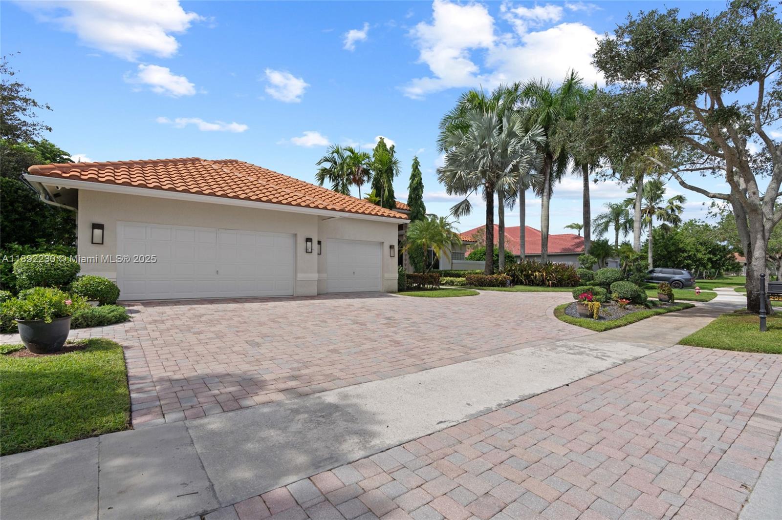 Welcome to this spectacular 5 bedroom 5 bathroom estate perfectly situated on one of the most desirable ½-acre lakefront lots in Weston Hills Country Club! This elegant residence showcases captivating sunset views and exceptional curb appeal with a brick-paved circular driveway, lush landscaping, and a private cul-de-sac setting. Truly enjoy South Florida living with a sparkling pool w/ new heater, summer kitchen + lake views! Updated roof! Inside, soaring volume ceilings, an open modern floor plan, and high-end finishes create a sense of space and sophistication. The gourmet kitchen flows effortlessly into bright living areas ideal for entertaining or family gatherings. With its combination of timeless design and unparalleled location, this home offers the ultimate Weston Hills lifestyle.