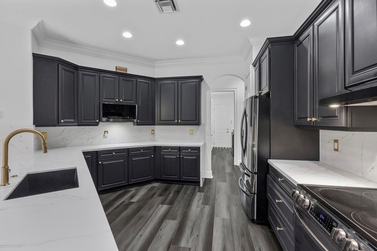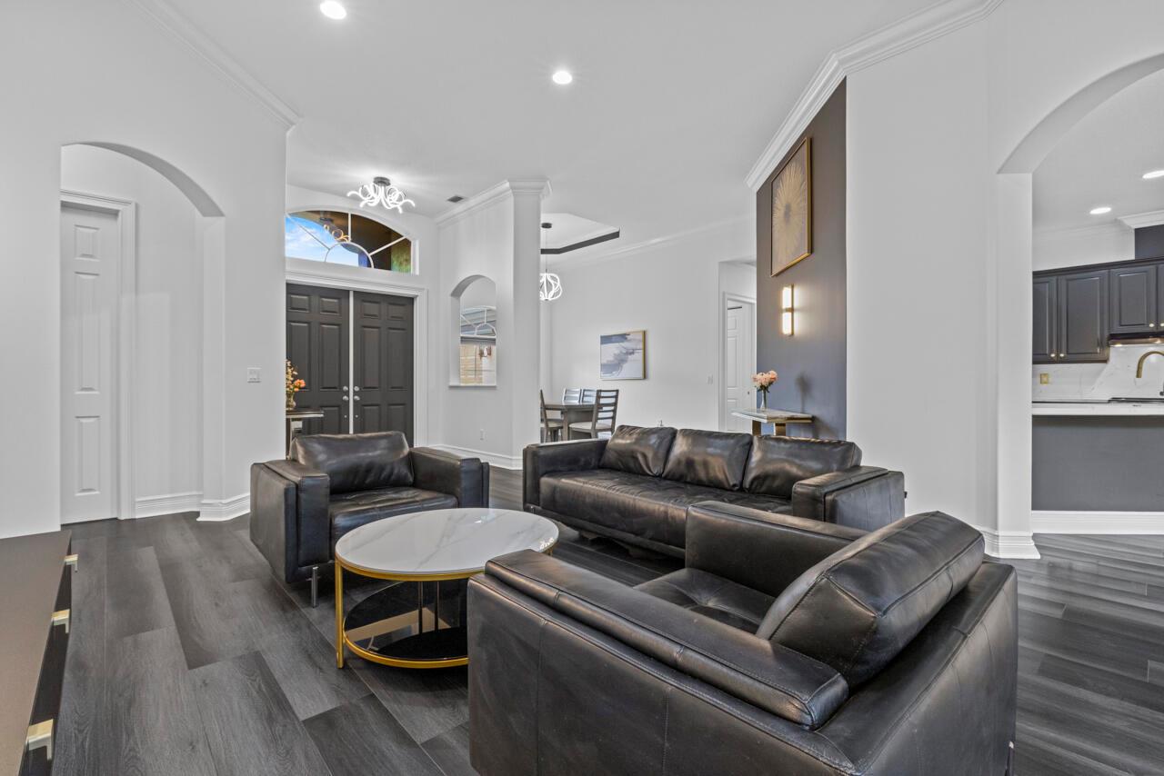 Sellers Motivated! Move in ready pool home w/impact glass windows & doors, Situated on over a 1/2 acre lot. Terrific floor plan boasting volume ceilings, 4 bedrooms, plus den, 4 bathrooms & oversized 3 car garage. Primary suite has 2 walk in closets, walk in shower, tub & dual vanities. Beautiful kitchen has upgraded cabinets, Quartz countertops & new appliances. The kitchen opens up to family room/breakfast nook. Separate formal dining room & formal living room & laundry room. Private fenced in backyard, lush landscape, inviting pool & covered back patio & screened in patio. Wildwood Estates POA is a private road of 11 homes. w/low fees: includes lawn care. Set back from city traffic, but very close to 95. Featuring Hunter Douglas blinds, new LVP & all new lighting/fans throughout.