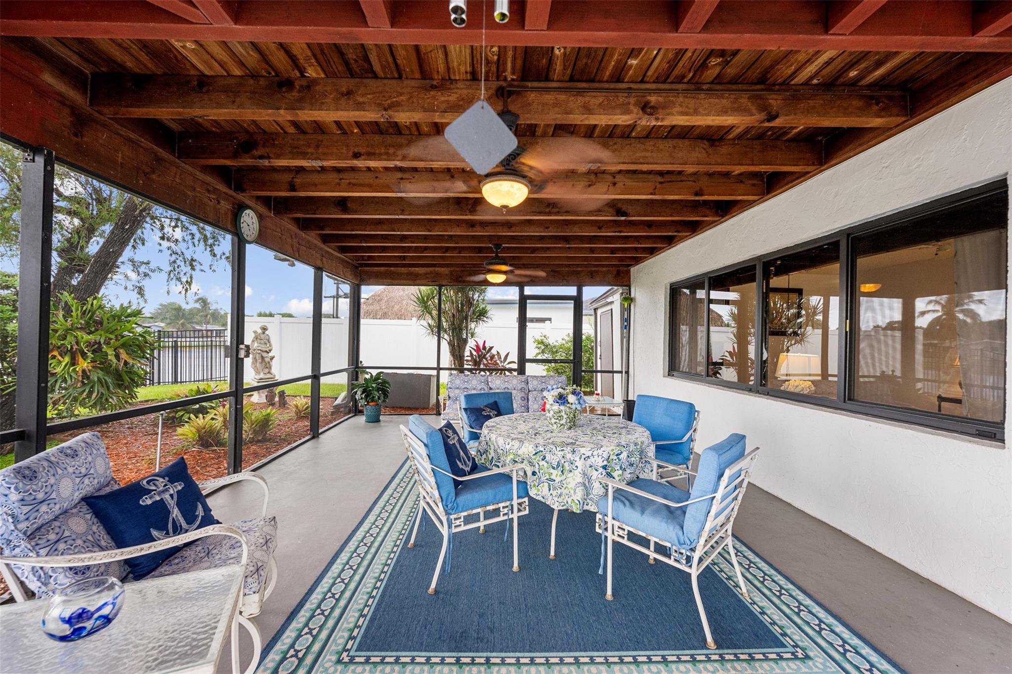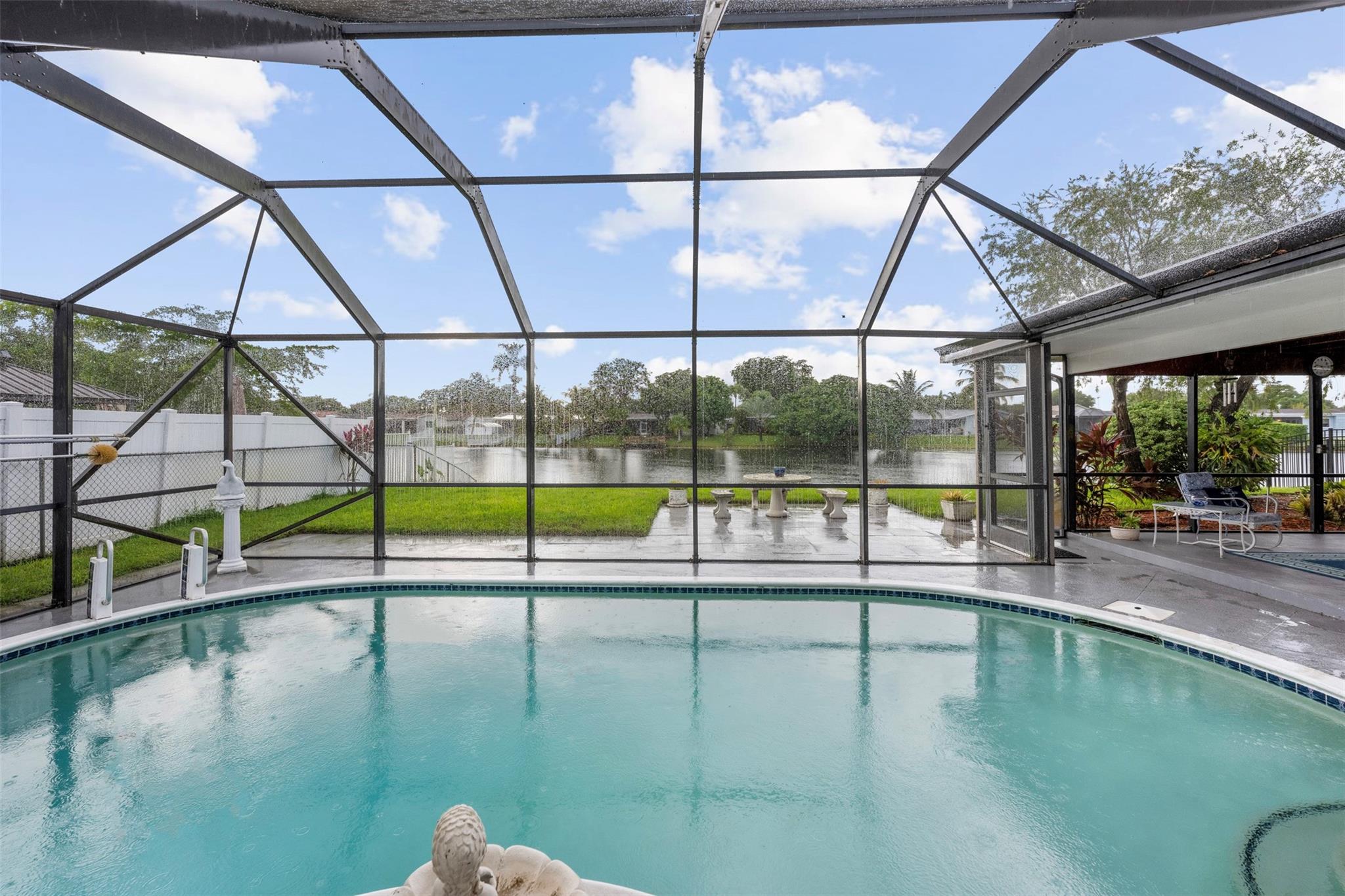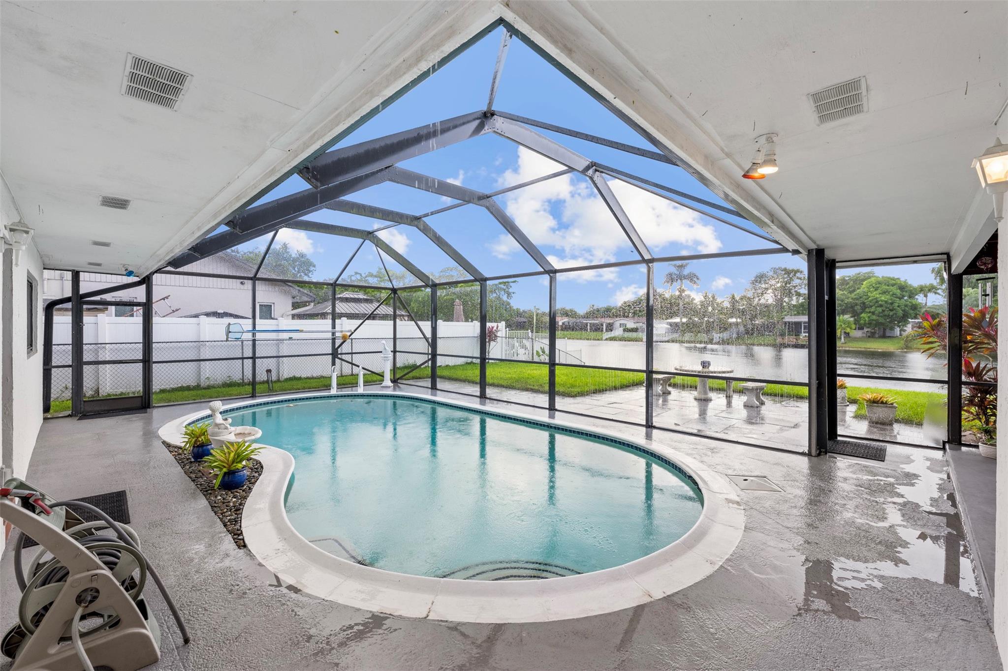 The care shows in every detail with just ONE proud owner on this oversized 11,000 sq ft lot. Make this your private oasis with the lush landscaping, sparkling pool, & lake views. The kitchen was remodeled in 2023. BONUS: gas stove! Impact windows, A/C, water heater, & tiled roof all updated in 2017, and the flat patio roof was redone in 2023 for added peace of mind. 2-car garage, freshly painted W/central A/C, flexibility for a workout area, workshop, etc. Other perks: upgraded electrical panel, renovated shed, cleaned underground plumbing, and PVC water pipes. Generous outdoor space, this home could easily be converted into 3 or 4 bedrooms, giving you room to grow. Near top-rated schools, this rare gem blends comfort, style, and versatility—come see the pride of ownership for yourself!