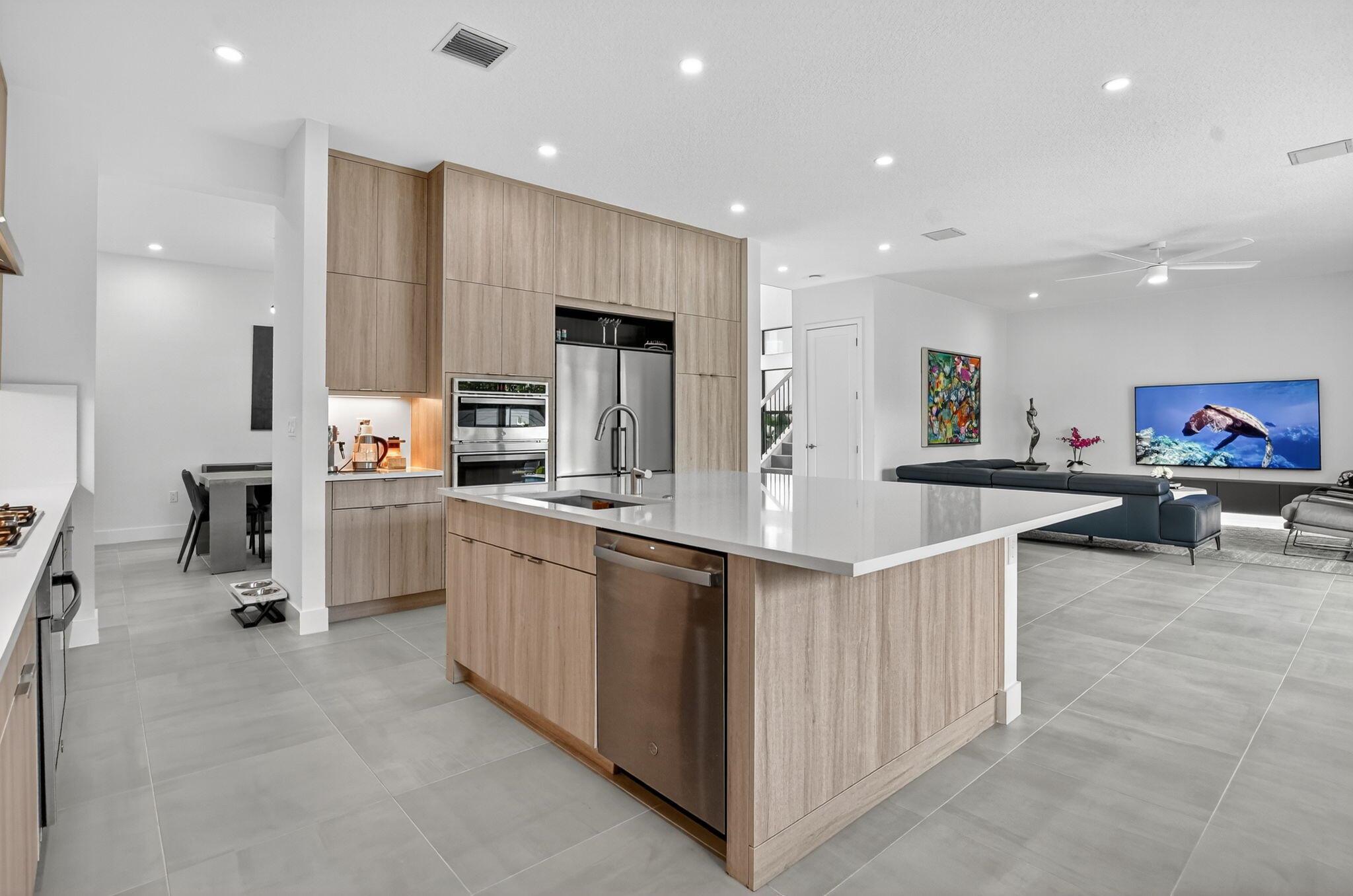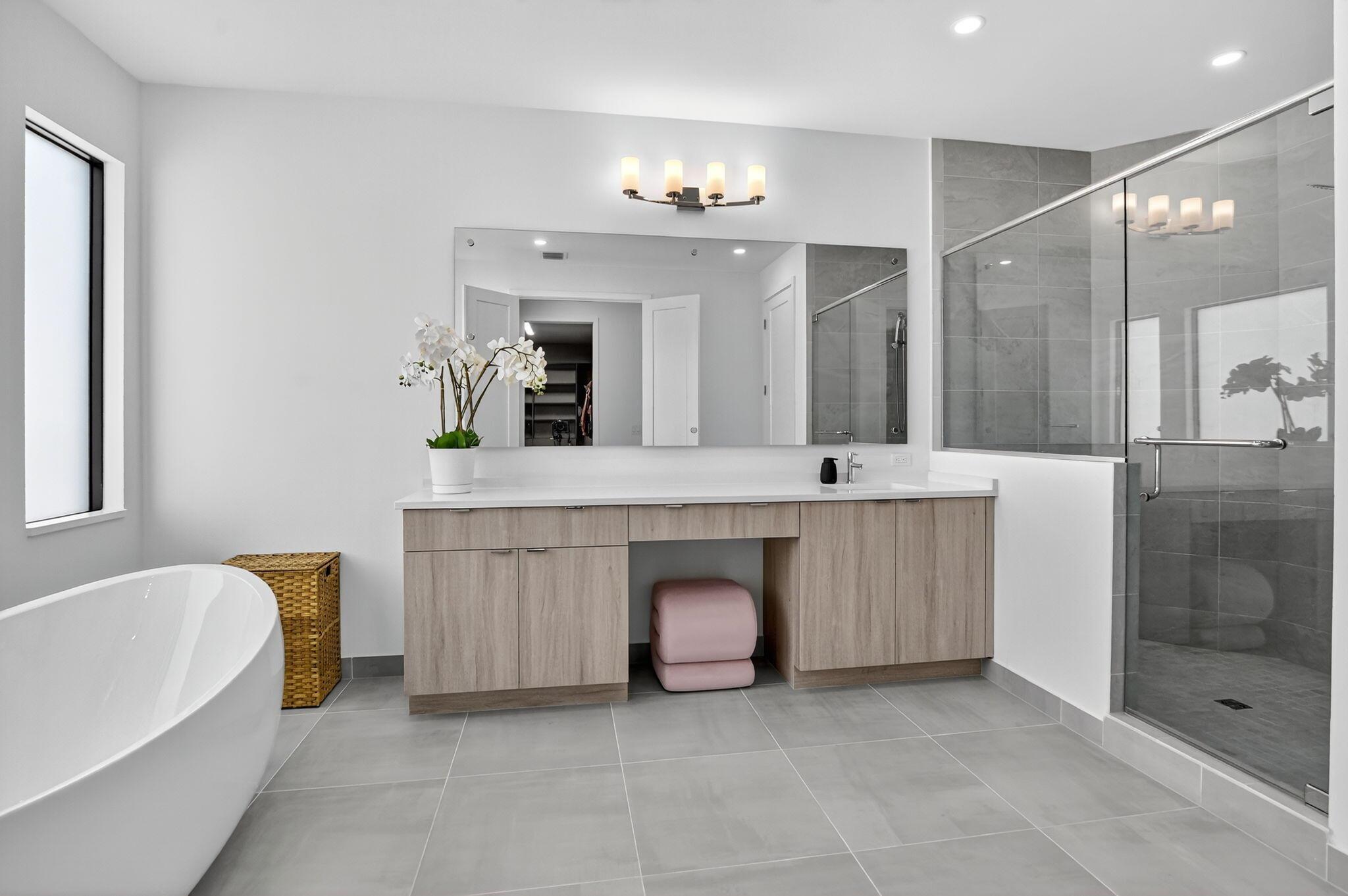 Step into tropical serenity the moment you walk through the door to your own private pool and your view is a secluded backyard surrounded by lush greenery. This Polynesian model blends modern minimalism with calm, airy sophistication. Upstairs showcases upgraded engineered hardwood and sleek mini high-hat lighting. The primary suite features dual bathrooms and two closets, including an oversized walk-in worthy of a dream wardrobe. A stub-out awaits your future summer kitchen. Designed for entertaining downstairs and relaxing upstairs, this home defines balance. Lotus Palm offers resort-style living with pickleball, tennis, fitness center, restaurant, outdoor bar, splash zone, and year-round events. Living in Lotus Palm is like living in a resort year round, get ready to live the lifestyle