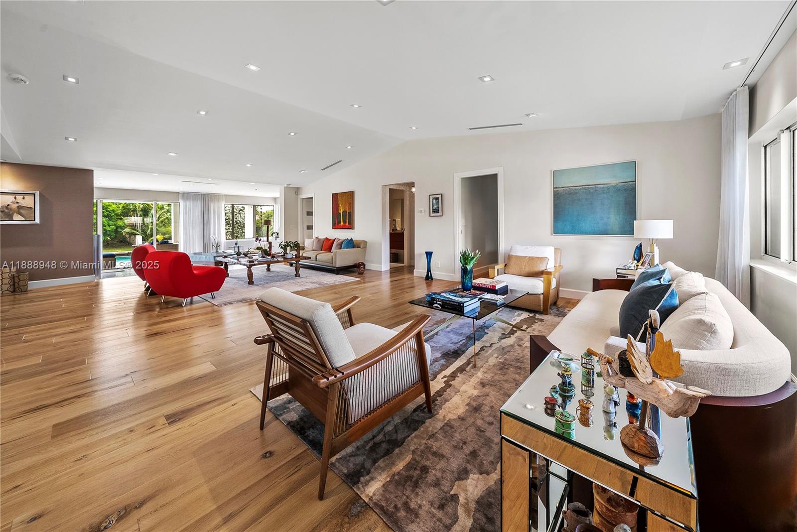 Miami Shores luxury waterfront home with 100-ft of protected waters, 38-ft Ipe dock, and new seawall - moments from the open bay, ideal for boaters! Fully renovated and upgraded with modern features, this 4-bed 4.5-bath home has expansive open living spaces, vaulted ceilings, impact windows and doors, Scavolini kitchen, alarm and music system, natural gas, and elegant entry foyer with floating staircase. Upstairs, large primary suite with a spa-like bath, oversized walk-in shower, private water closet with bidet, and ample storage. The large backyard with an infinity-edge pool and spacious covered patio are perfect for enjoying life on the water. Attached 2-car garage completes this property. Exclusive location in this sought-after Miami Shores community.