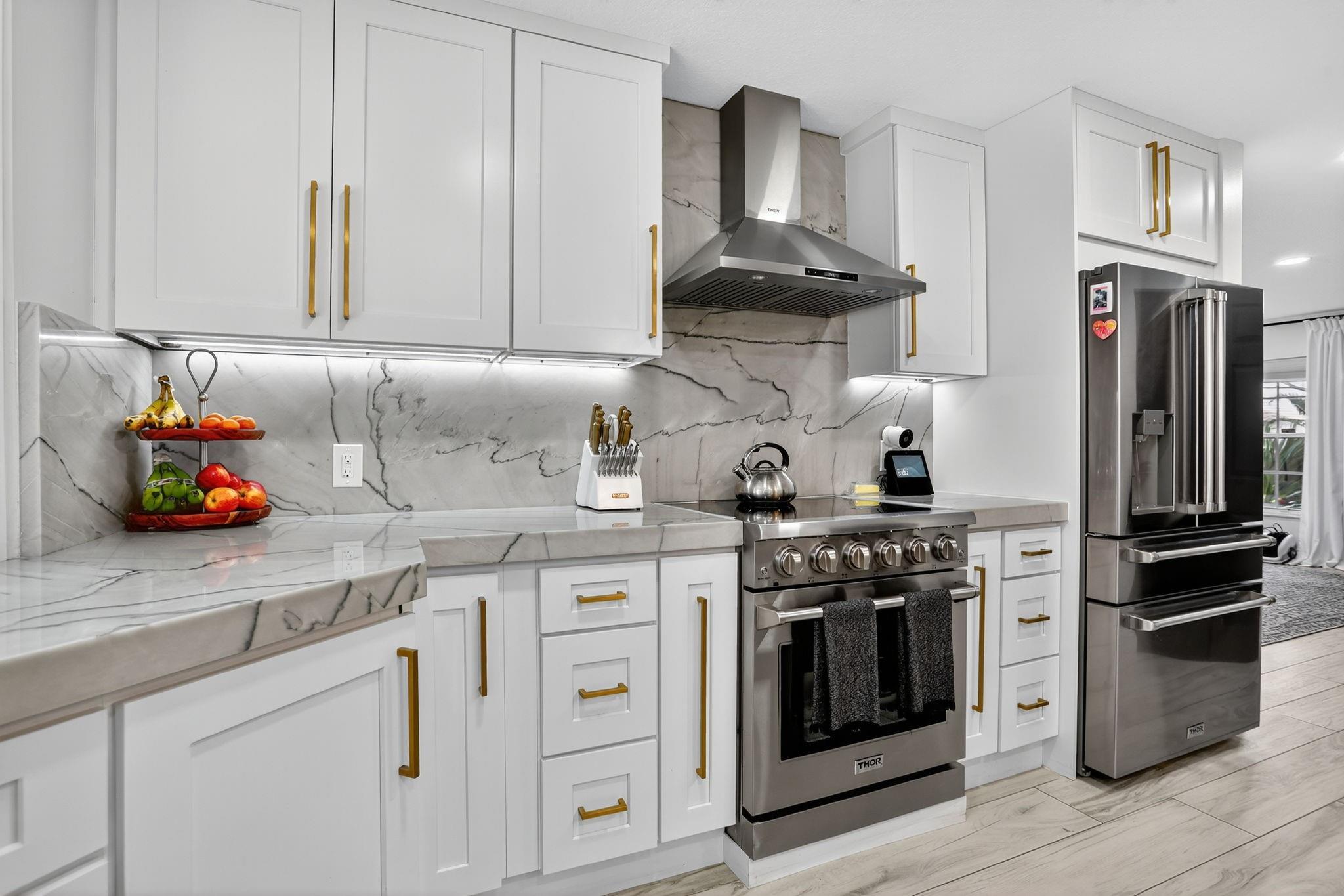 Discover this beautifully over 200k renovated 4-bedroom, 2.5-bath home in one of Boca Raton’s most desirable gated communities. Designed with comfort and sophistication in mind, it features a brand-new roof and driveway, a bright open layout, and elegant finishes throughout. The gourmet kitchen showcases quartzite natural stone countertops, custom cabinetry, and a stylish coffee bar—perfect for entertaining. The spacious primary suite offers a spa-inspired bath with double vanities and designer details. Step outside to your private backyard oasis with a newly plastered pool and covered patio ideal for relaxing or hosting guests. Complete with a 2-car garage and located near top-rated schools, shopping, and dining—this home truly embodies Boca Raton living at its finest.