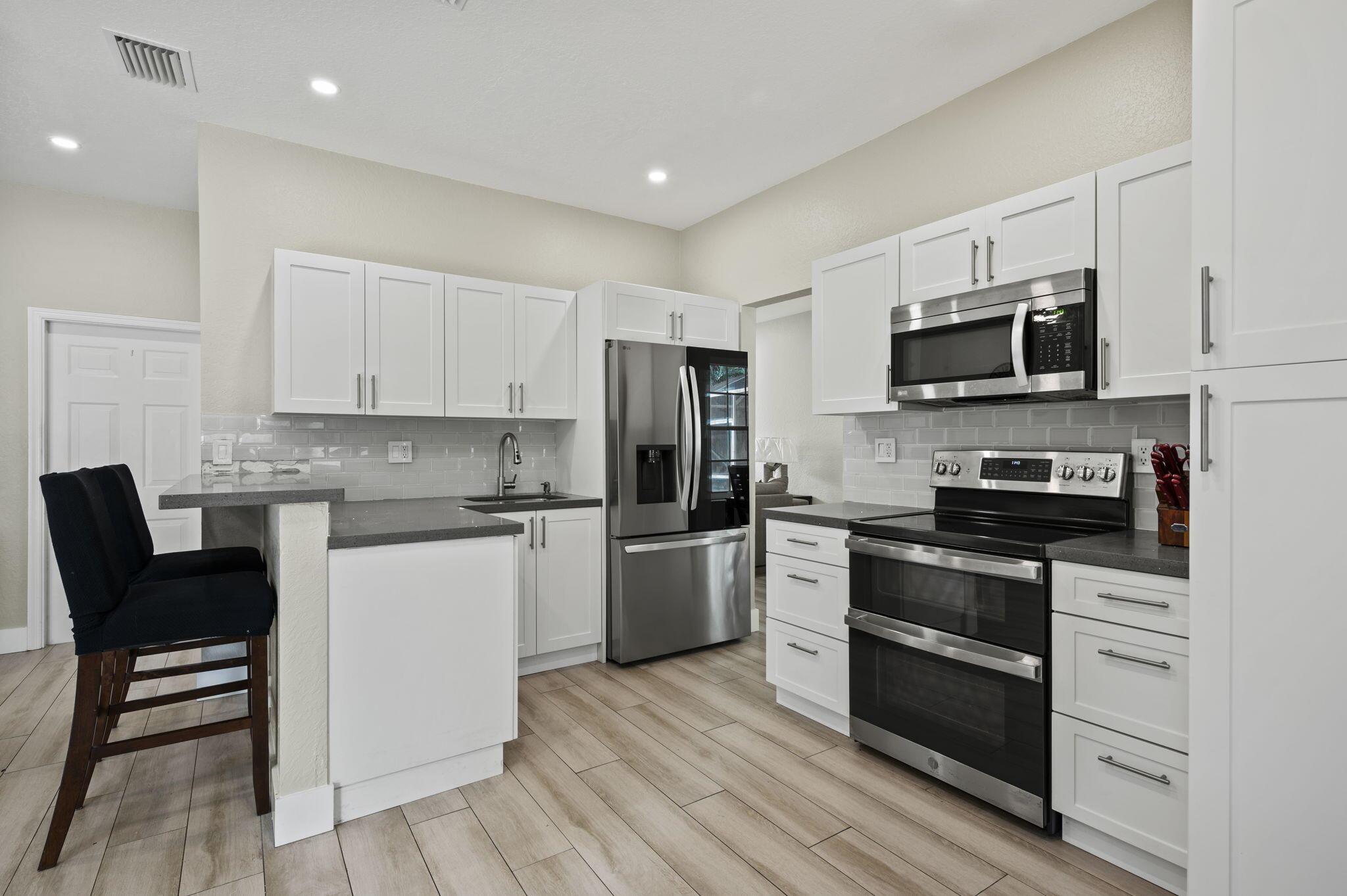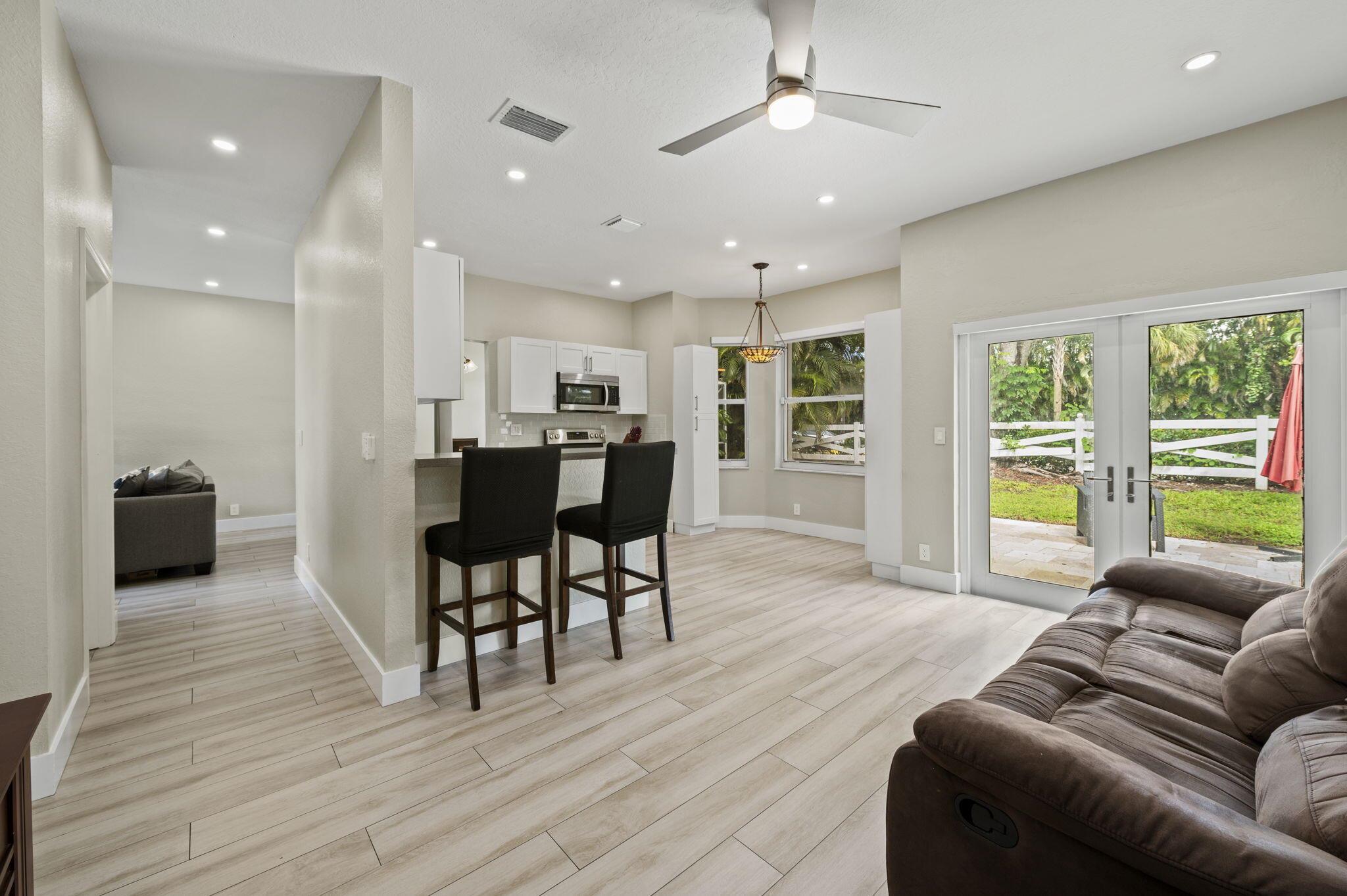Brand new barrel tile roof completed August 2025! As a master general contractor, the owner has meticulously and expertly renovated and upgraded this home with amazing state of the art smart features. This 3 bed 2.1 bath home located on a quiet cut-de-sac features a brand new built in summer kitchen & hurricane impact French Doors leading to your generous open patio and complete accordion shutters on the outside of the home. Inside this property is completely updated and upgraded with smart recessed Lutron LED lighting & a nest thermostat. The first floor features new imported tile floors, and new modern half bath ample kitchen storage and New Fridge. The Main suite feature his & her custom built closets and a beautifully designed his/her double shower with dual multi-jet shower heads!