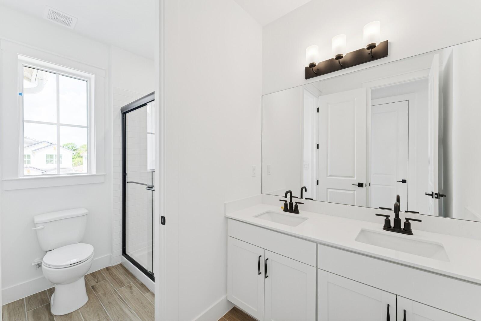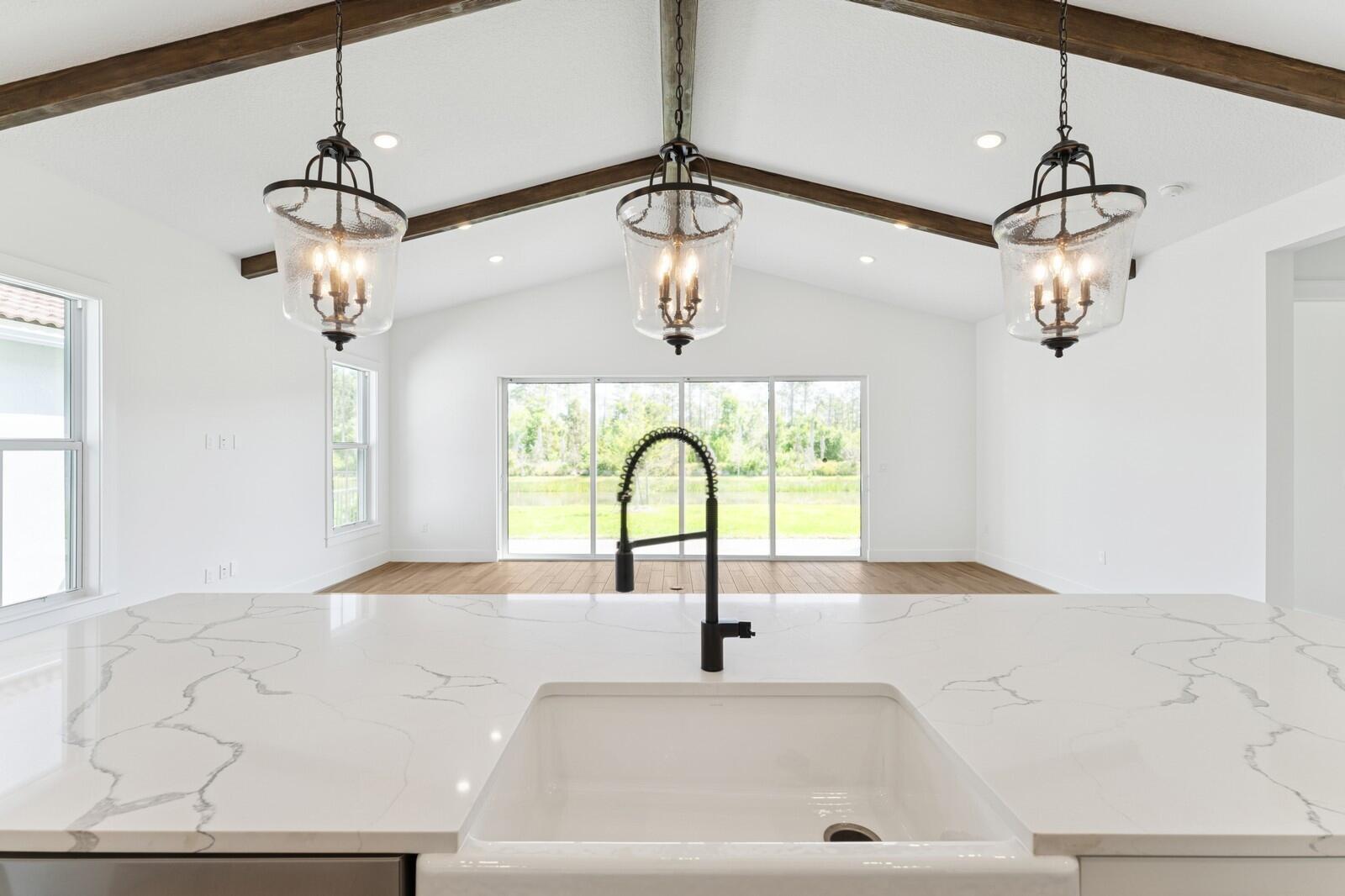 Enjoy picturesque lake views from this stunning farmhouse-style Santa Fe home, where comfort and character come together beautifully. The stunning kitchen showcases Brellin White cabinets and elegant Statuary Classique quartz countertops, opening to connected living spaces with a vaulted ceiling and stained ceiling beams for added warmth and charm. The peaceful primary suite offers the perfect retreat, complemented by a refreshing bath with a barn door and freestanding tub. A functional home office and formal dining room off the foyer add flexibility, while the inviting covered patio with a 16-foot multi-slide door creates seamless indoor-outdoor living. For added comfort and efficiency, the Home Technology Suite comes standard, delivering smart home features designed for today's