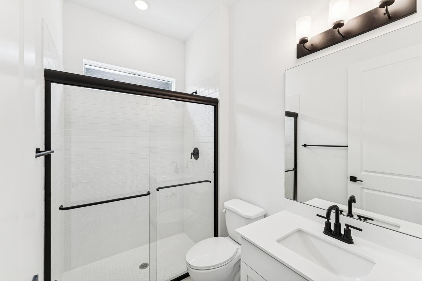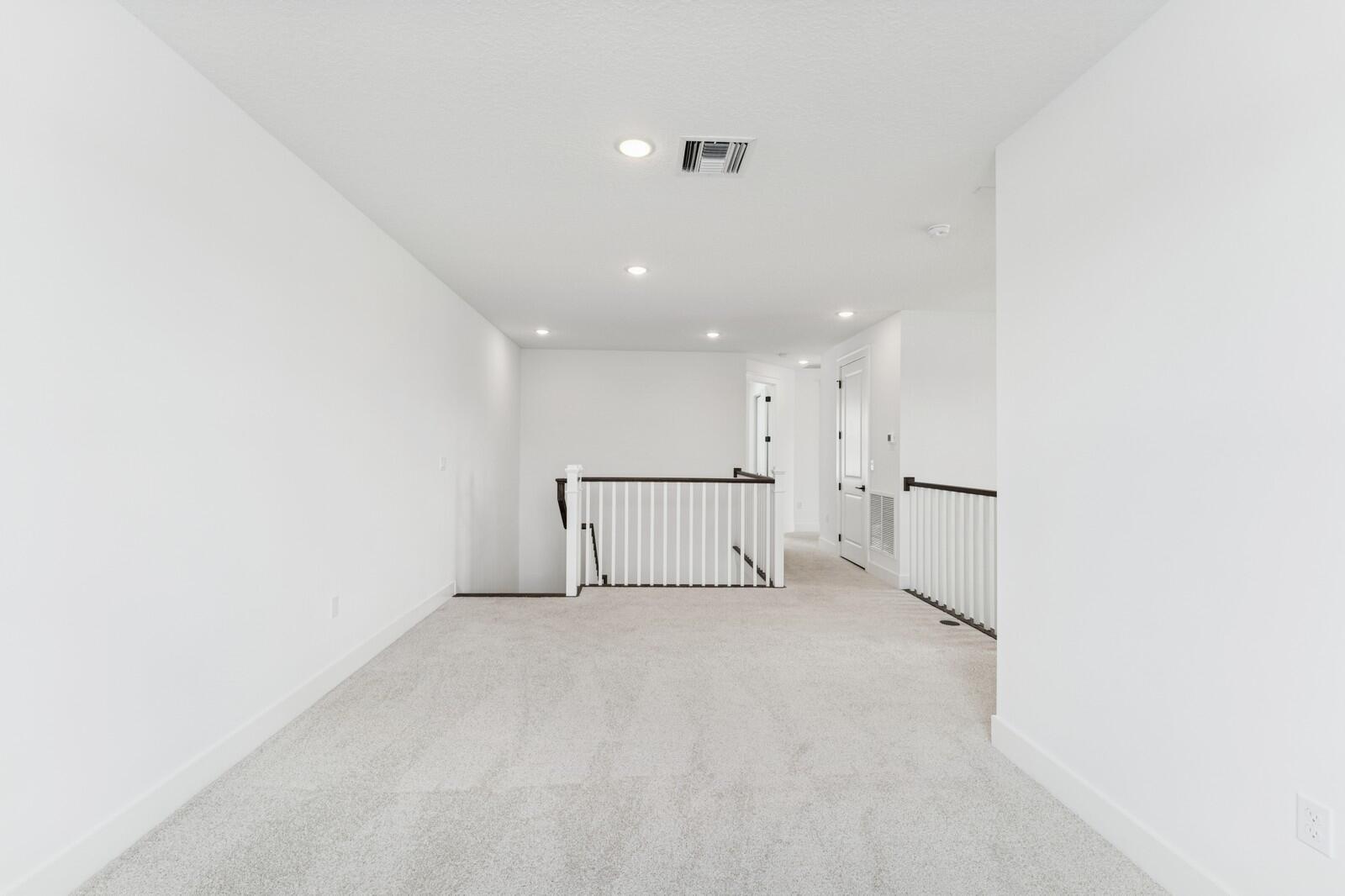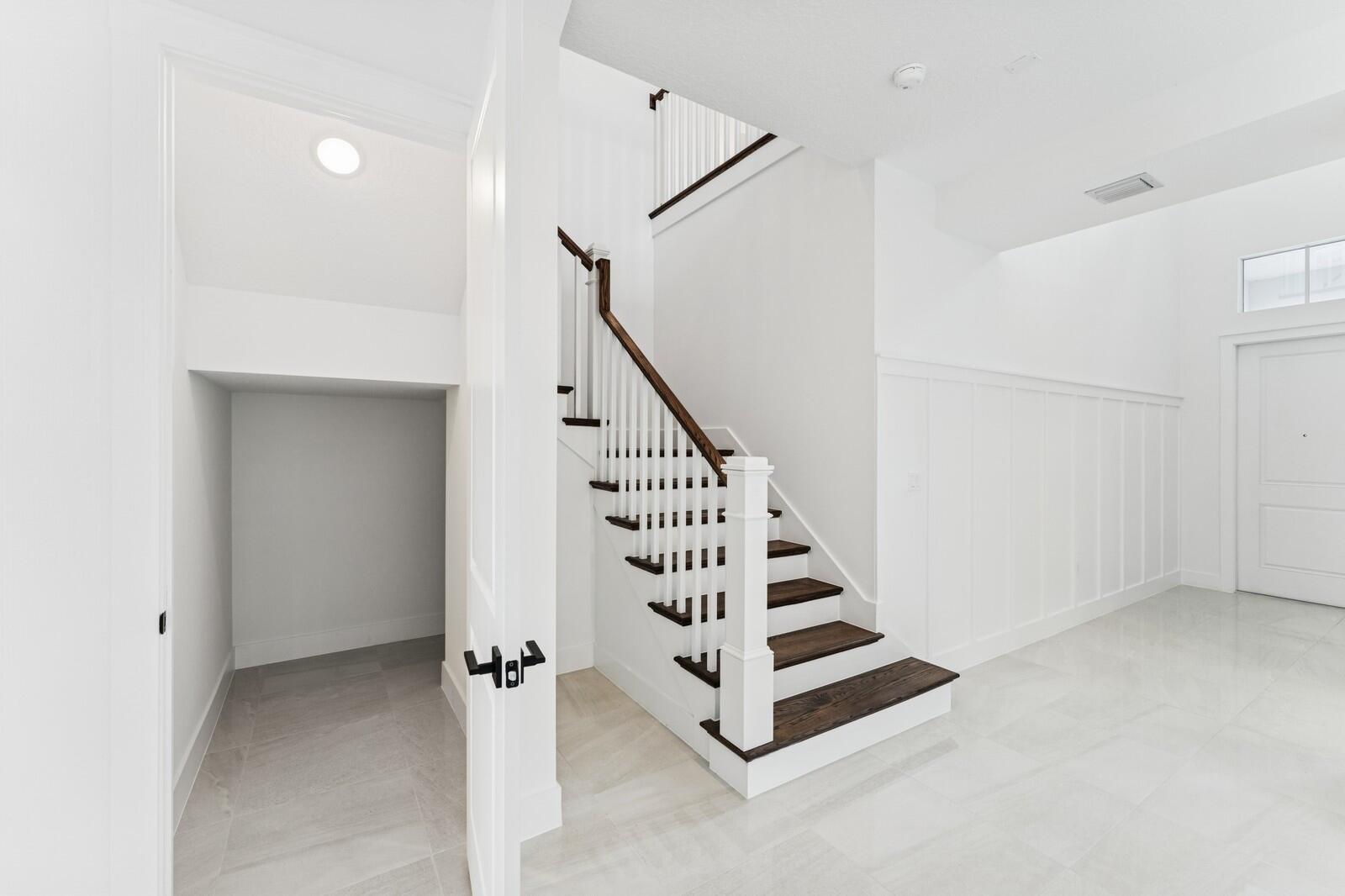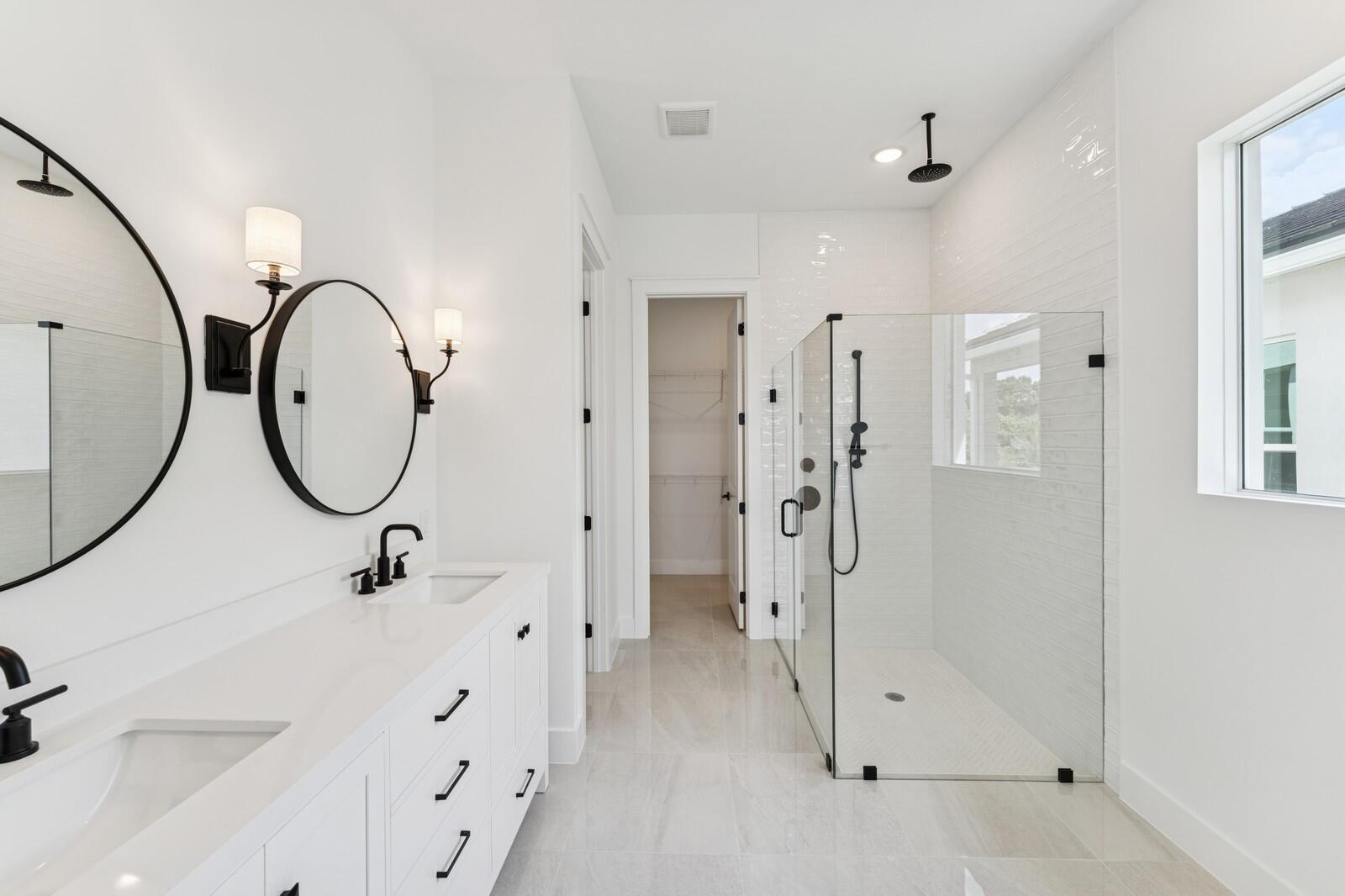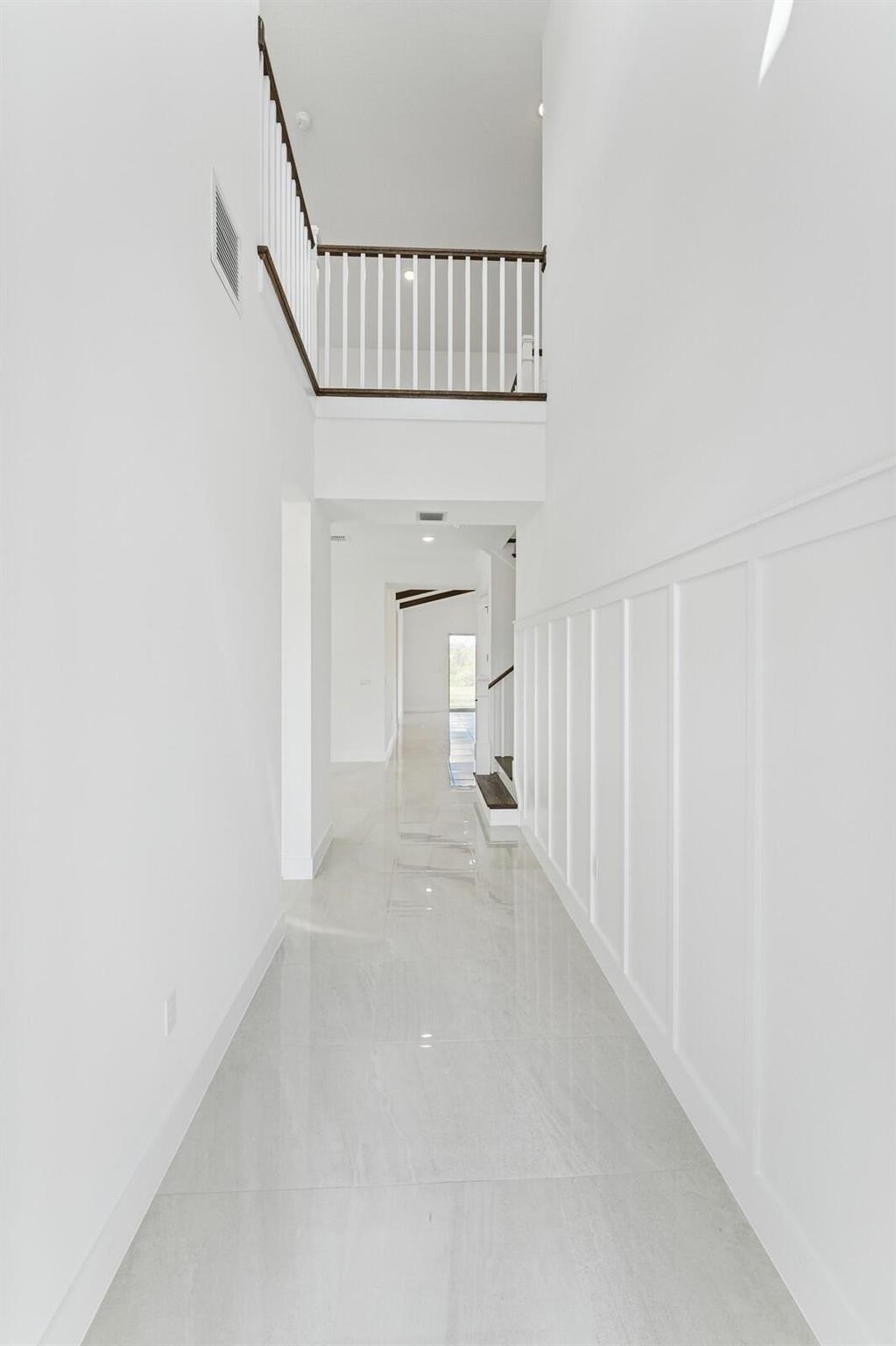 Lake views and farmhouse charm define this stunning Santa Fe home. The kitchen showcases Winstead Birch Quill cabinetry, a vast center island, and elegant Calacatta Abezzo quartz countertops. Open-concept living spaces feature a vaulted ceiling with stained beams, creating a warm and inviting atmosphere. A formal dining room offers the perfect setting for special celebrations, while the serene primary suite includes a stylish ceiling treatment and a polished bath with a barn door and freestanding tub. The organized home office is ideal for remote work, and the versatile covered patio with a 16' multi-slide door provides the perfect spot to unwind and take in the tranquil scenery.