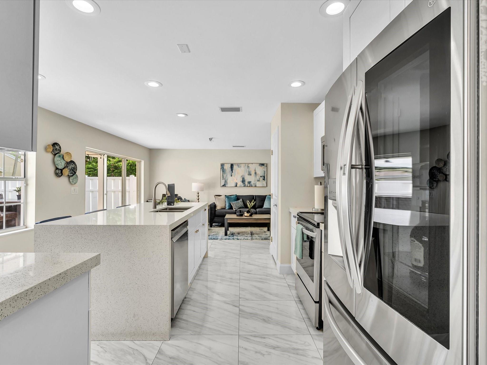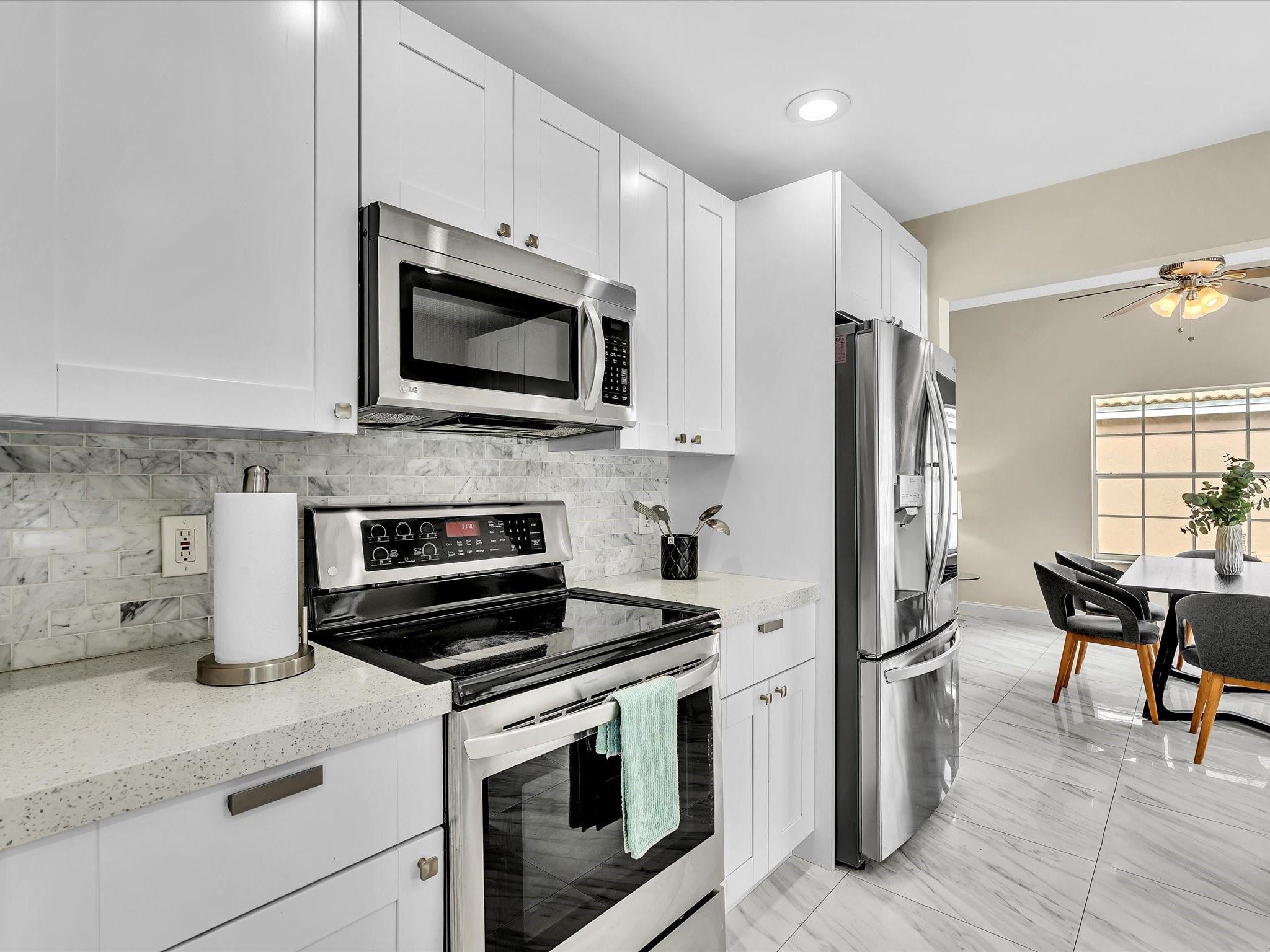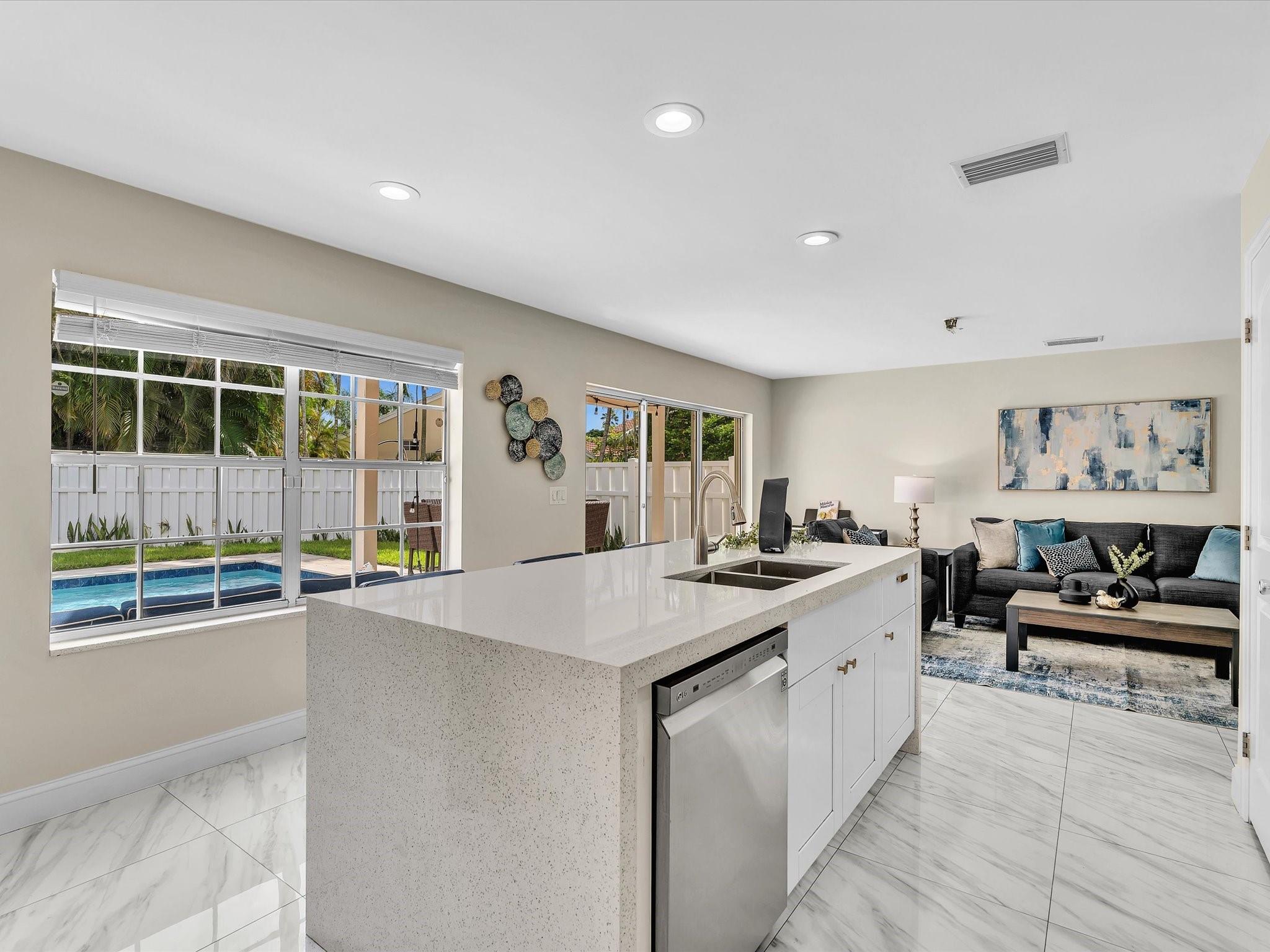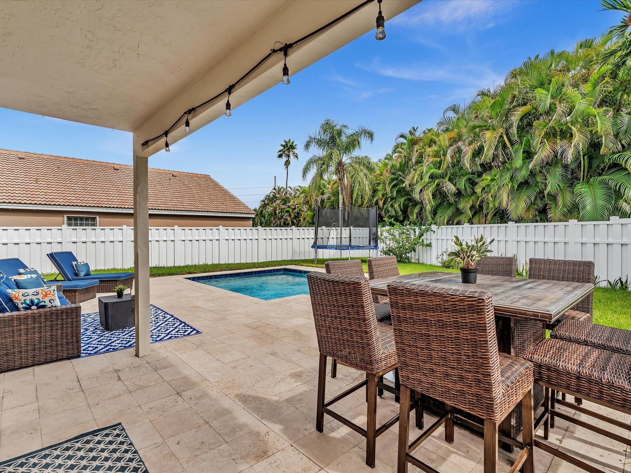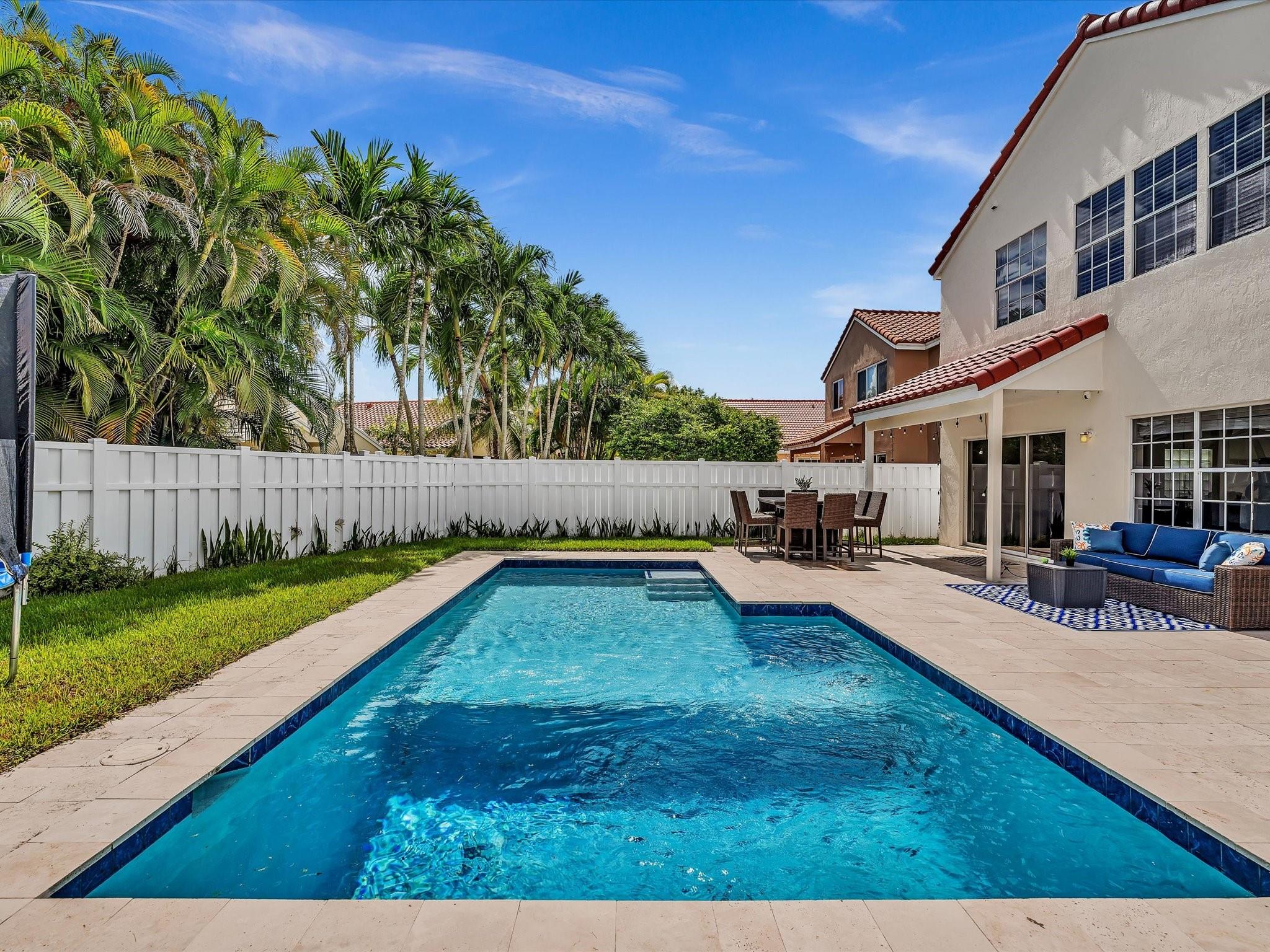 New 2025 roof! Nestled on a quiet cul-de-sac street this pool home offers one of Weston’s largest 3 bedroom floorplans w/ generous front & backyards - perfect for entertaining. Freshly painted interior/exterior, filled w/ natural light & a breathtaking two-story vaulted ceiling. Beautifully remodeled kitchen (2020) features wood cabinetry, large quartz island, ss appliances, and adjacent family room—ideal for gatherings. Enjoy ultimate privacy in the backyard oasis, complete w/ sleek modern pool (2020), PVC fencing, and ample space to relax or entertain. Additional upgrades include an 2019 A/C unit and a 2025 water heater. Laundry room converted to an office. Located minutes from parks, shopping, top-rated schools, pickleball and I-75, this home blends comfort, style, & location all in one