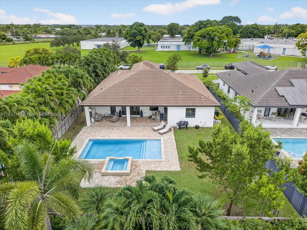 Sophisticated 2022 Contemporary Residence showcasing exquisite design and superior craftsmanship throughout. This modern home features custom finishes, impact-rated windows and doors, and an open-concept living area ideal for effortless entertaining. Step outside to your private oasis featuring a heated saltwater pool with integrated whirlpool spa and beautifully finished outdoor living space. Every detail has been thoughtfully curated to deliver a seamless blend of luxury, comfort, and modern elegance.