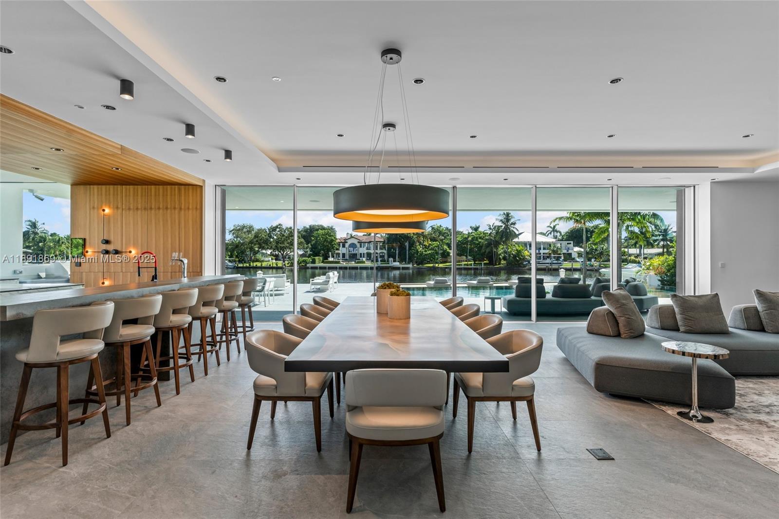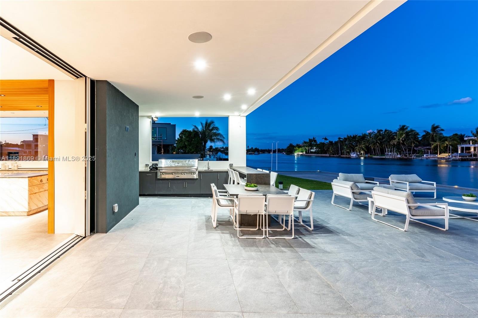 Fort Lauderdale’s Crown Jewel - an architectural waterfront showpiece fusing cutting-edge design, technology, & luxury on 0.58 acres with 205 ft of water frontage. This tri-level stunner boasts motorized floor-to-ceiling glass doors, Loxone smart automation, & an elevator. Main level impresses with an office & a grand family room opening to a sprawling covered terrace, plus a chef’s dream kitchen w/ hibachi grill, pizza oven, & full secondary kitchen. Upstairs: gym, 3 lavish junior suites, & wraparound balcony. The entire 3rd floor is the private primary suite w/ breathtaking views. Outdoors ftrs an infinity pool, BBQ, 50,000-lb lift, 3,000 SF dock, 78 Solar Panels, Drive through garage w/ high ceilings & BUILDABLE Lot w/ limitless options. A new benchmark for waterfront living in FTL!