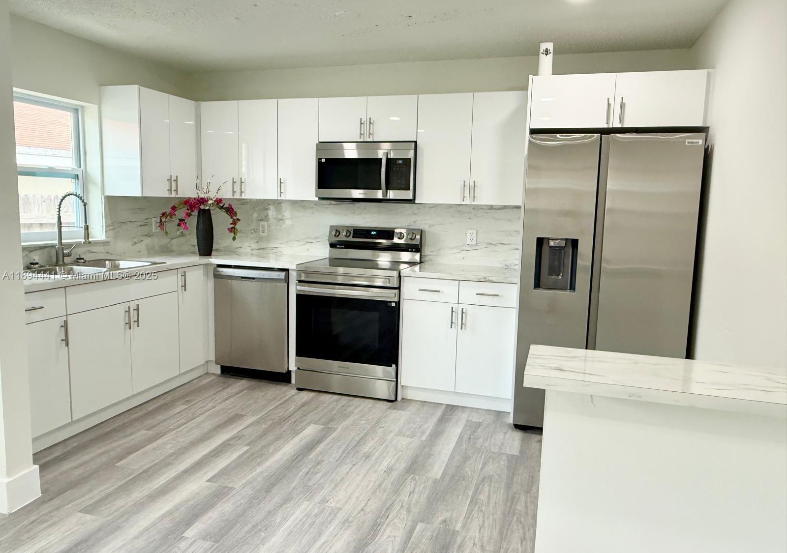 BRAND NEW ROOF 2025, CENTRAL AC 2025, Beautiful fully renovated 4/3 Single family (Main House 3/2 + Guest House 1/1 that could be your PERFECT KEY to have a tenant and pay EASILY your mortgage). IMPACT Windows. This single family home is an AMAZING UNDER AIR 1,614 SQFT on a Fenced Lot with entrance from the backyard perfect for boats, cars, etc. IMPACT WINDOWS. Modern Water Proof Laminated FLOORS (no carpet), + Amazing Brand New Kitchen with Stainless Steel Appliances and Washer and Dryer and Digital Water Heater in a fantastic convenient laundry room. FRESHLY PAINTED OUT AND INSIDE. CLEAR TITLE, NO LIENS, NO OPEN PERMITS, NO VIOLATIONS. VACANT ON LOCKBOX! Conveniently located, this home combines suburban tranquility with easy access to entertainment and dining. Showing Assist.