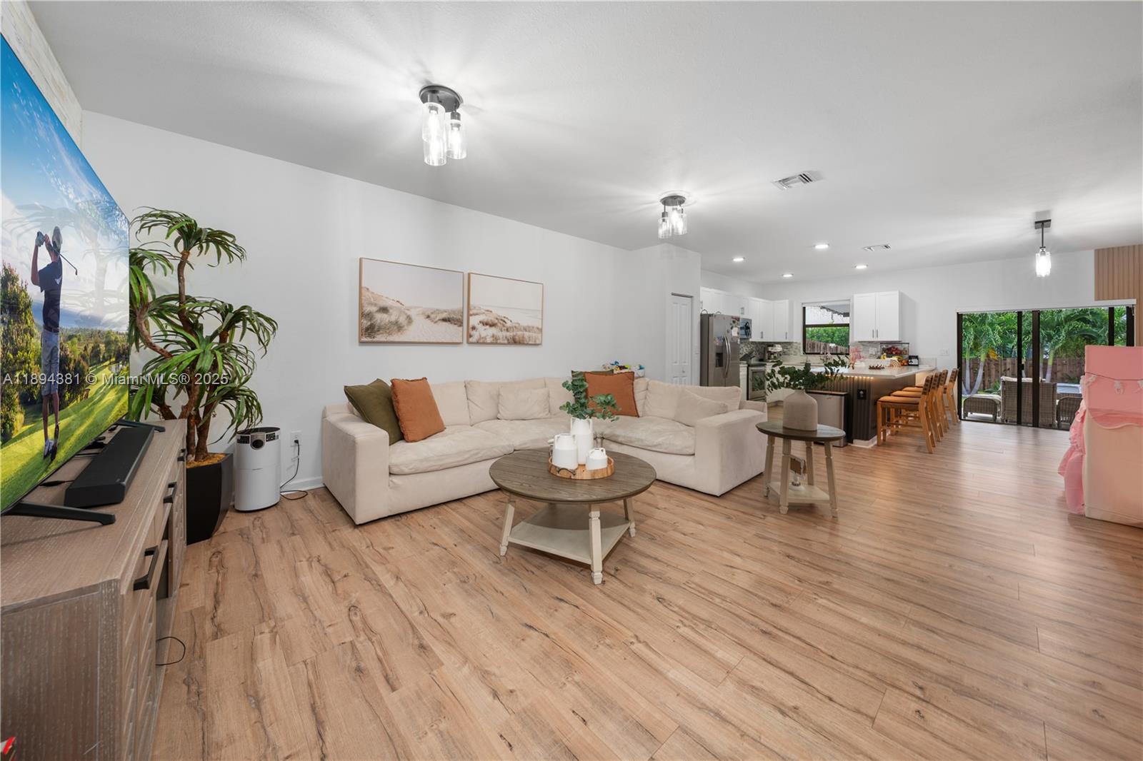 Welcome to this beautiful & well-maintained 3-bedroom, 3-bathroom home that truly has it all! From the moment you arrive, you’ll notice the care and upgrades throughout. The home features accordion shutters for peace of mind, gutters & custom closets in every bedroom. Enjoy clean, refreshing water with the alkaline water filtration system that services the entire house. Both floors have stylish laminate flooring that gives the home a warm and modern feel. The spacious master bathroom has been fully remodeled. Step outside to a stunning backyard that’s perfect for relaxing or entertaining-featuring a beautiful pergola, artificial grass for easy maintenance, & a custom-built grill area ready for weekend barbecues. The private garage also includes a built-in closet for extra storage space.