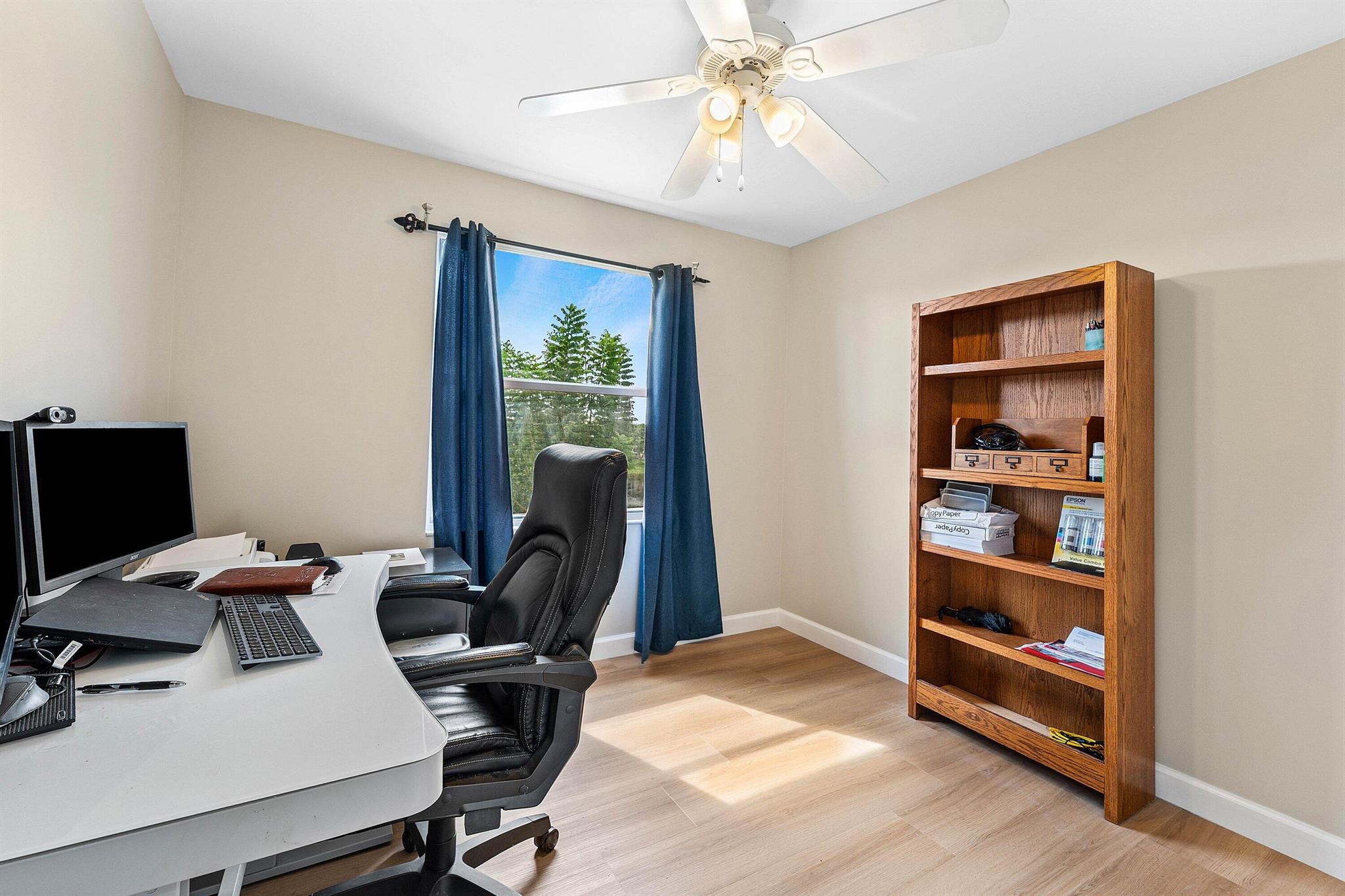 New Metal Roof 2025! Welcome to your beautifully updated home in one of the most desirable family friendly gated communities. Just a short walk to Park Vista HS & West Boynton Park! This immaculate residence features 2 bedrooms. a loft & 2.5 bathrooms. Situated on an oversized triangular lakefront lot. The home offers a large screened-in covered patio perfect for entertaining or relaxing. It has an open-concept floor plan w/ new light oak LVT flooring, a fully renovated kitchen with quartz countertops. The primary suite boasts a tray ceiling w/ smooth skim-coated drywall & walk-in closet. Master & guest bathrooms are updated & have quartz sinks & LED backlit mirrors. A must see! Move in ready!