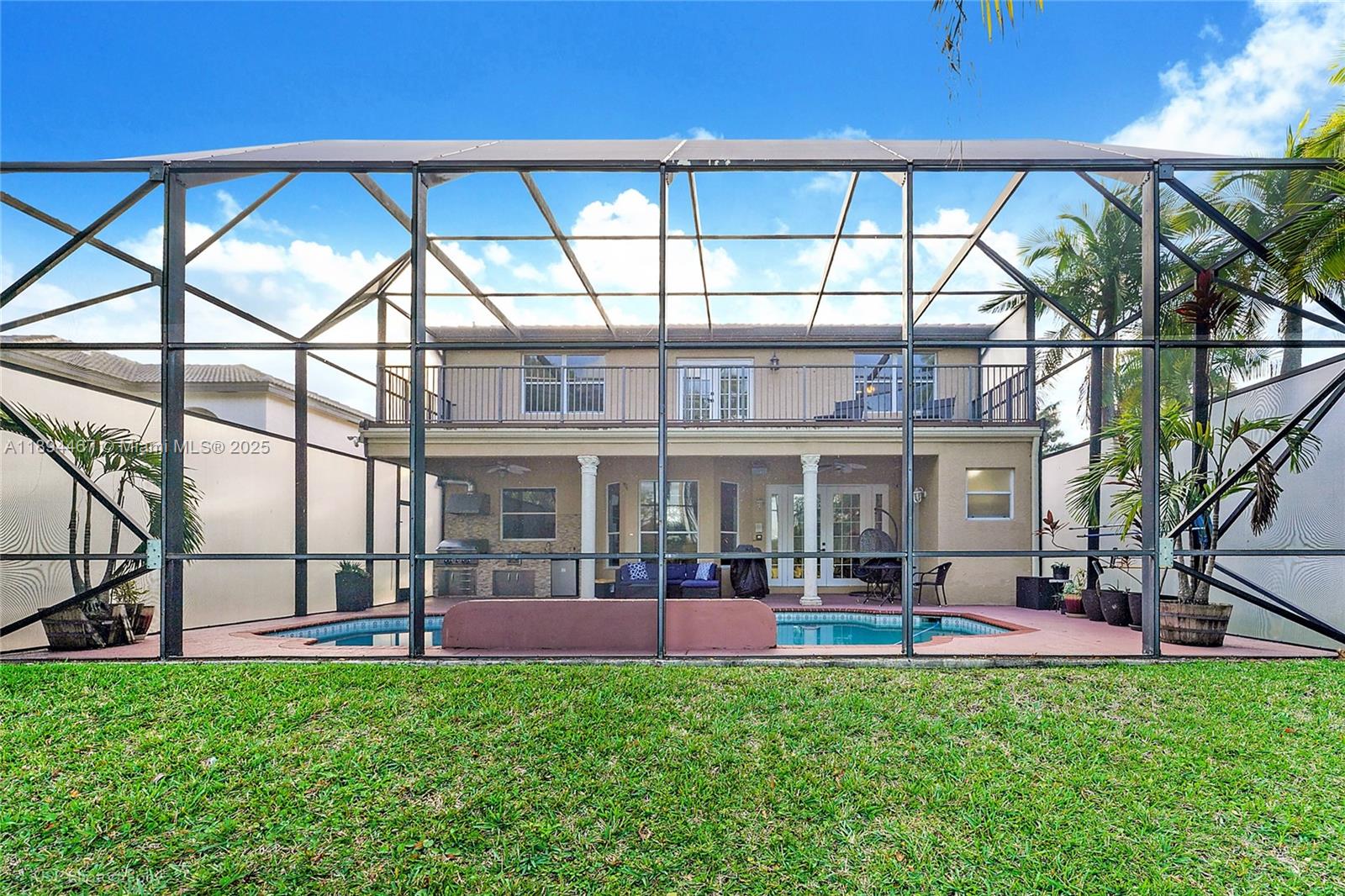 Spectacular lakefront/Pool home with New 2025 Impact windows /doors and roof. Welcome to luxury this beautiful abode with gorgeous interior offers hard wood floors and tile throughout living areas. The spacious kitchen features custom cabinets, granite counter tops,SS appliances /built-in wall oven .This kitchen is a chef's dream! Primary suite includes sitting area, his/hers walk-in closet, dual sinks, spa tub & private balcony over looking the pool.This oasis features a salt water pool along with an outdoor kitchen w/built in grill. Great for entertaining. Property is located in prestigious gated community of Sliver Lakes. A-rated schools close to shopping and highways.